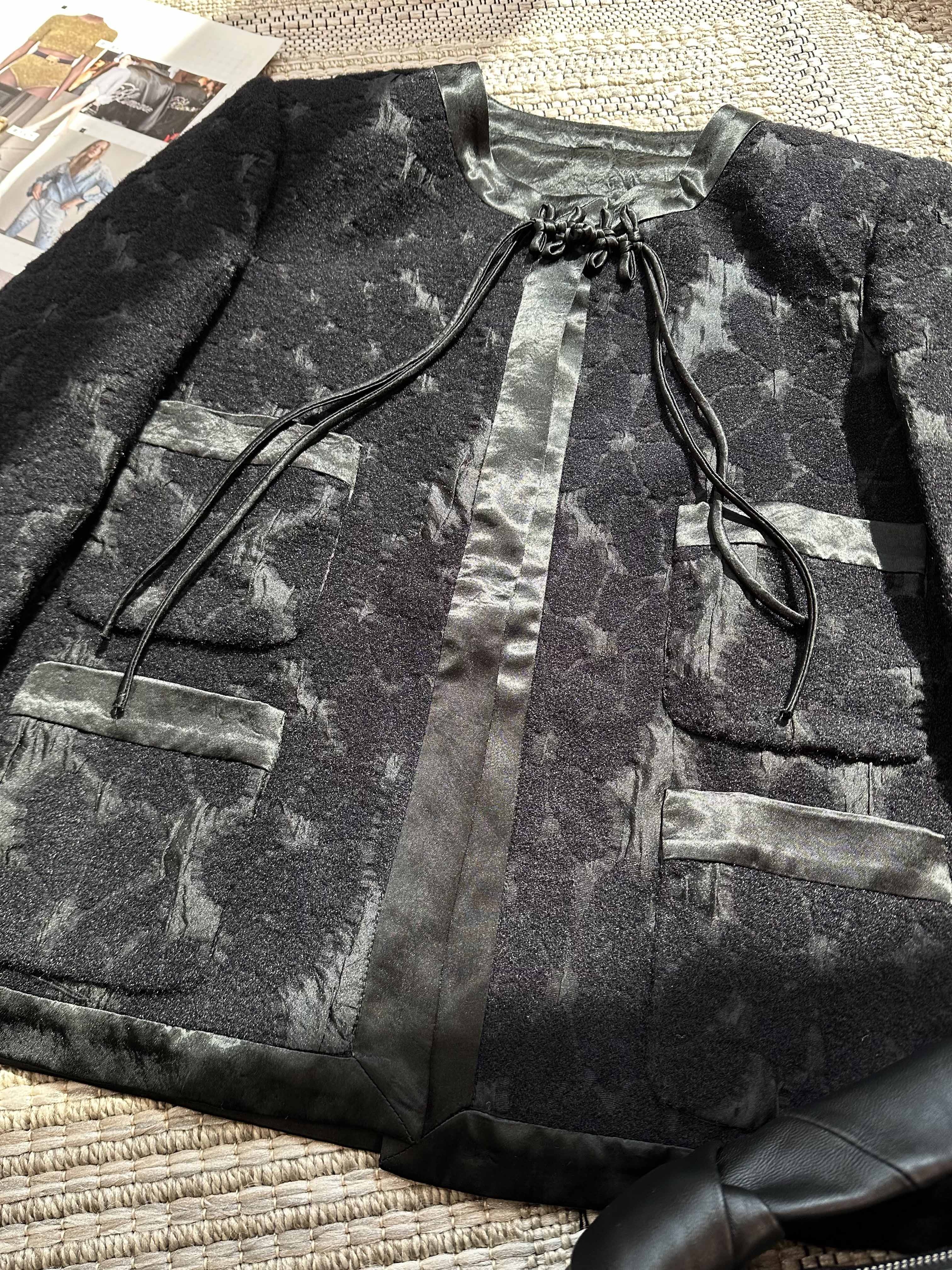 顺丰包邮洛诗琳35257国风羊毛提花拼接口袋盘花一粒扣外套220338