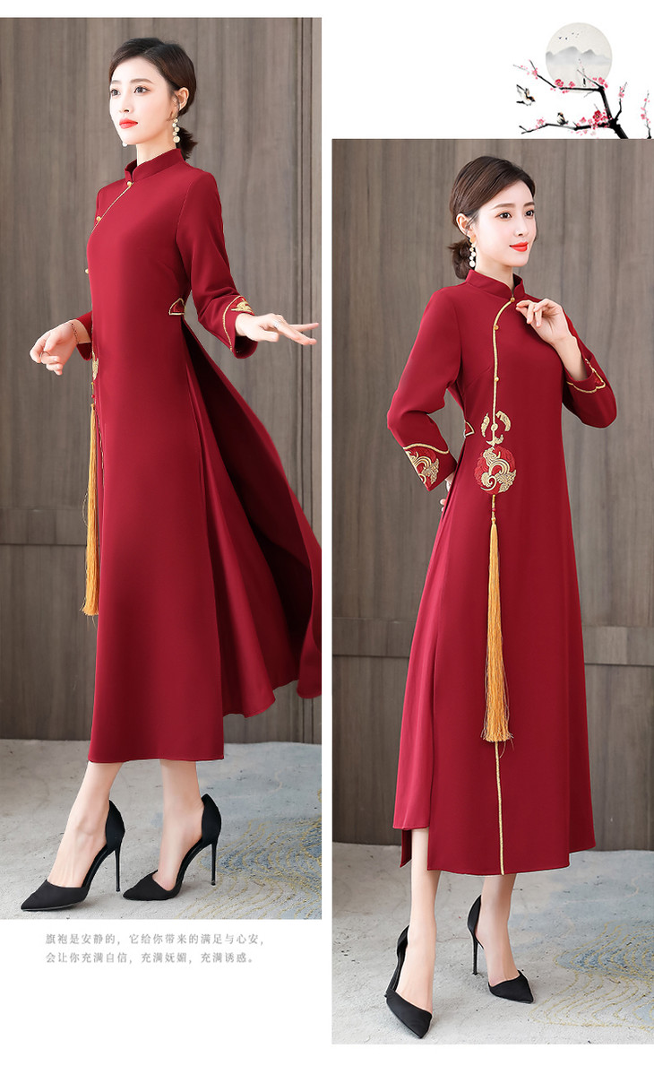 XY-中国风旗袍春秋新款复古收腰显瘦女装改良唐装汉服禅意连衣裙时尚