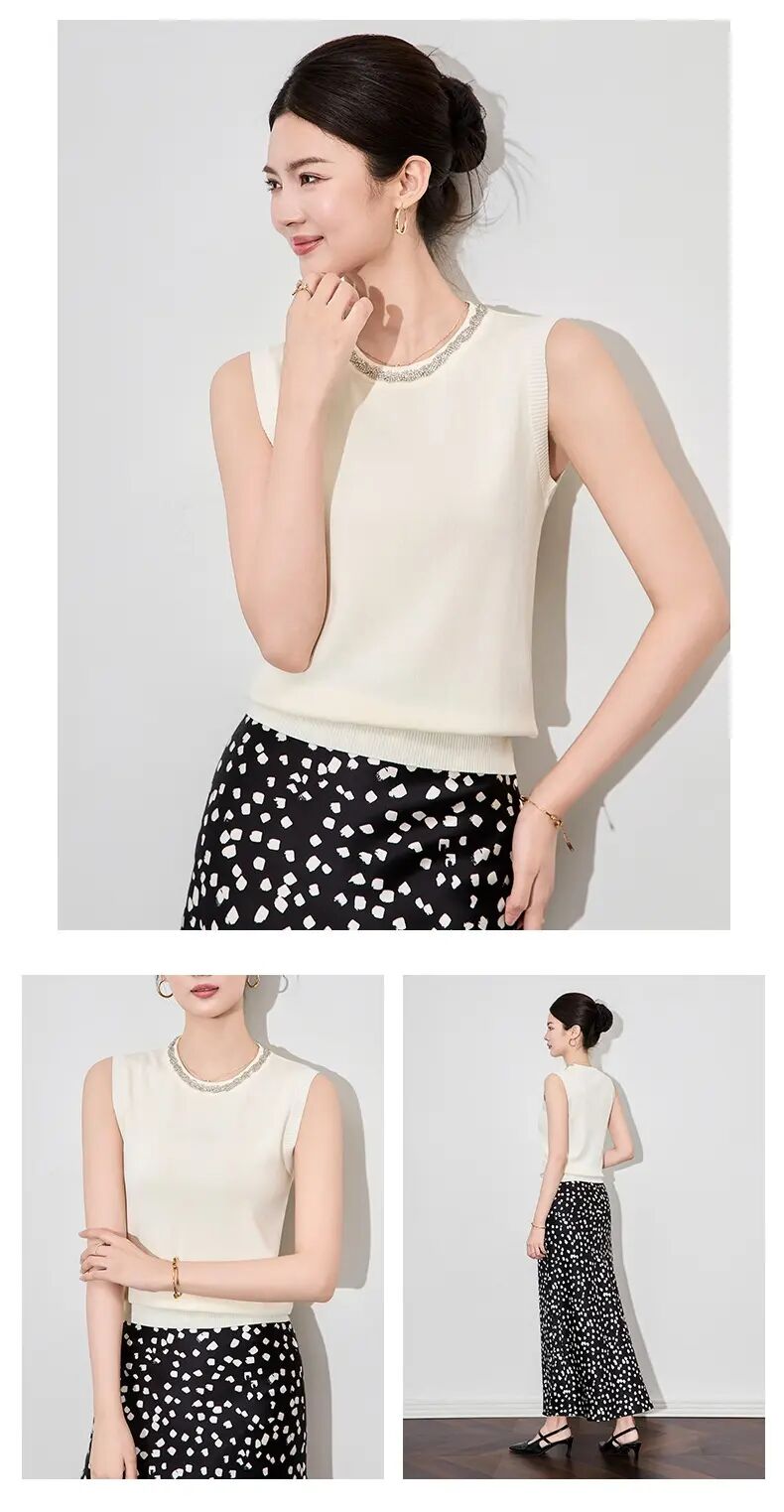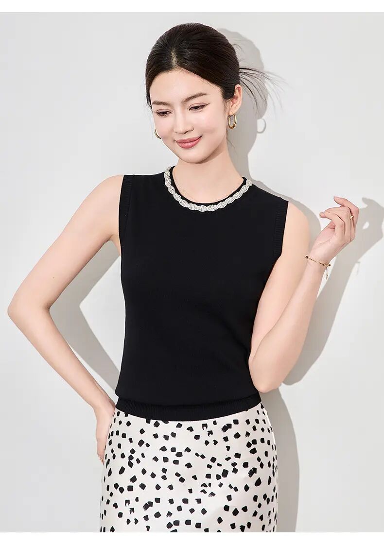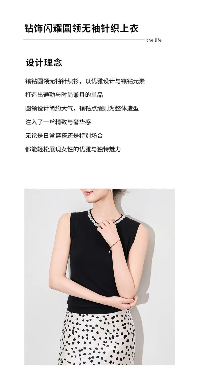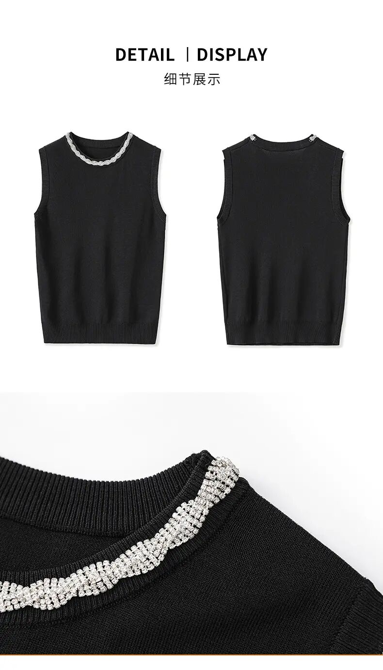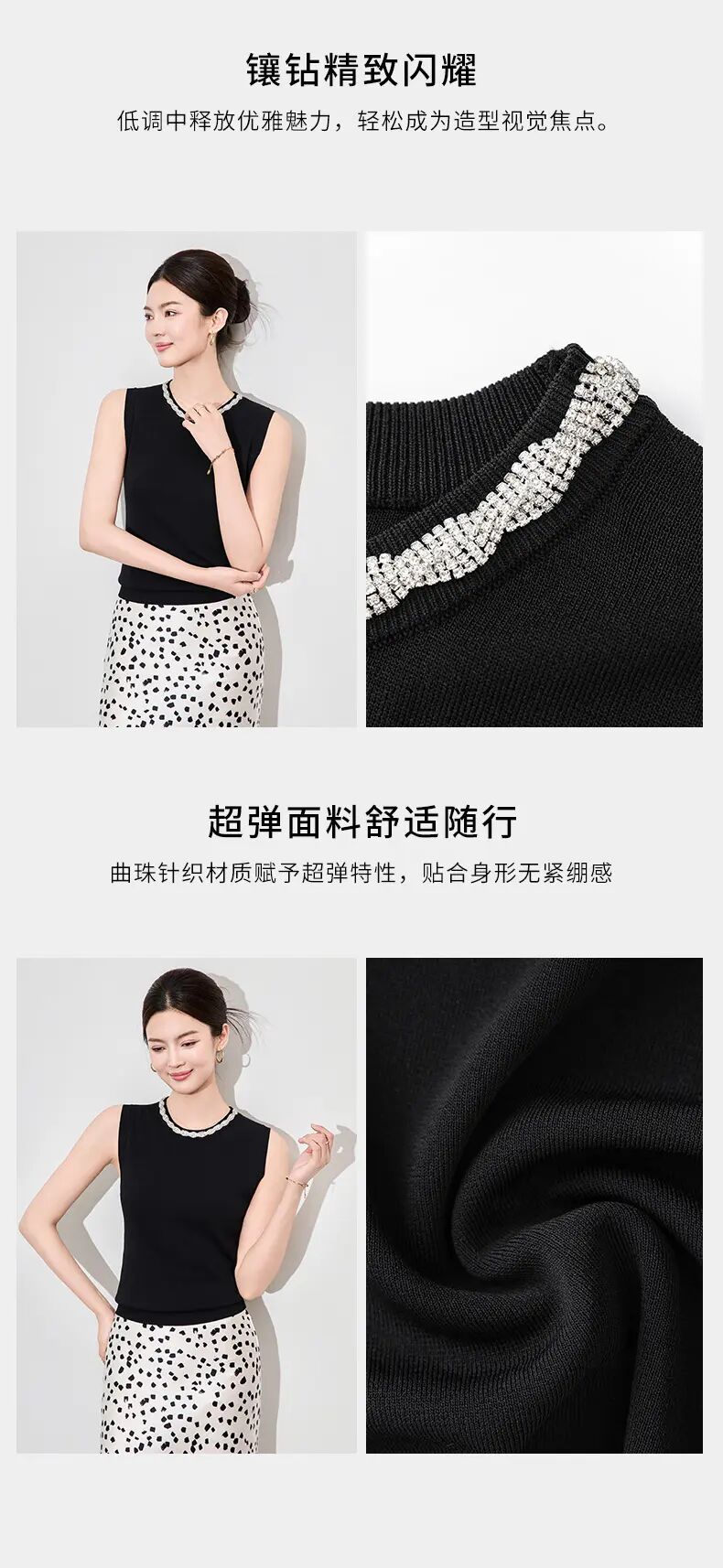 【高货wl】全新升级【铂金会员174/天猫229/差价55】(05259) 洛诗琳时尚优雅镶钻圆领无袖曲珠针织衫设计感背心上衣