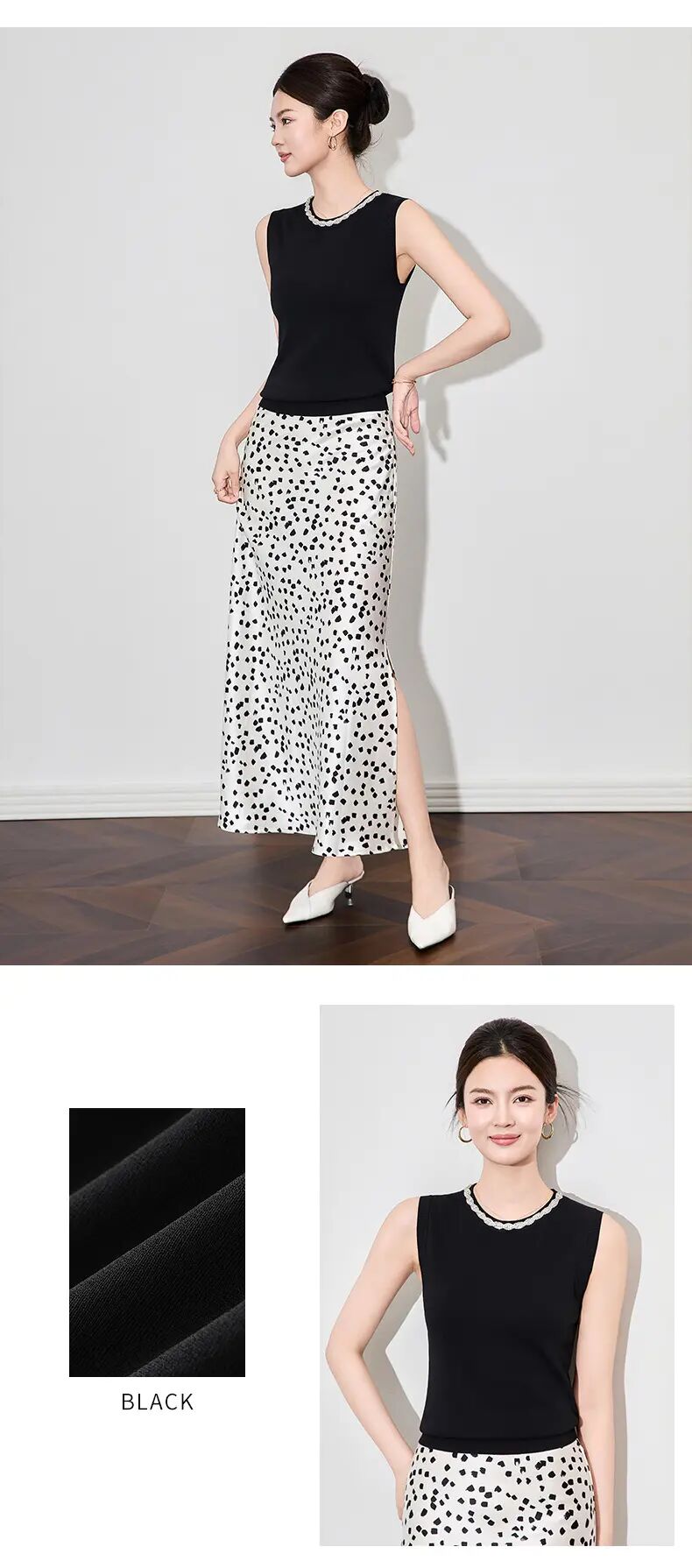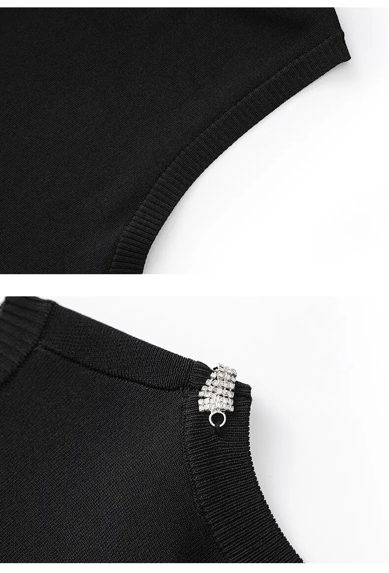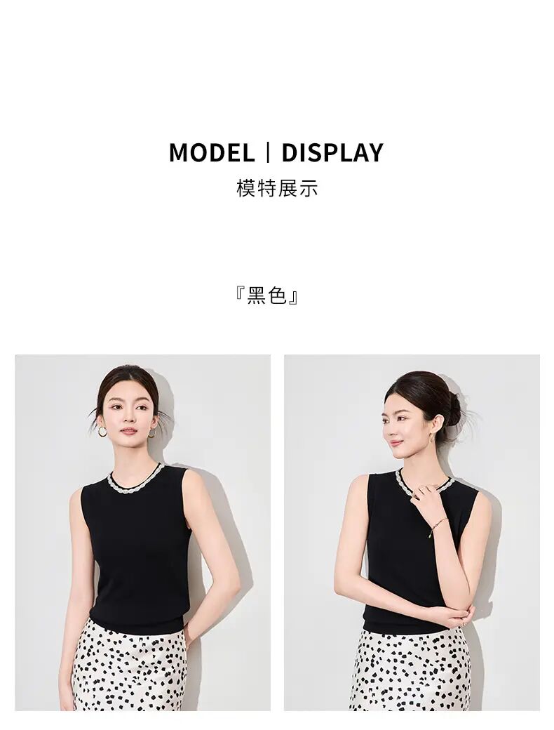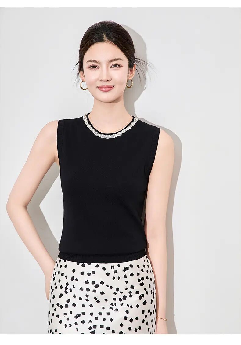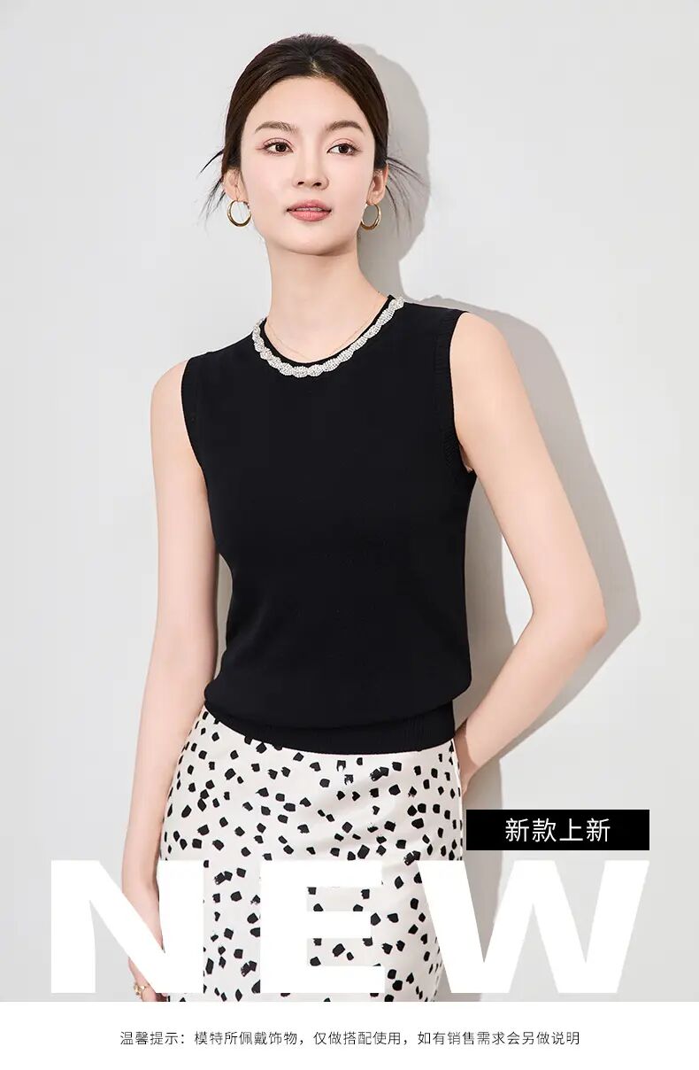 【高货wl】全新升级【铂金会员174/天猫229/差价55】(05259) 洛诗琳时尚优雅镶钻圆领无袖曲珠针织衫设计感背心上衣