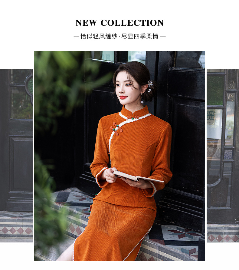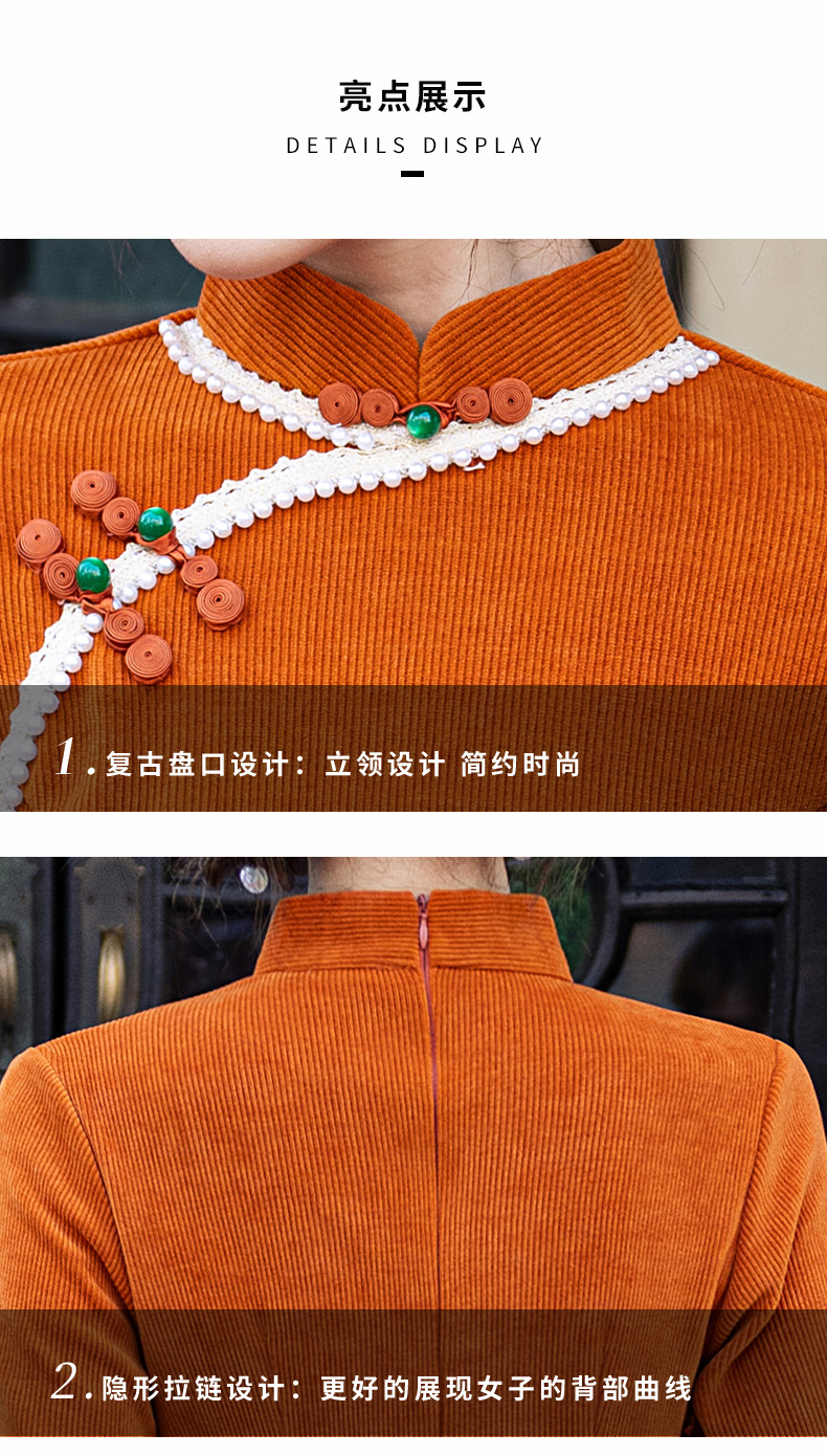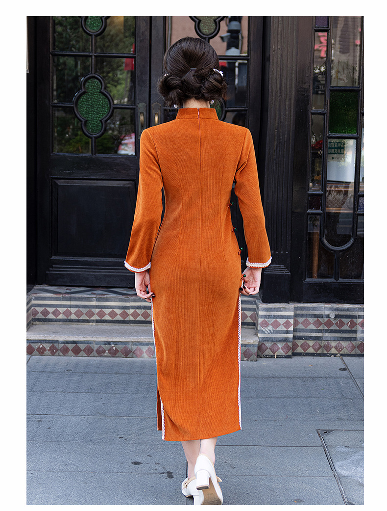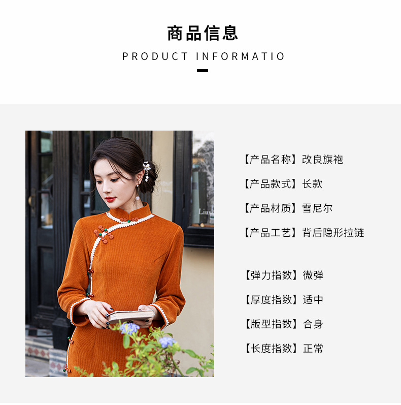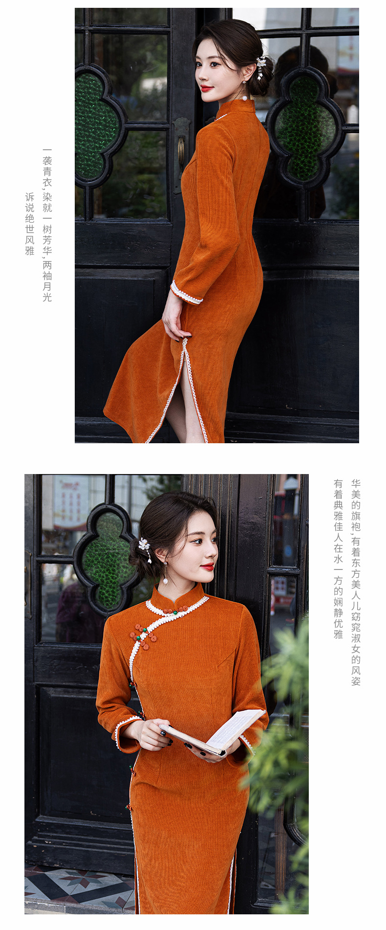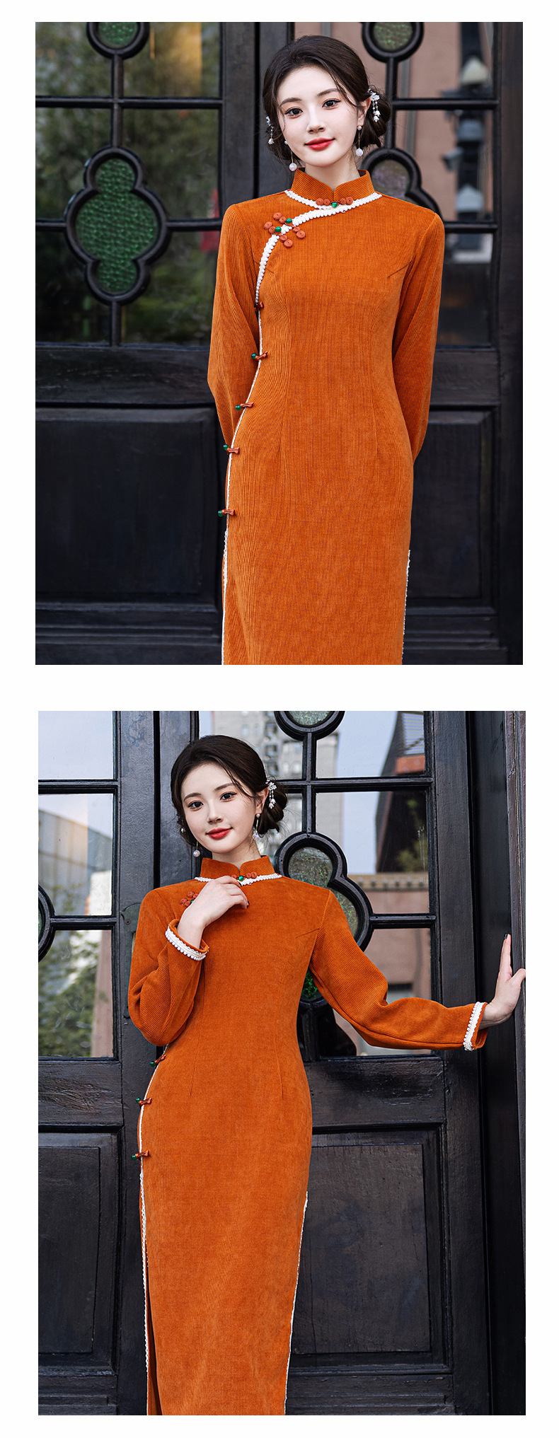 YG-2341长袖雪尼尔旗袍2024秋冬新款新中式复古国风少女拜年服修身长款
