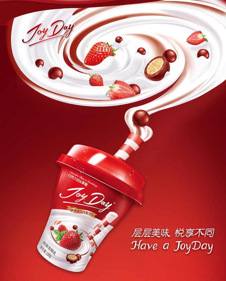 畅轻草莓、黄桃果粒酸奶100g*8杯