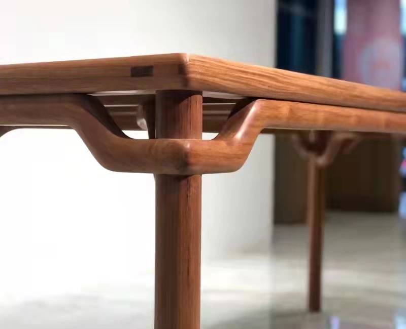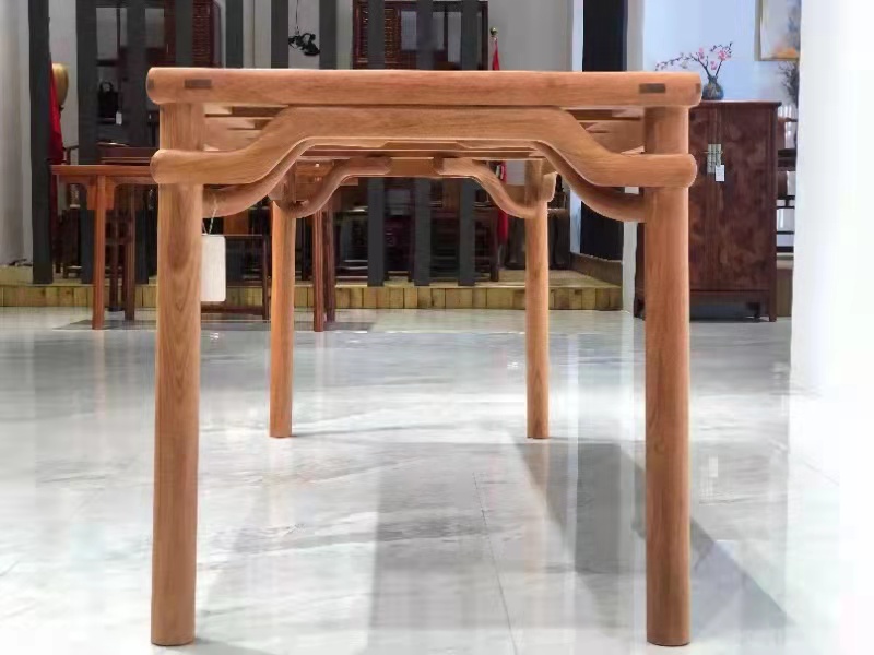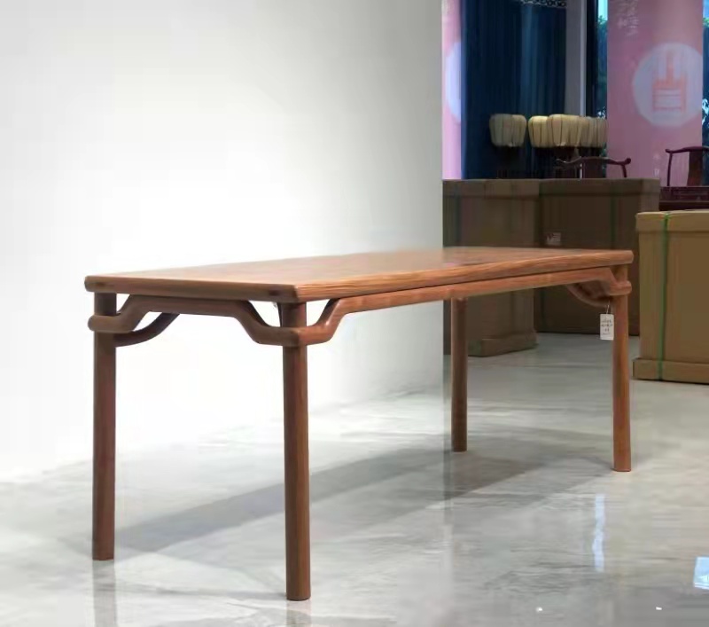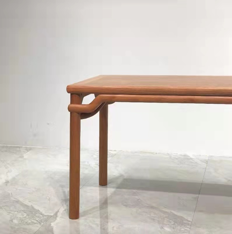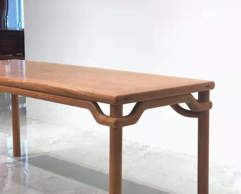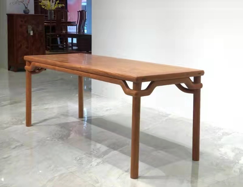 王世襄“明式家具十六品”第二品“淳朴”的代表器,原款为王老旧藏的紫檀制,现藏于上海博物馆。长190,宽74,高78,缅花复刻不惜珍材做独板面。