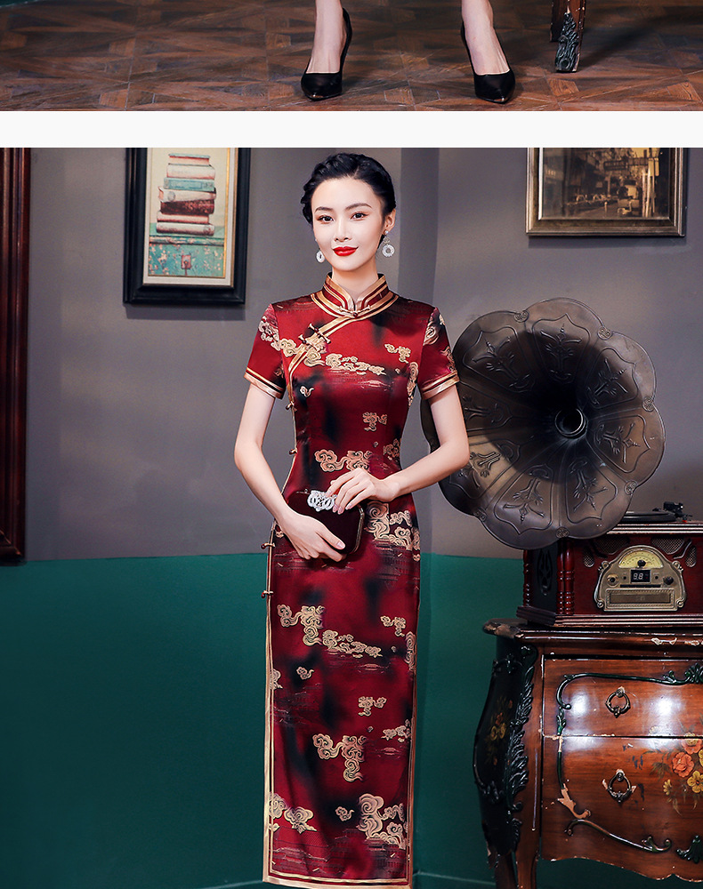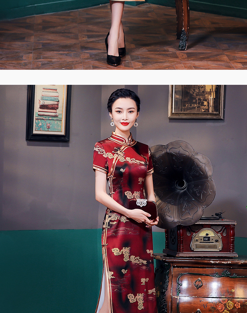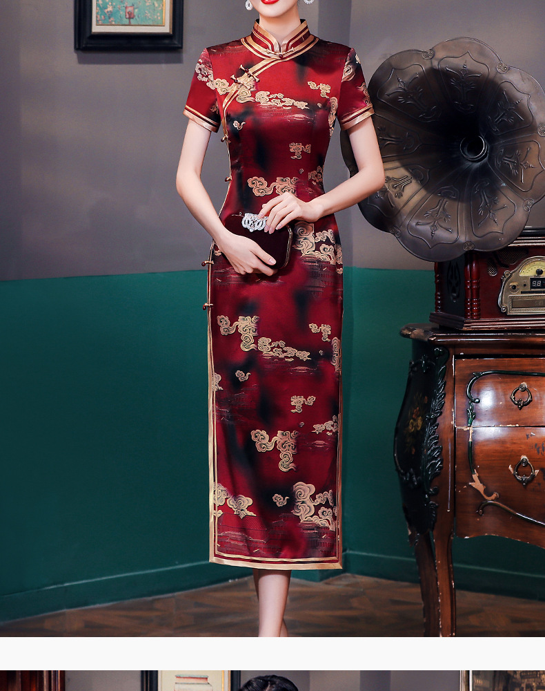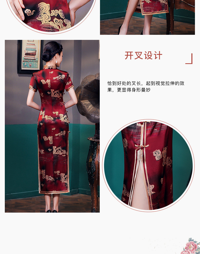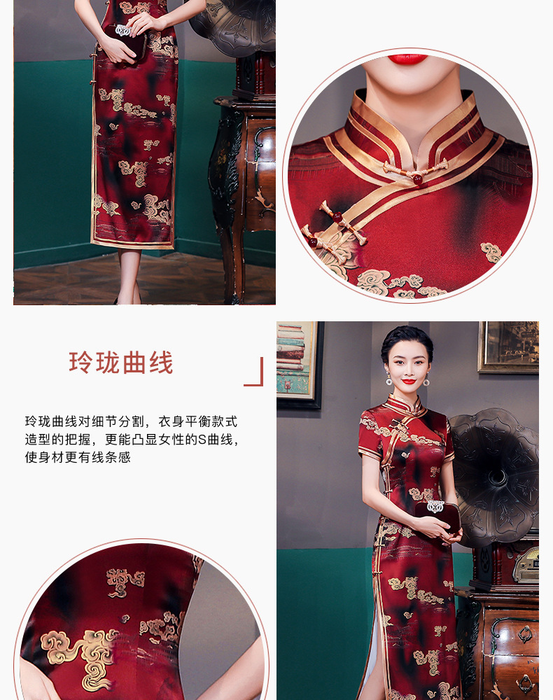 HQ-JYJ-072红色旗袍新中式长款桑蚕丝年轻款复古中国风旗袍连衣裙