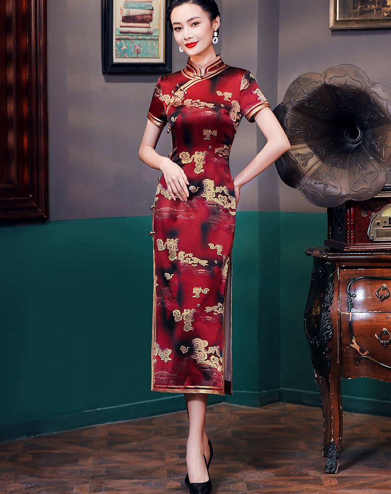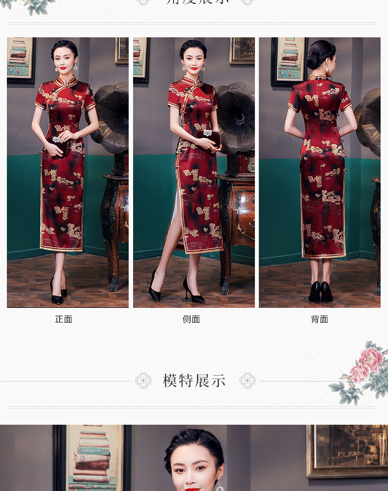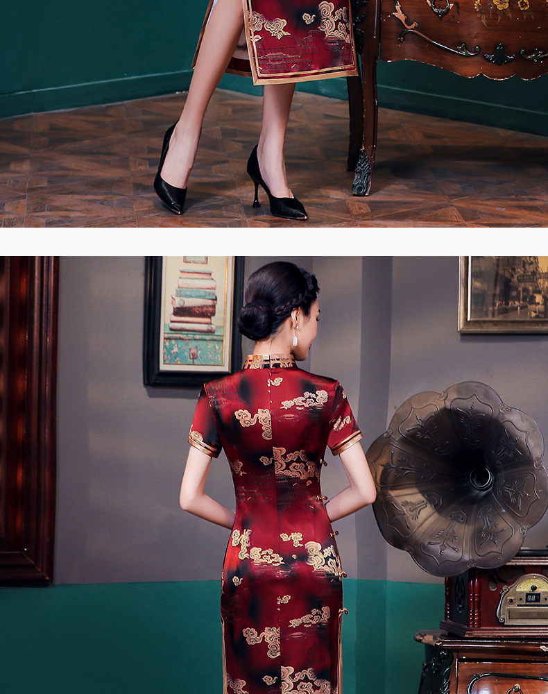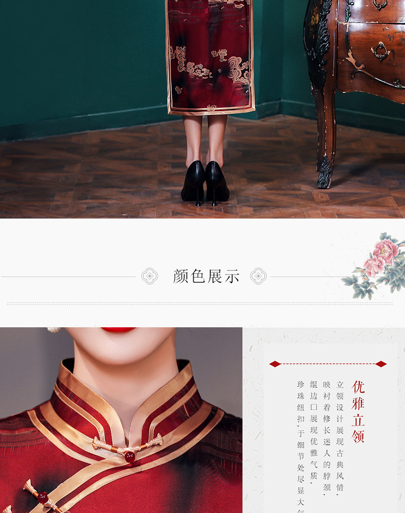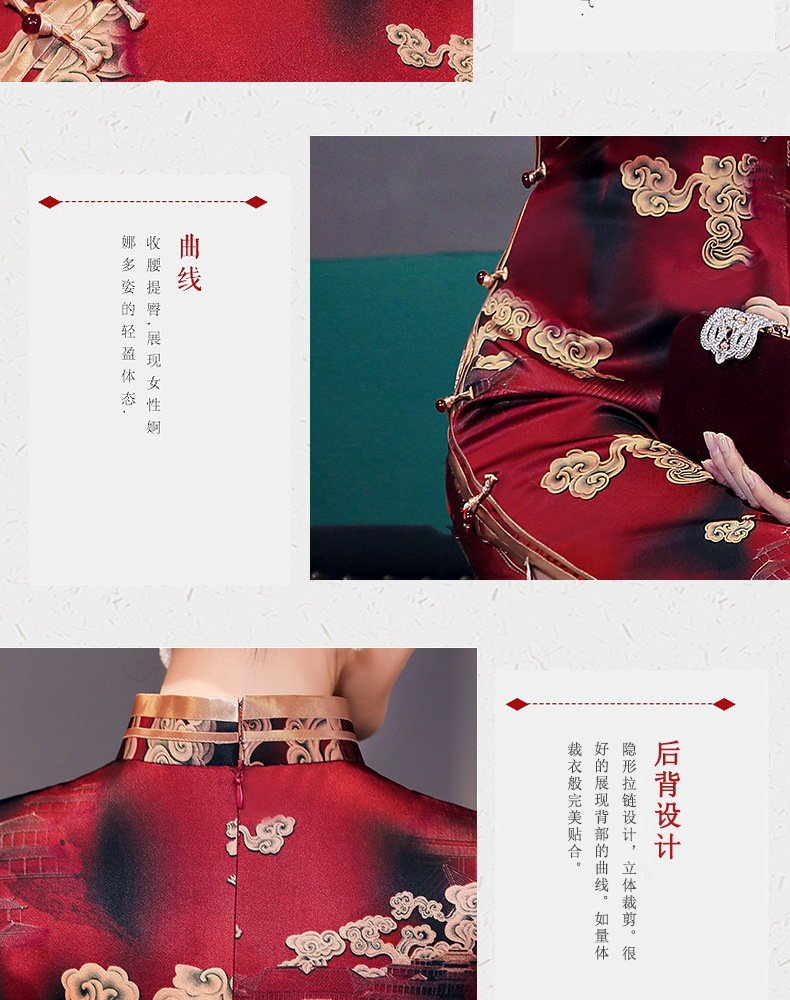 HQ-JYJ-072红色旗袍新中式长款桑蚕丝年轻款复古中国风旗袍连衣裙