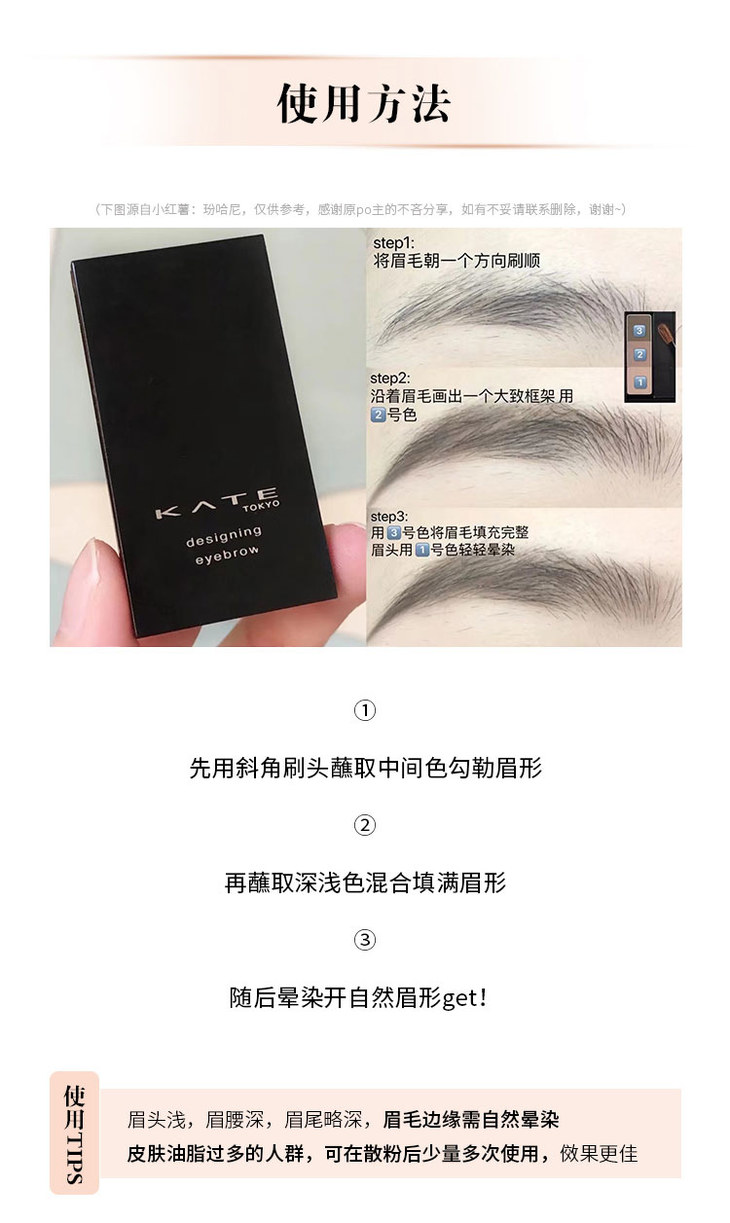 自然挂 kate眉粉日本嘉娜宝3d三色立体眉粉持久