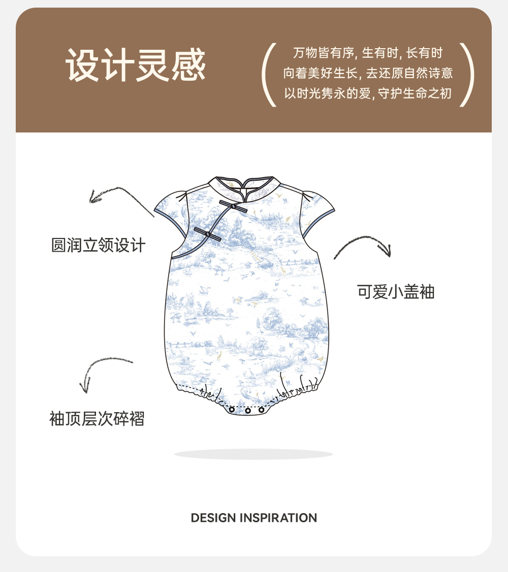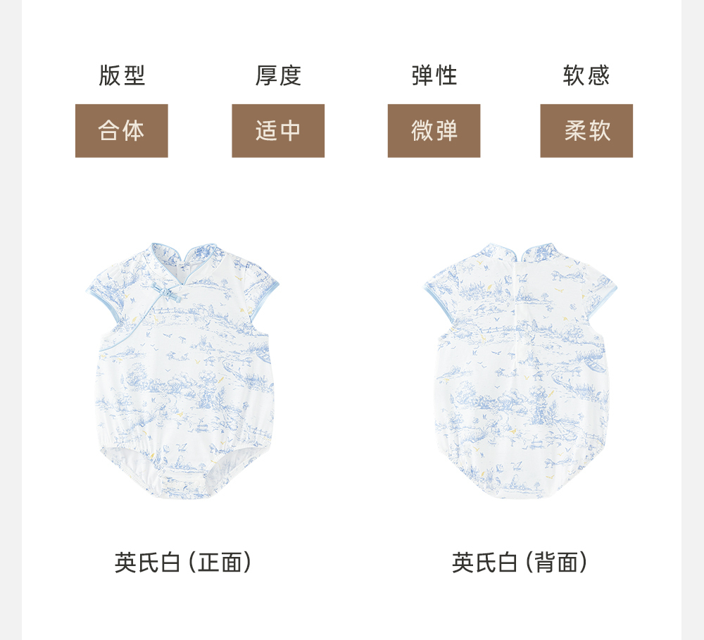 【商场同款】英氏婴幼儿衣服纯棉夏季女宝连体衣新款古风衣服
