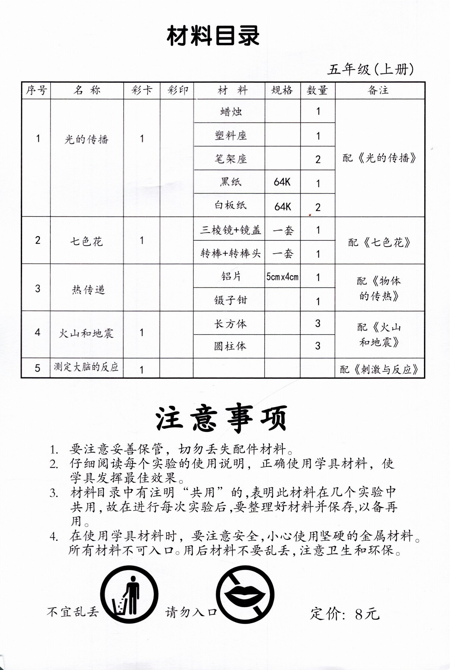2025年秋 小学科学实验册 五年级上册 含配套实验材料 含电子答案 5上 苏教版 小学科学教辅 江苏凤凰教育出版社