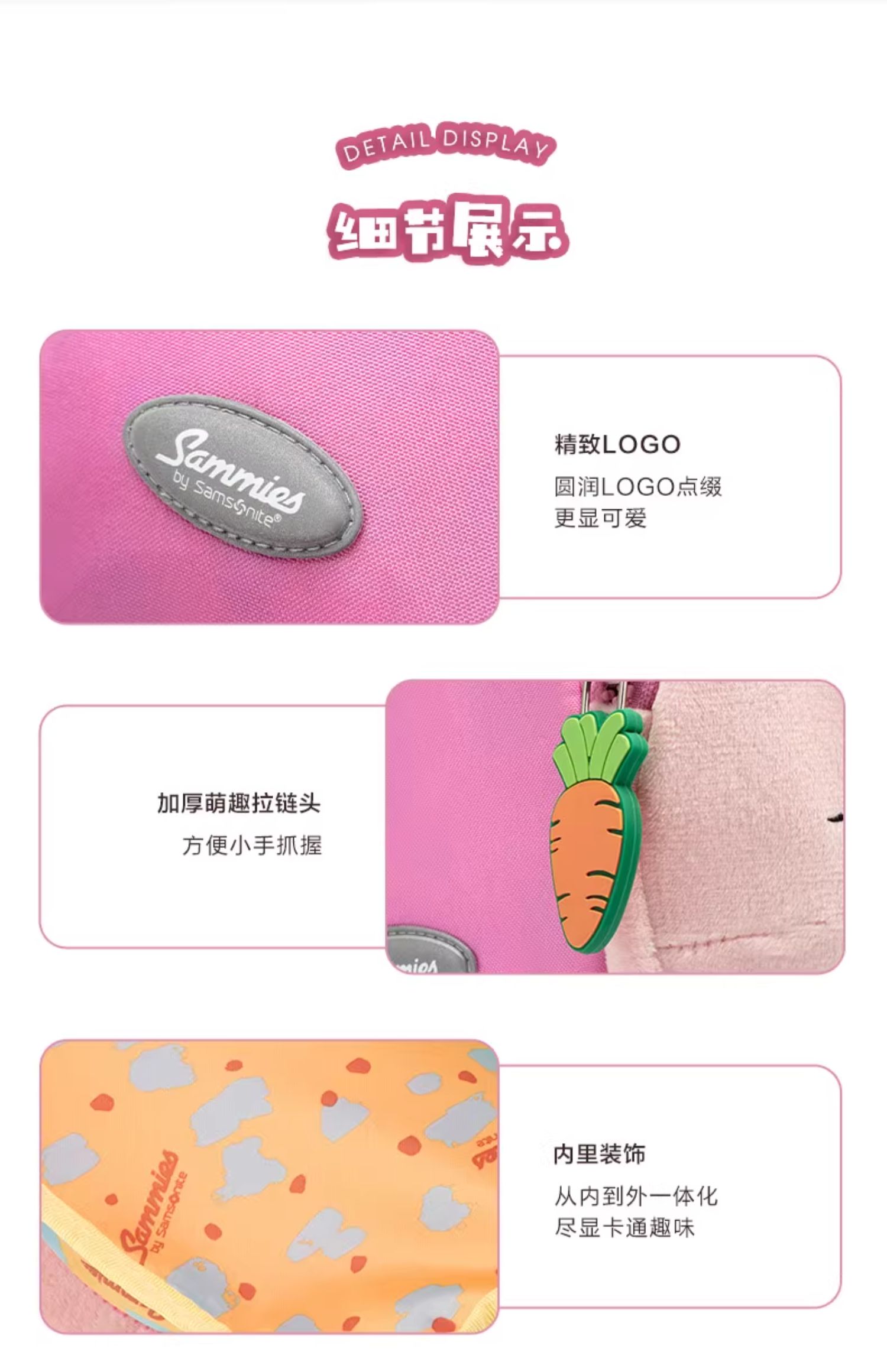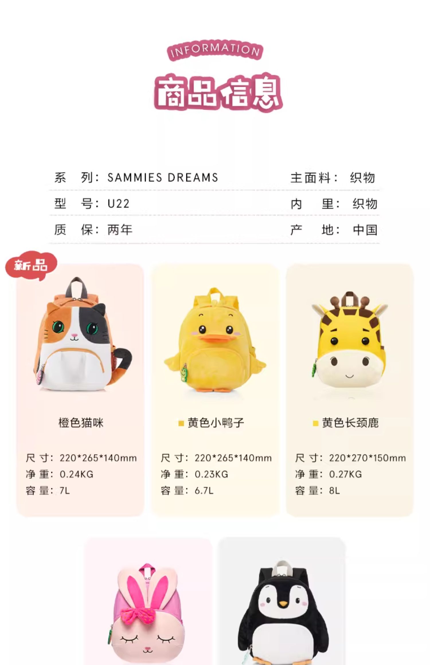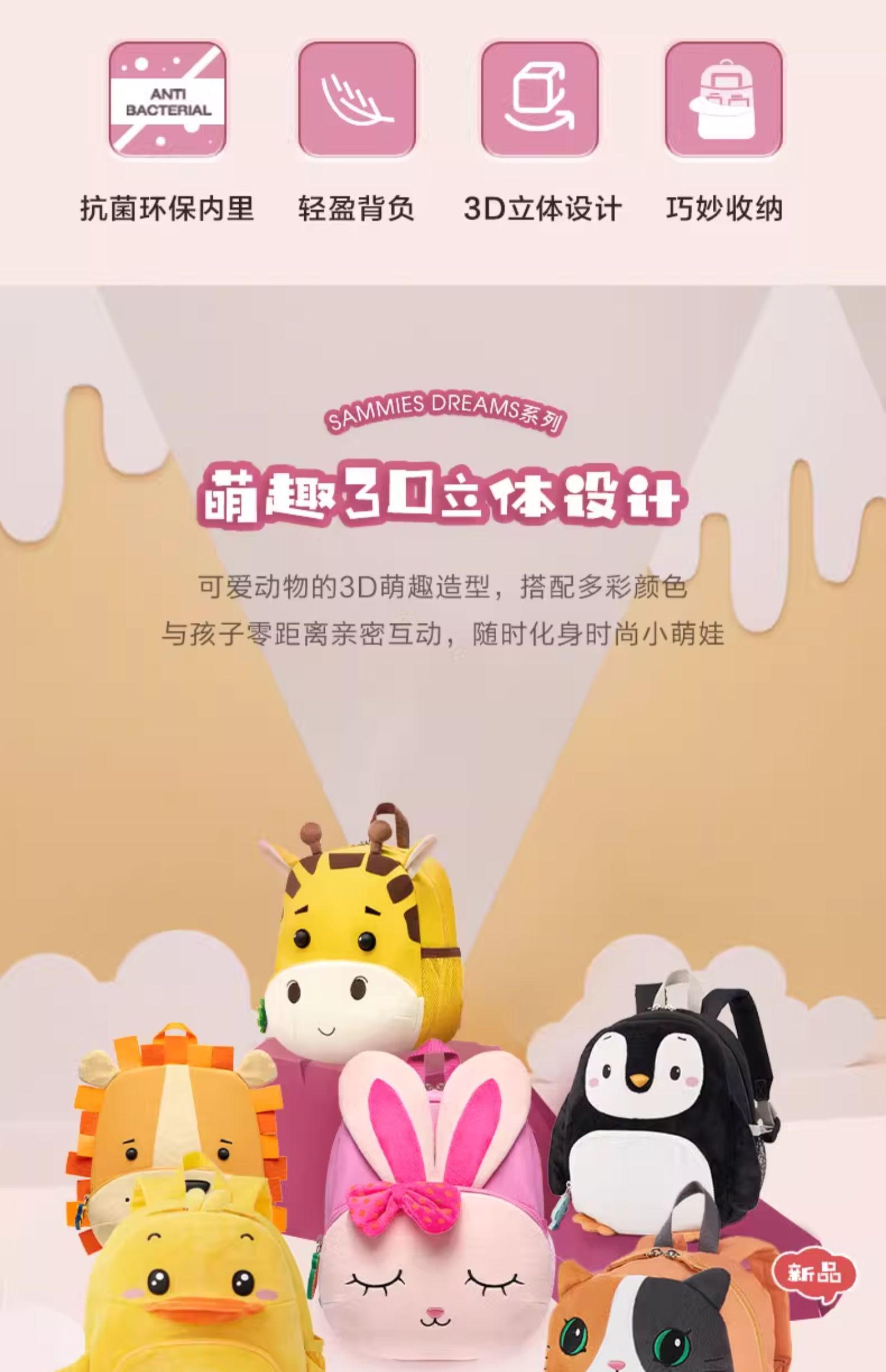 Samsonite新秀丽 儿童背包可爱卡通动物造型抗菌轻便大容量收纳U22