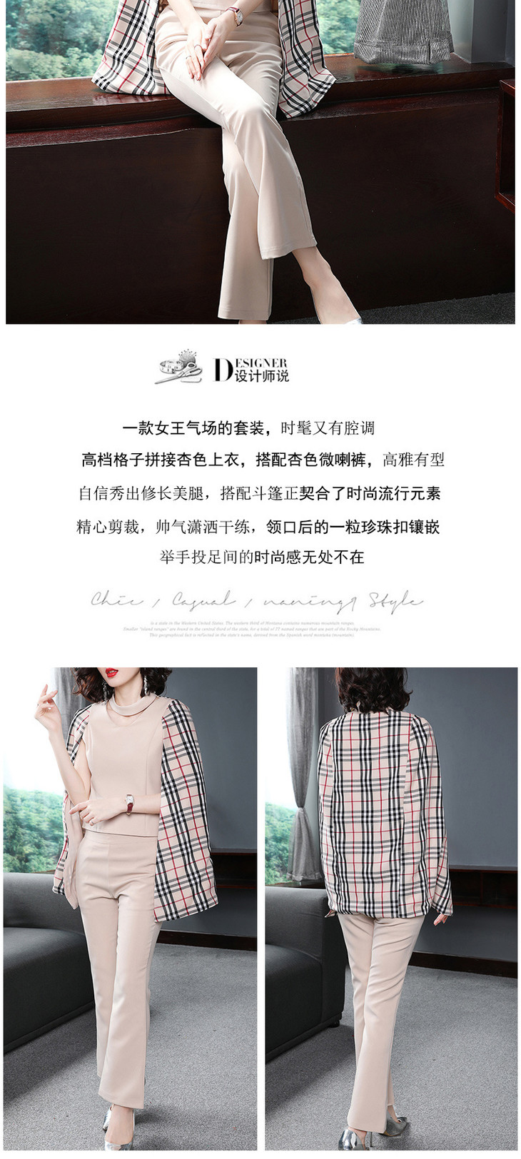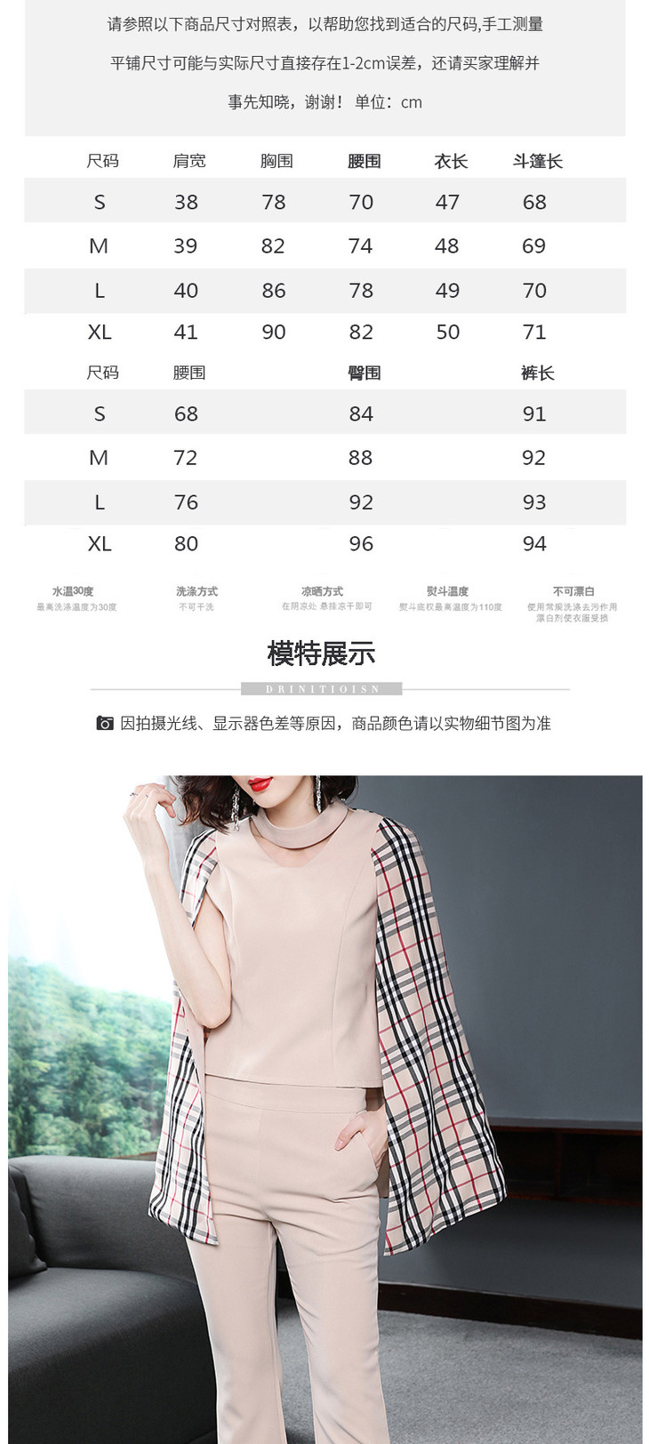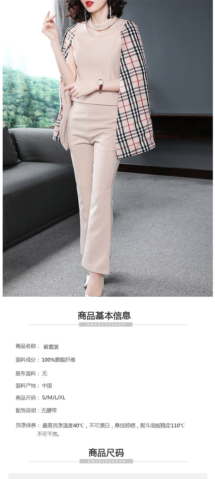 YFR-新款高雅修身显瘦气质杏色斗篷+微喇裤套装