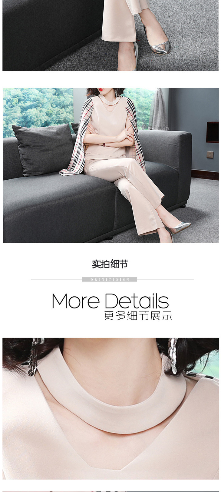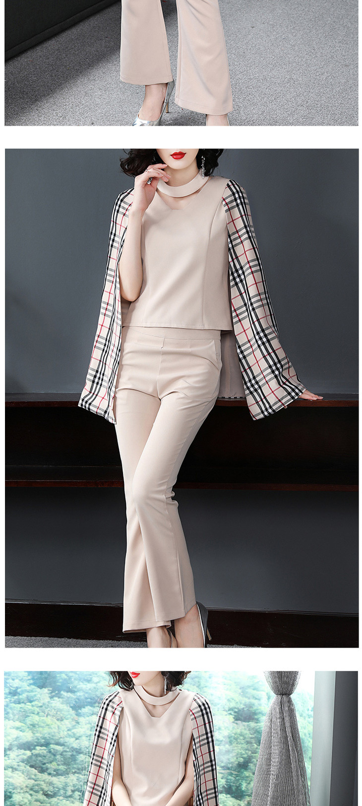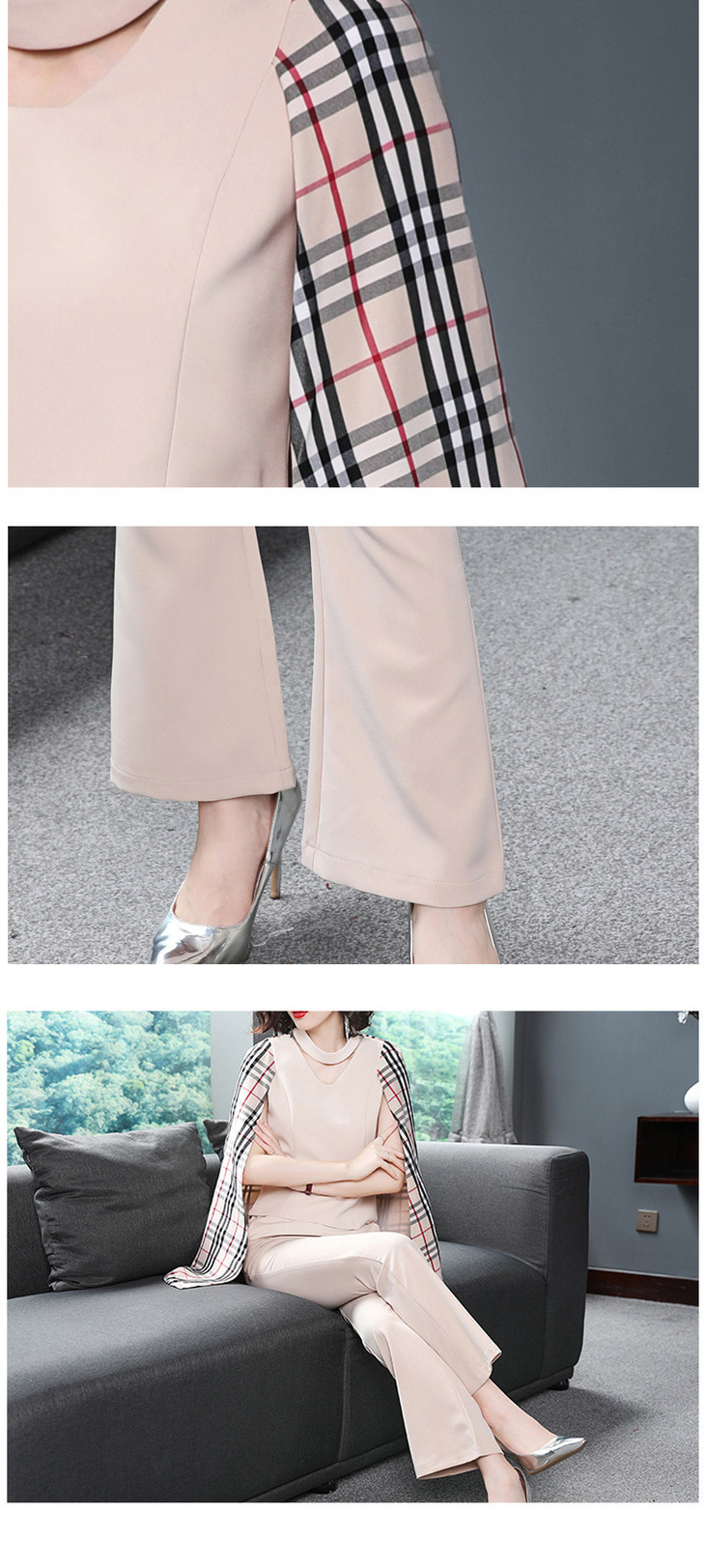 YFR-新款高雅修身显瘦气质杏色斗篷+微喇裤套装