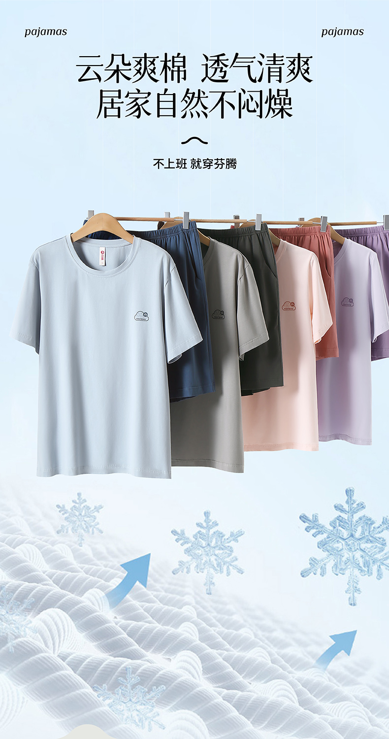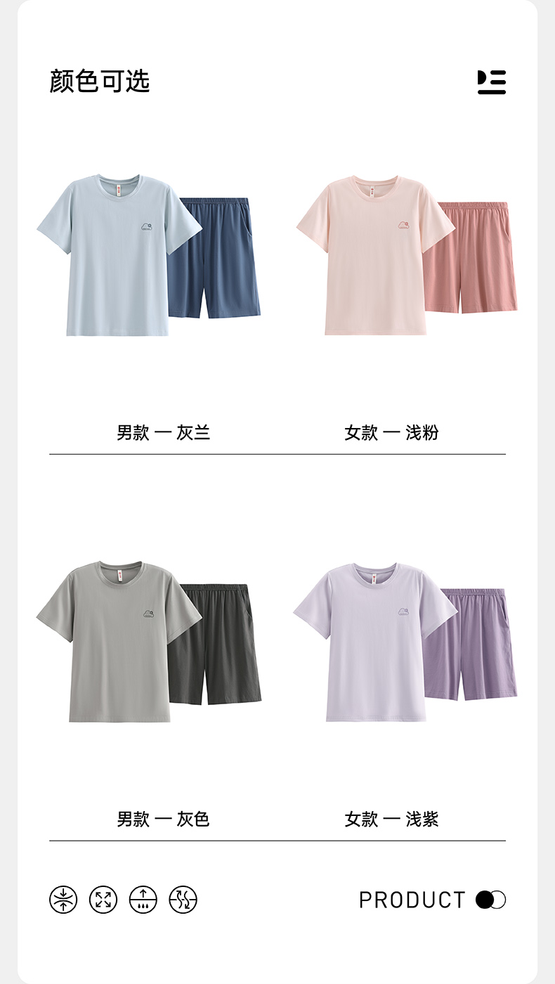 芬腾睡衣男款夏季纯棉短袖短裤套装情侣薄款大码可外穿家居服套装