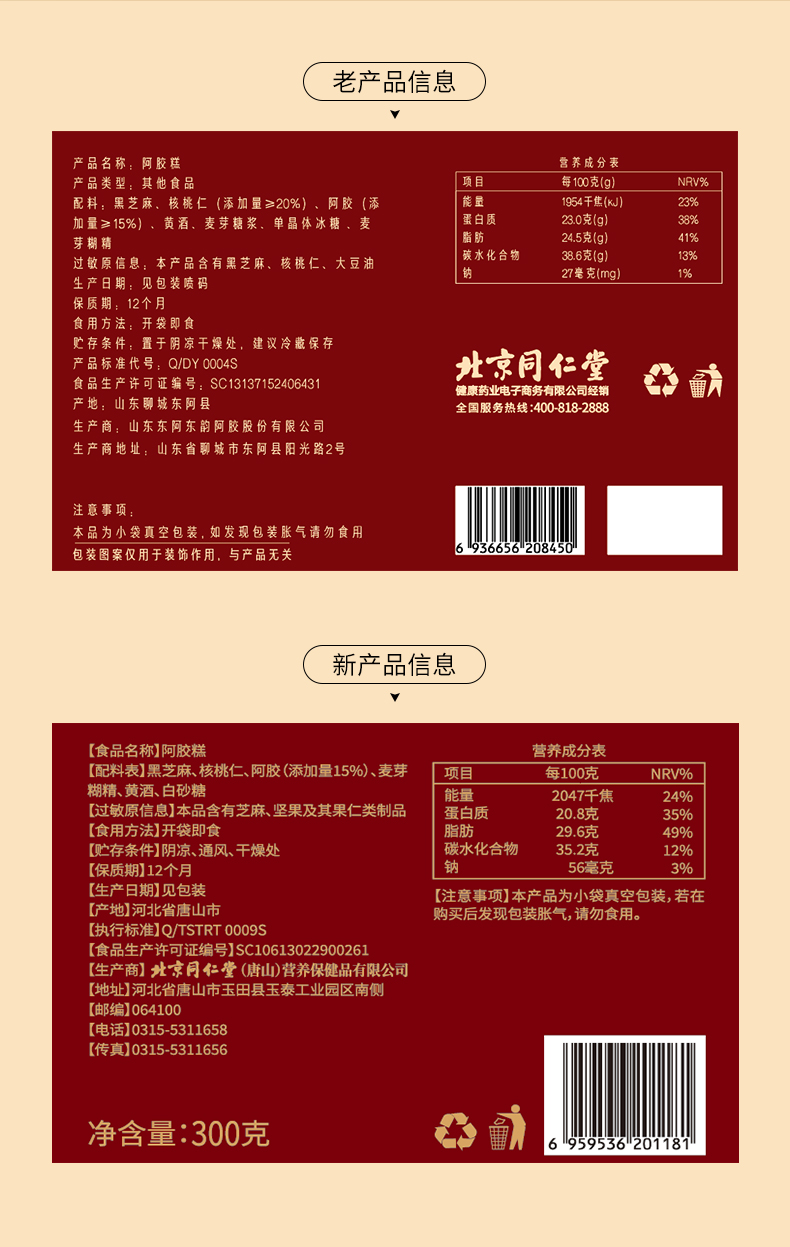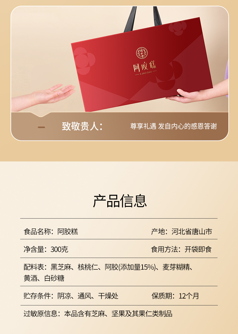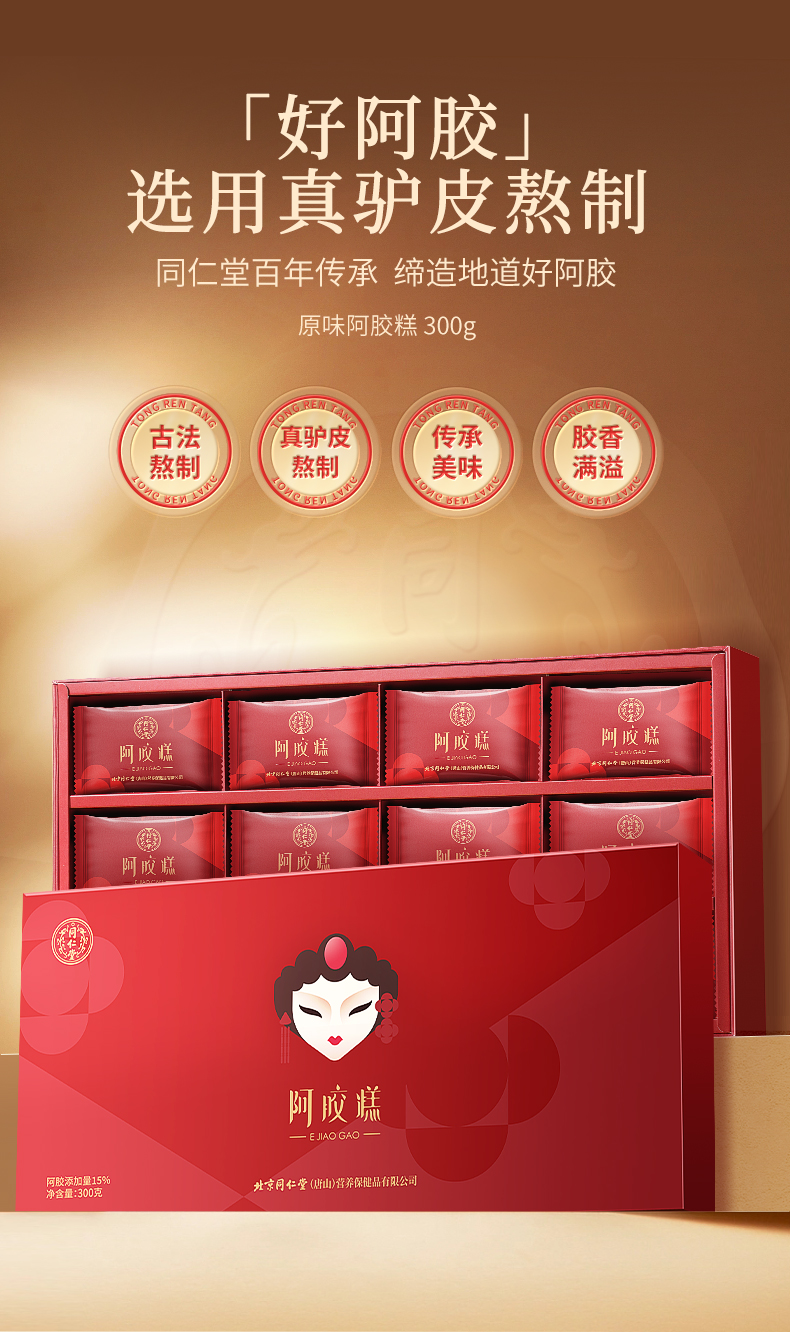 【正宗同仁堂品牌】北京同仁堂 阿胶糕-300克 送礼盒 东阿水熬制 15%含量 独立包装 SY