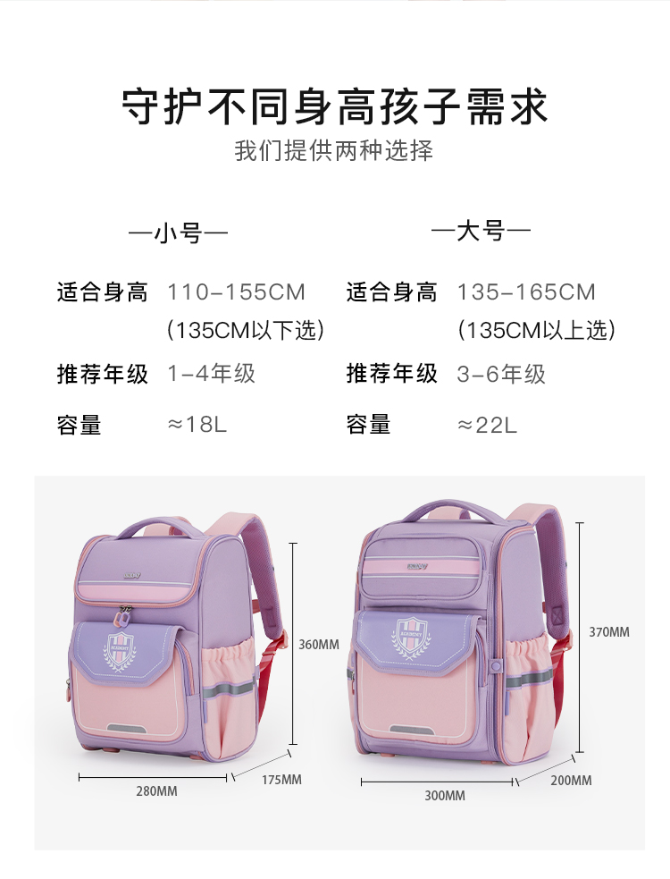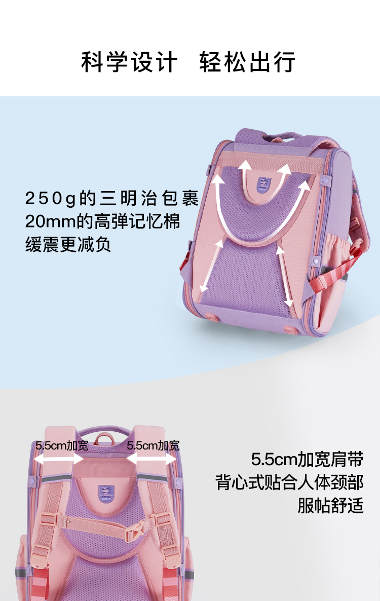 卡拉羊1-6年级18L/22L五维减负防下坠大嘴书包 天赋 CX2224+CX2693