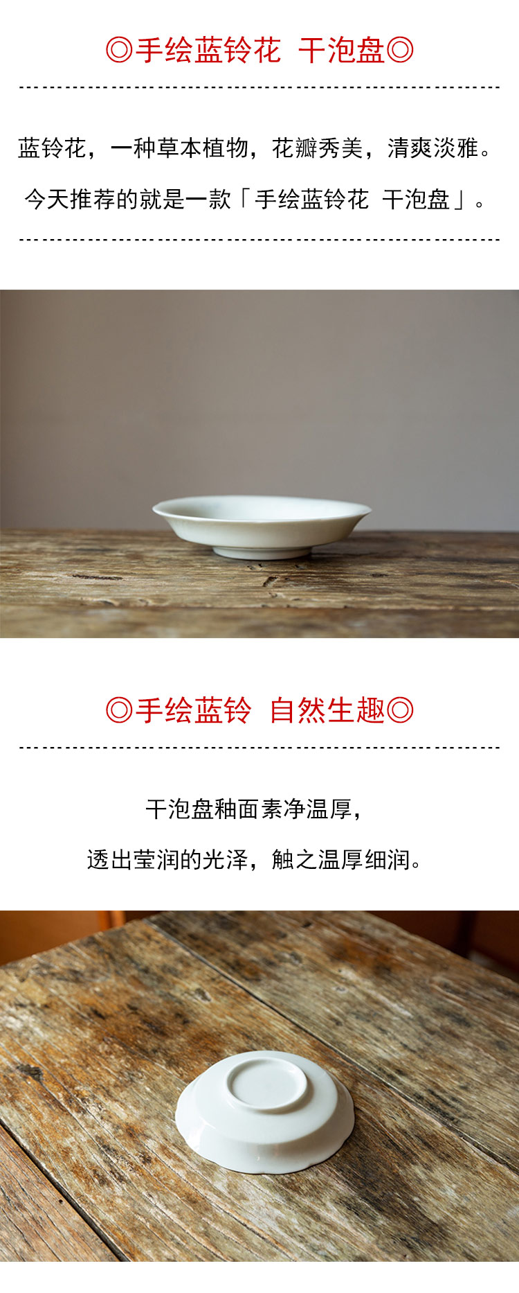 茶香记 手绘蓝铃花干泡盘壶承陶瓷茶盘点心盘一物多用茶桌零配