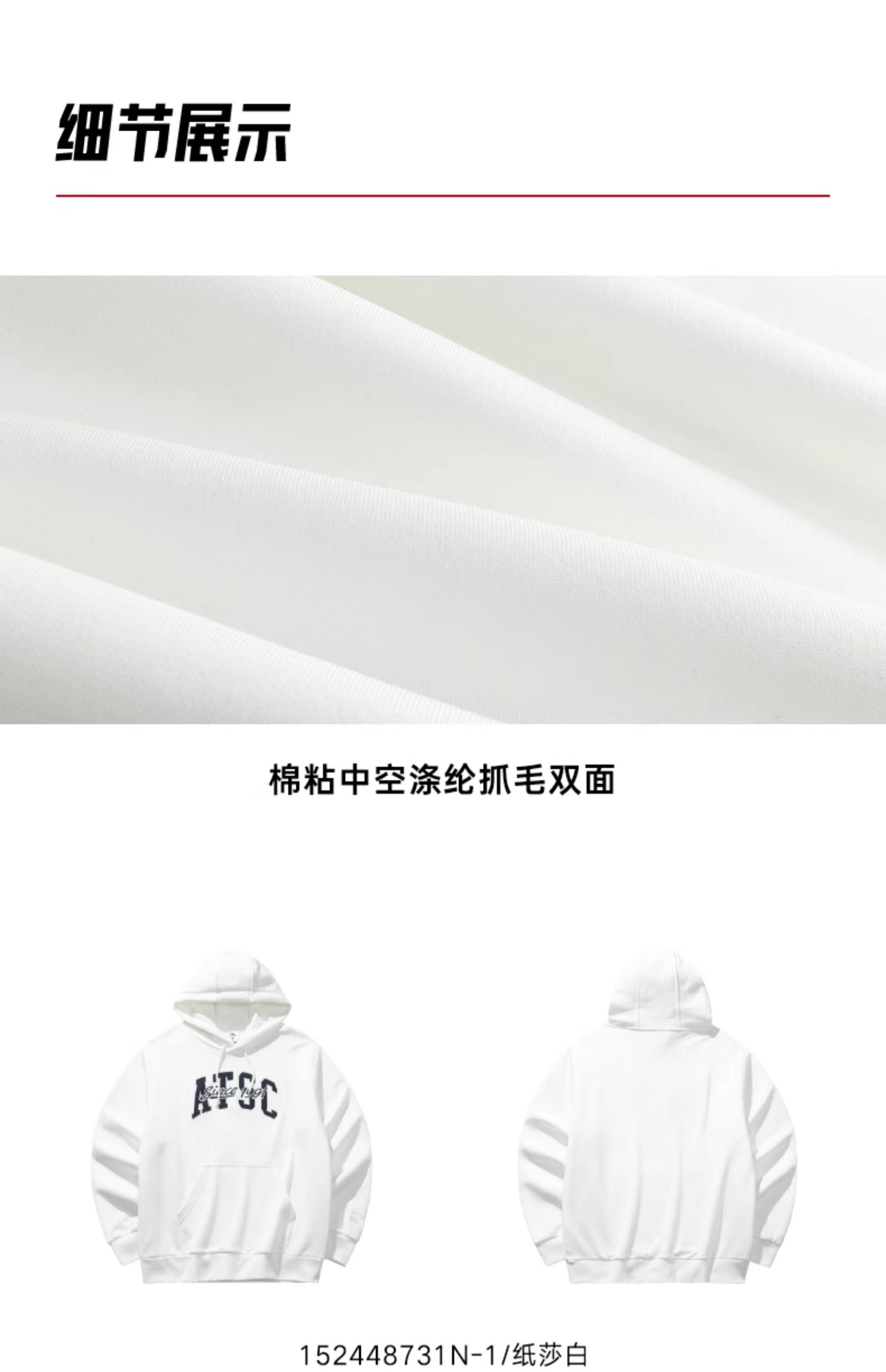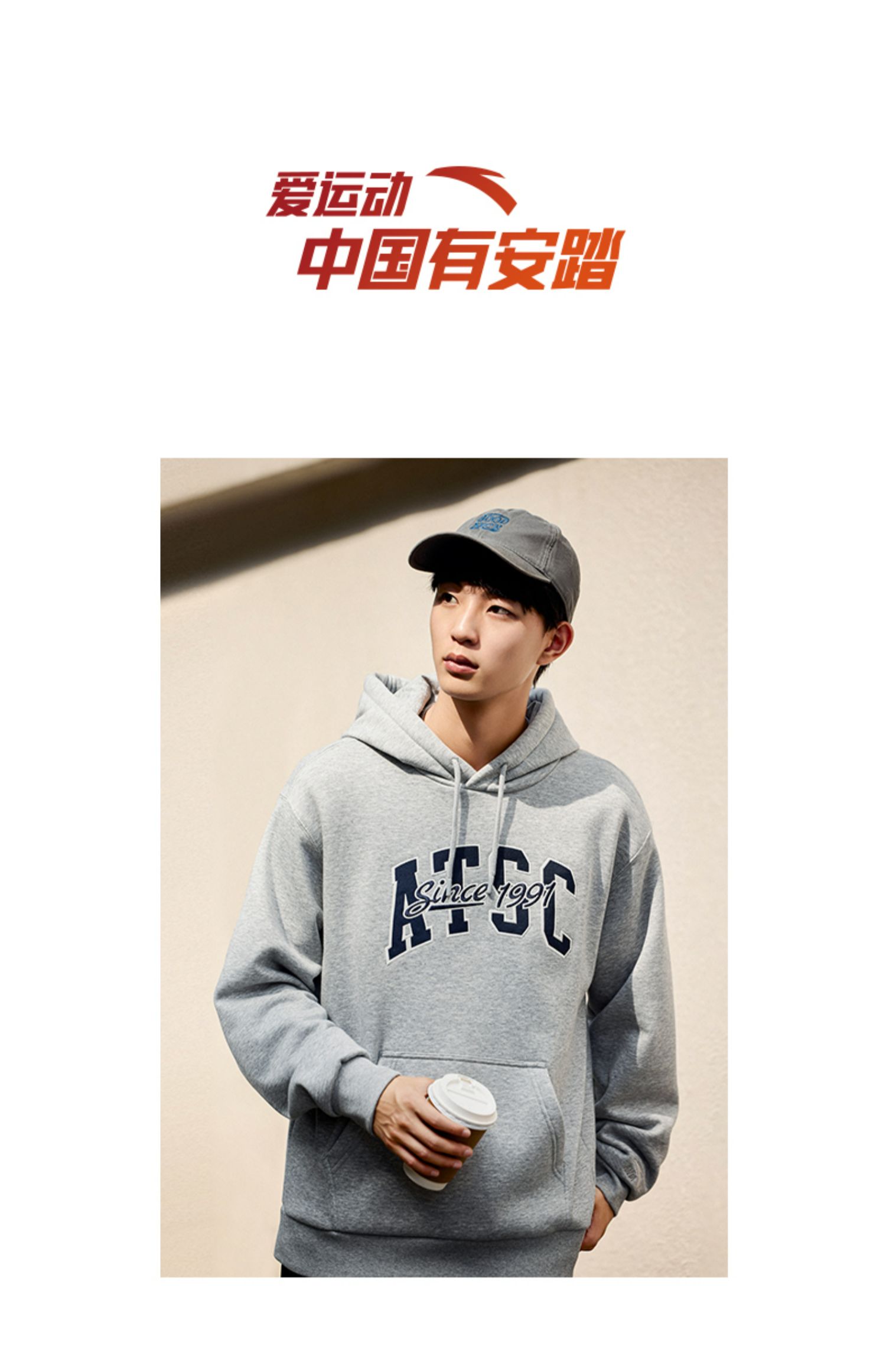 安踏加绒连帽卫衣男士冬季字母印花休闲长袖运动服上衣152448731N