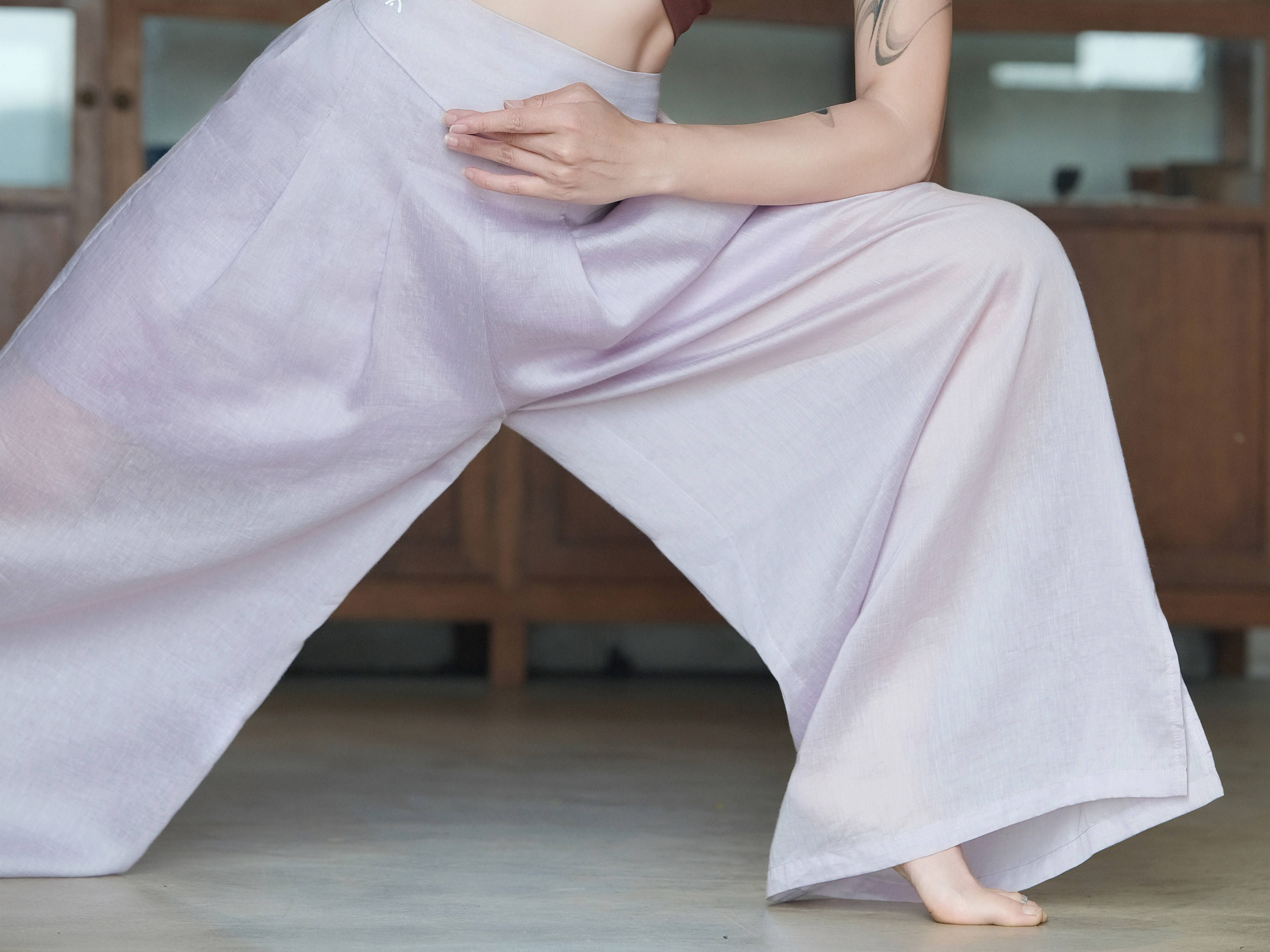 爱暇步2026春新款瑜伽裤薄款透气内观流瑜伽舞蹈练功裤粉色阔腿裤