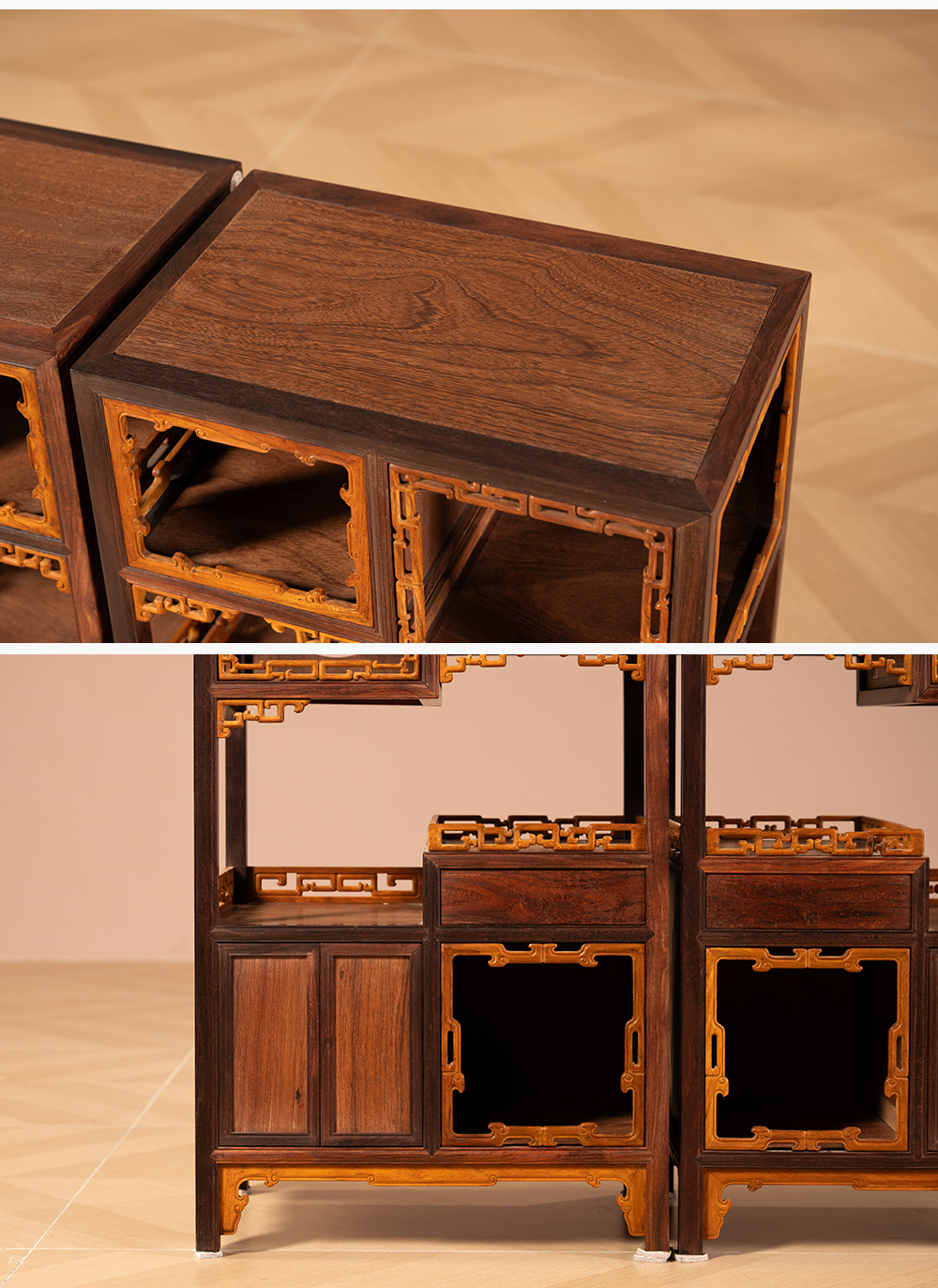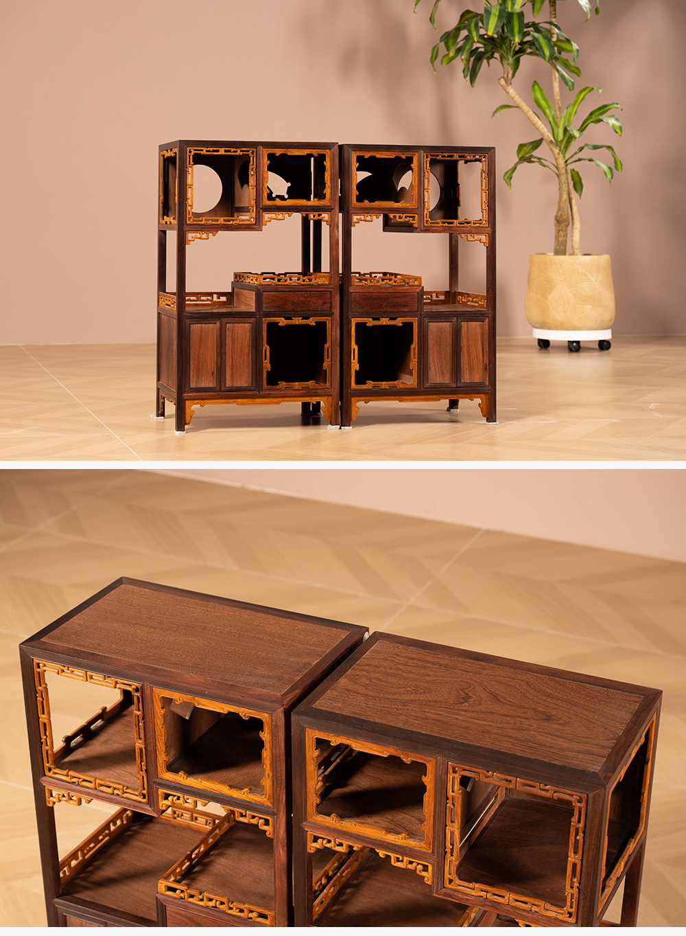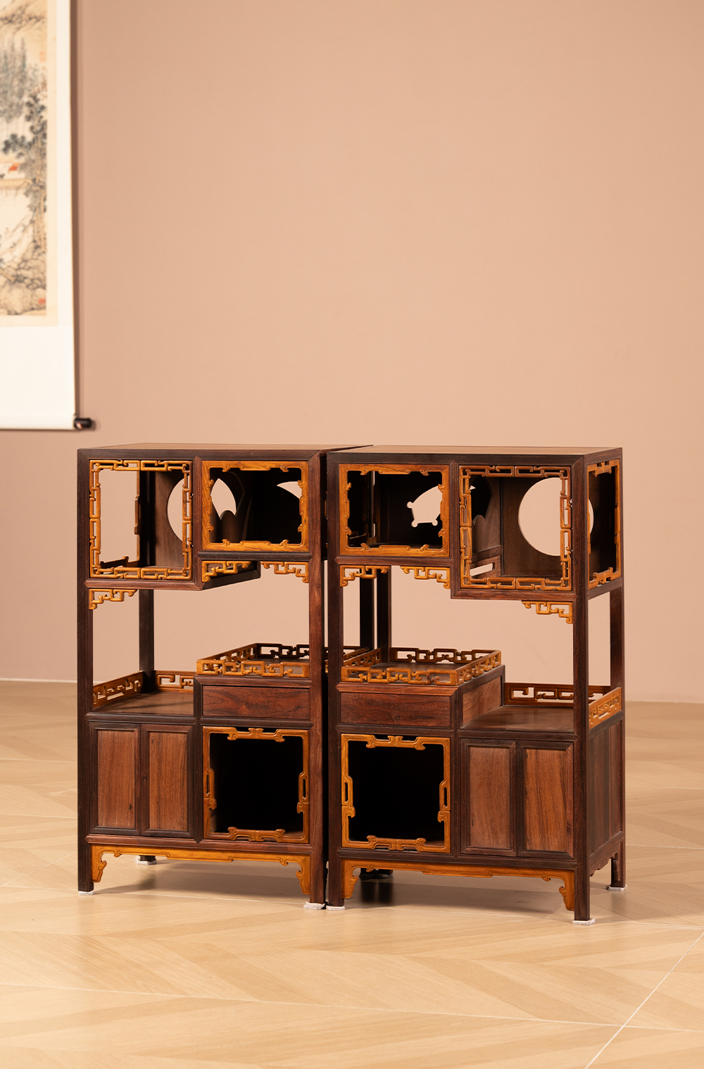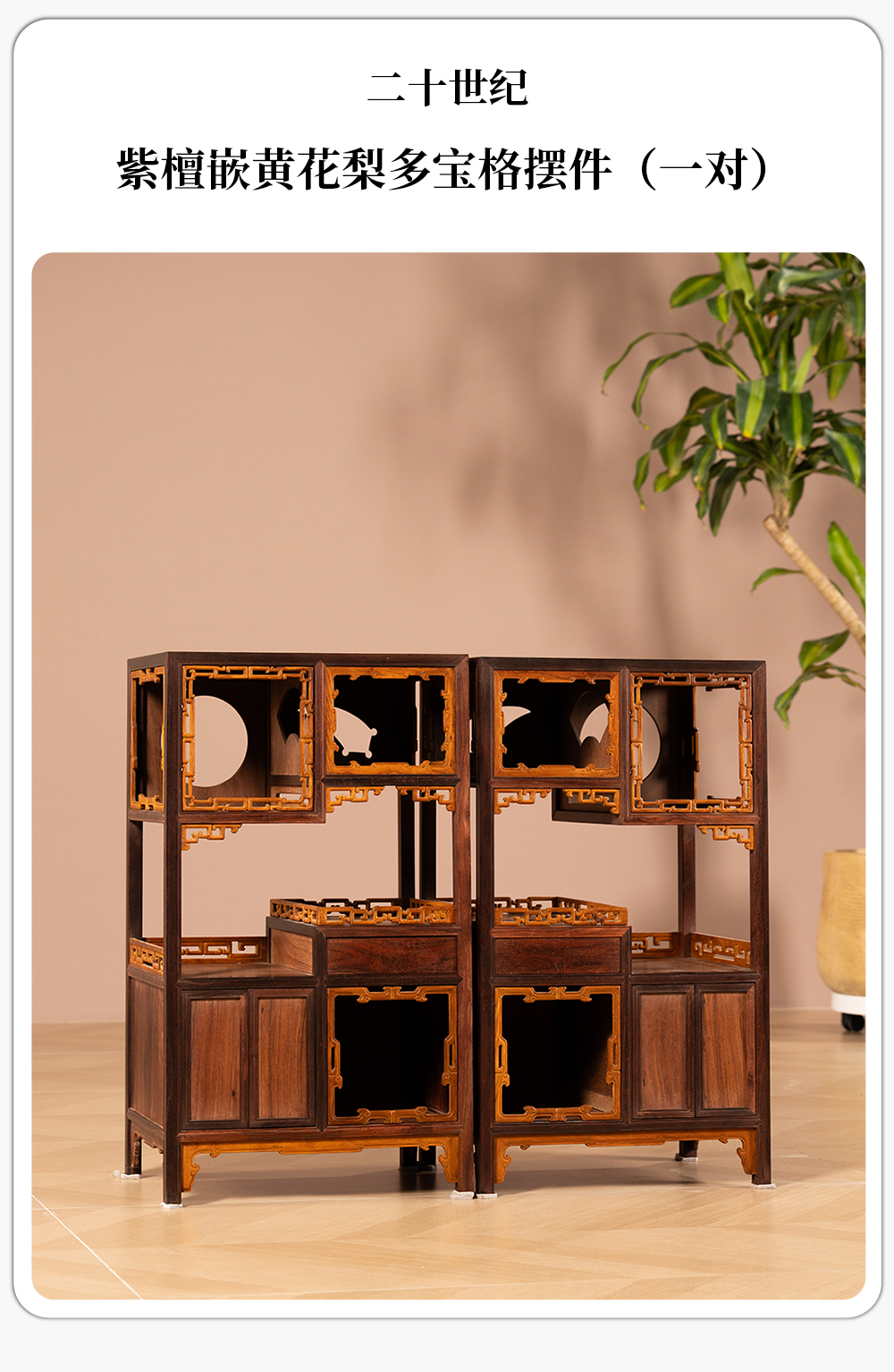 二十世纪 紫檀嵌黄花梨多宝格摆件(一对)