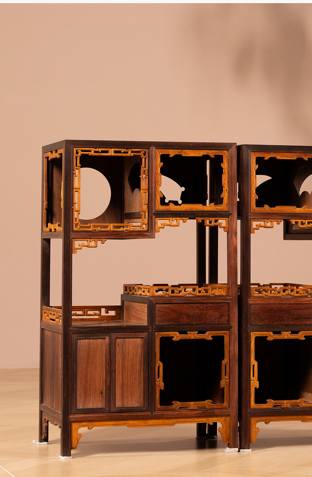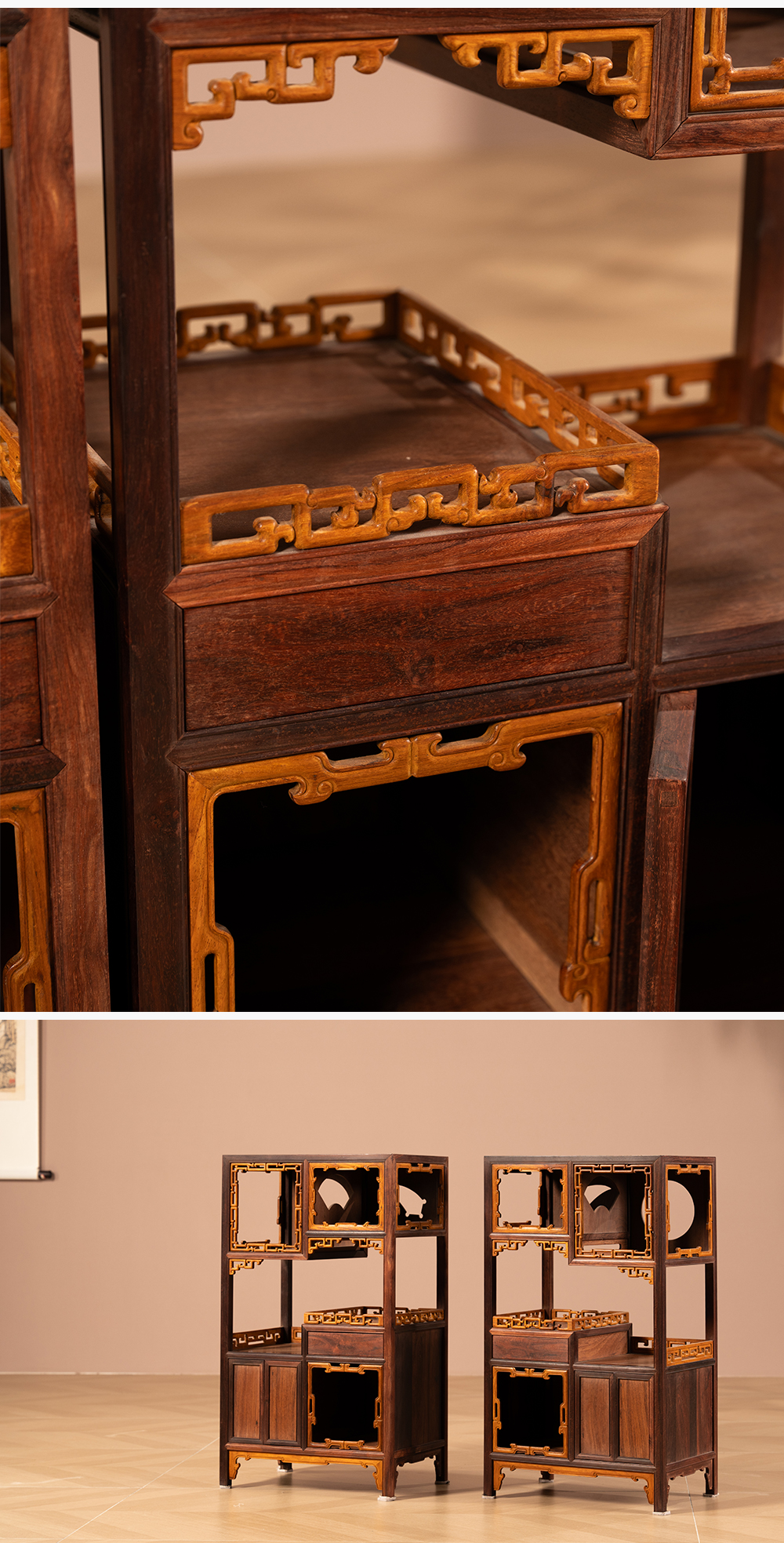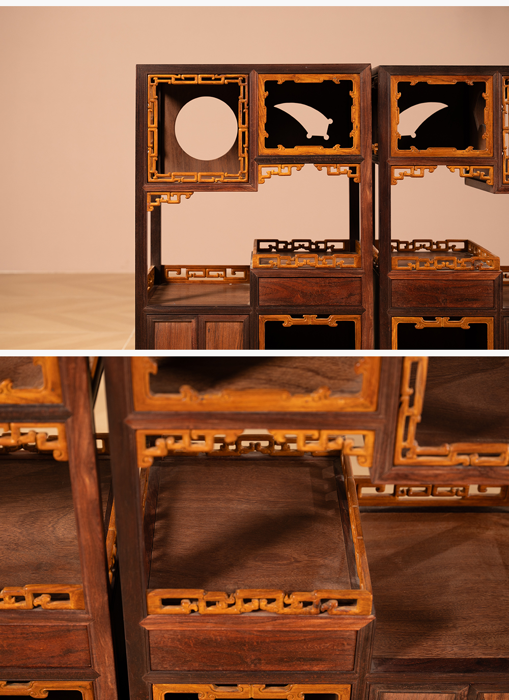 二十世纪 紫檀嵌黄花梨多宝格摆件(一对)