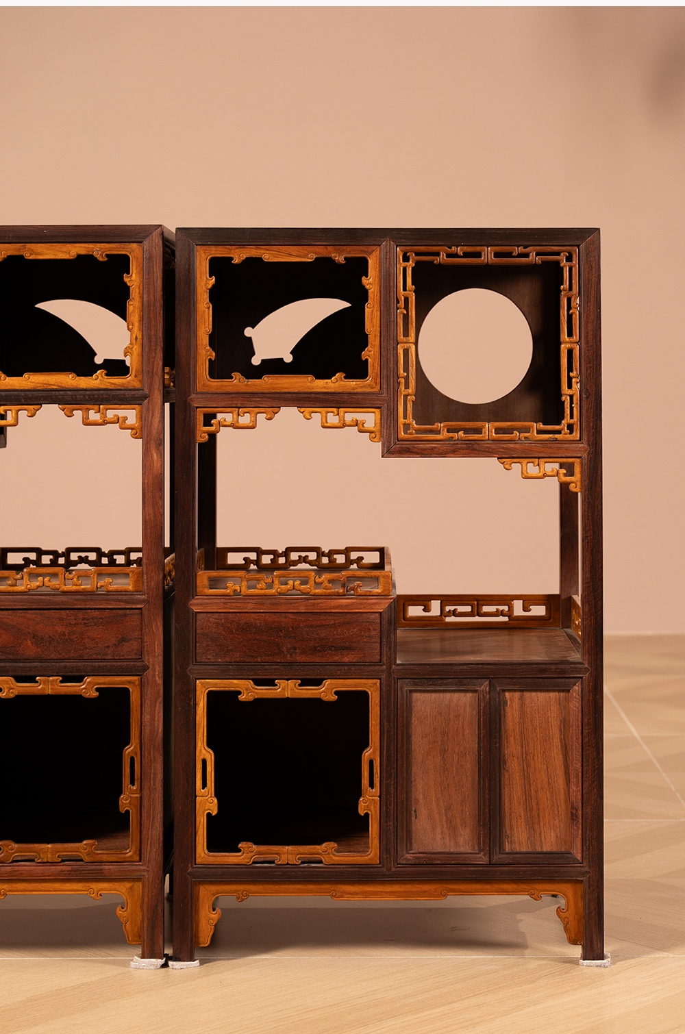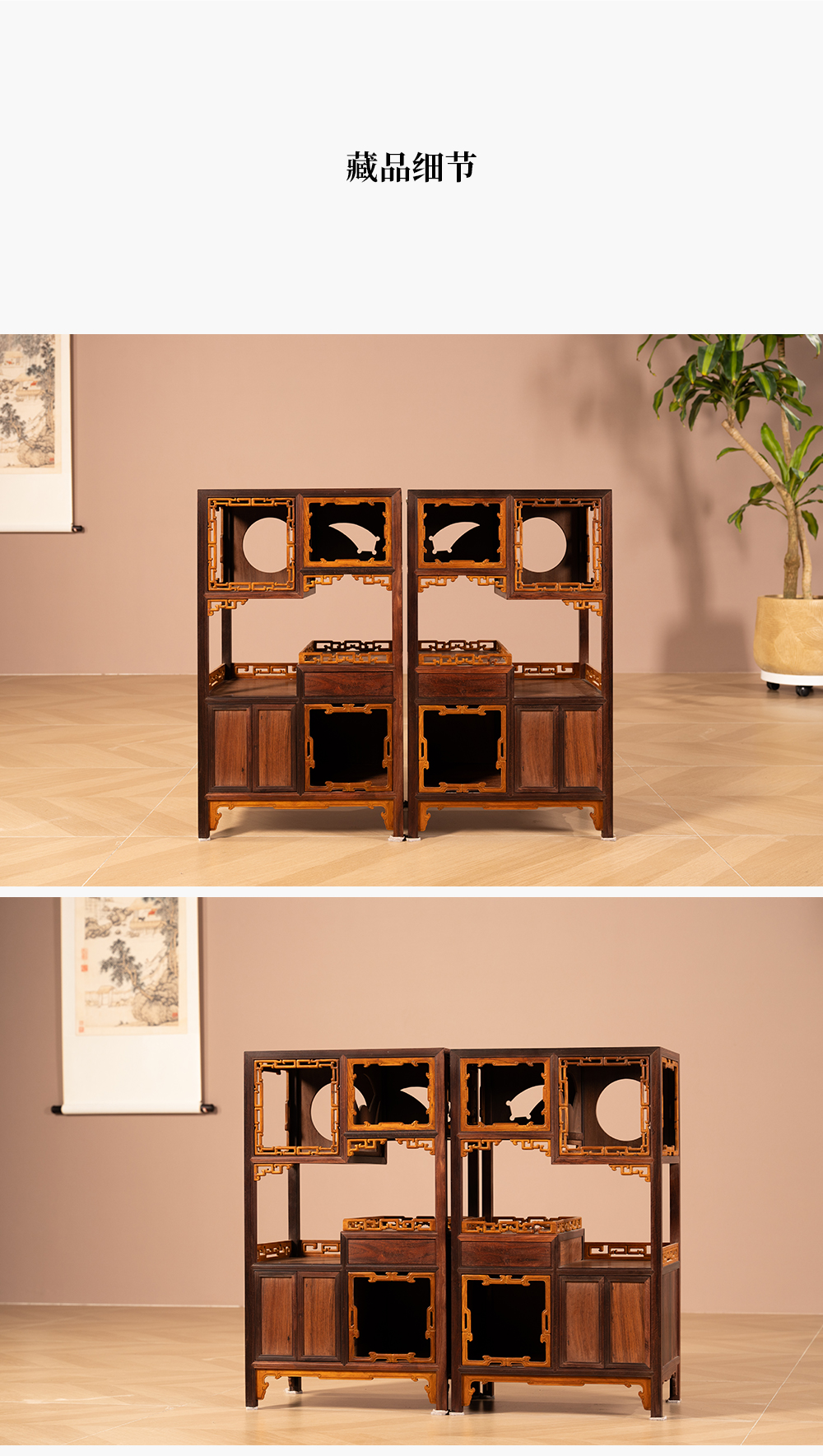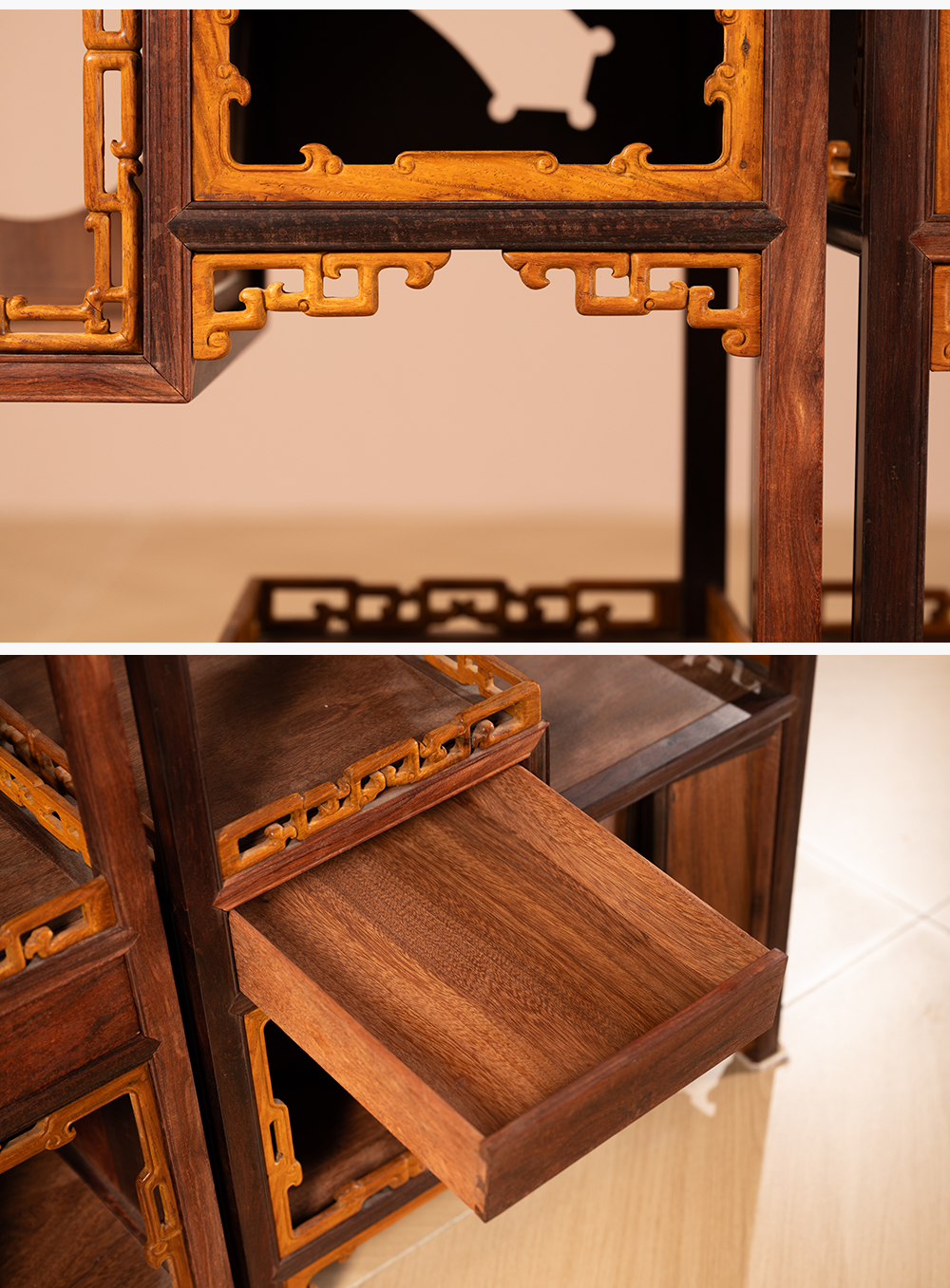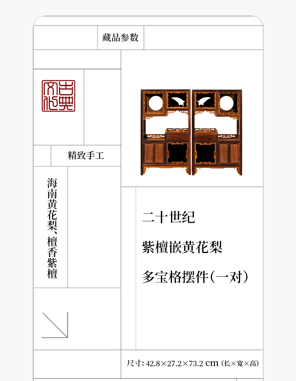 二十世纪 紫檀嵌黄花梨多宝格摆件(一对)