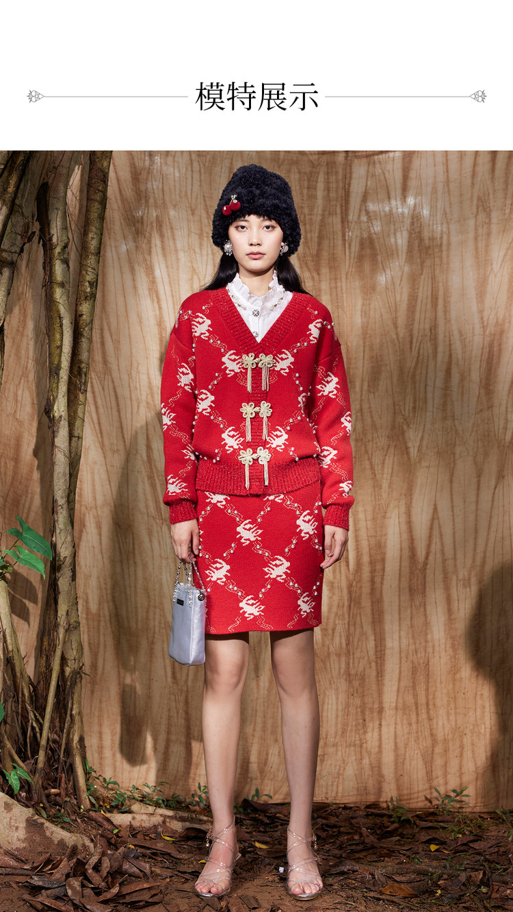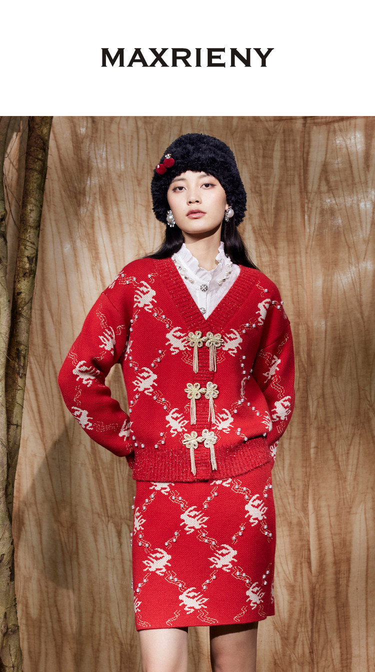 MAXRIENY复古感兔子新年裙子毛织半身裙针织短裙显瘦MC87SK782R50