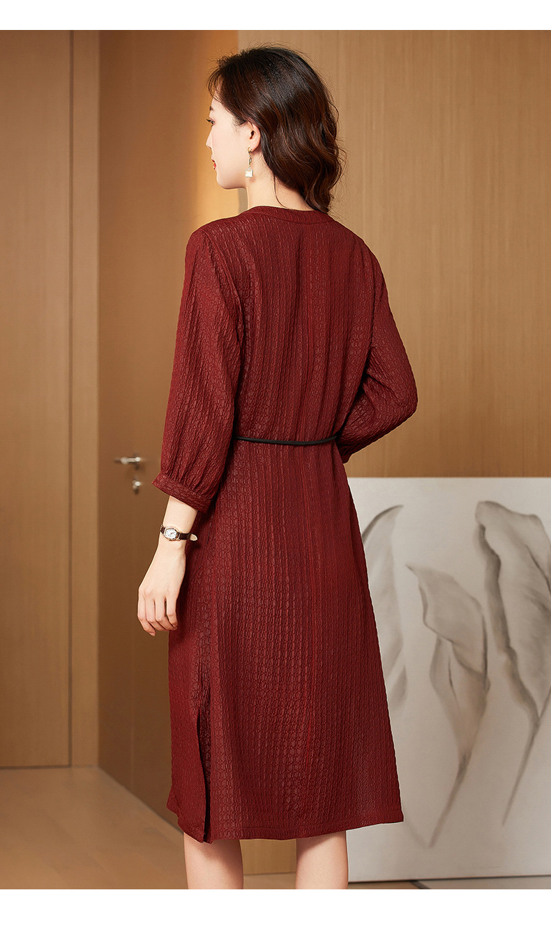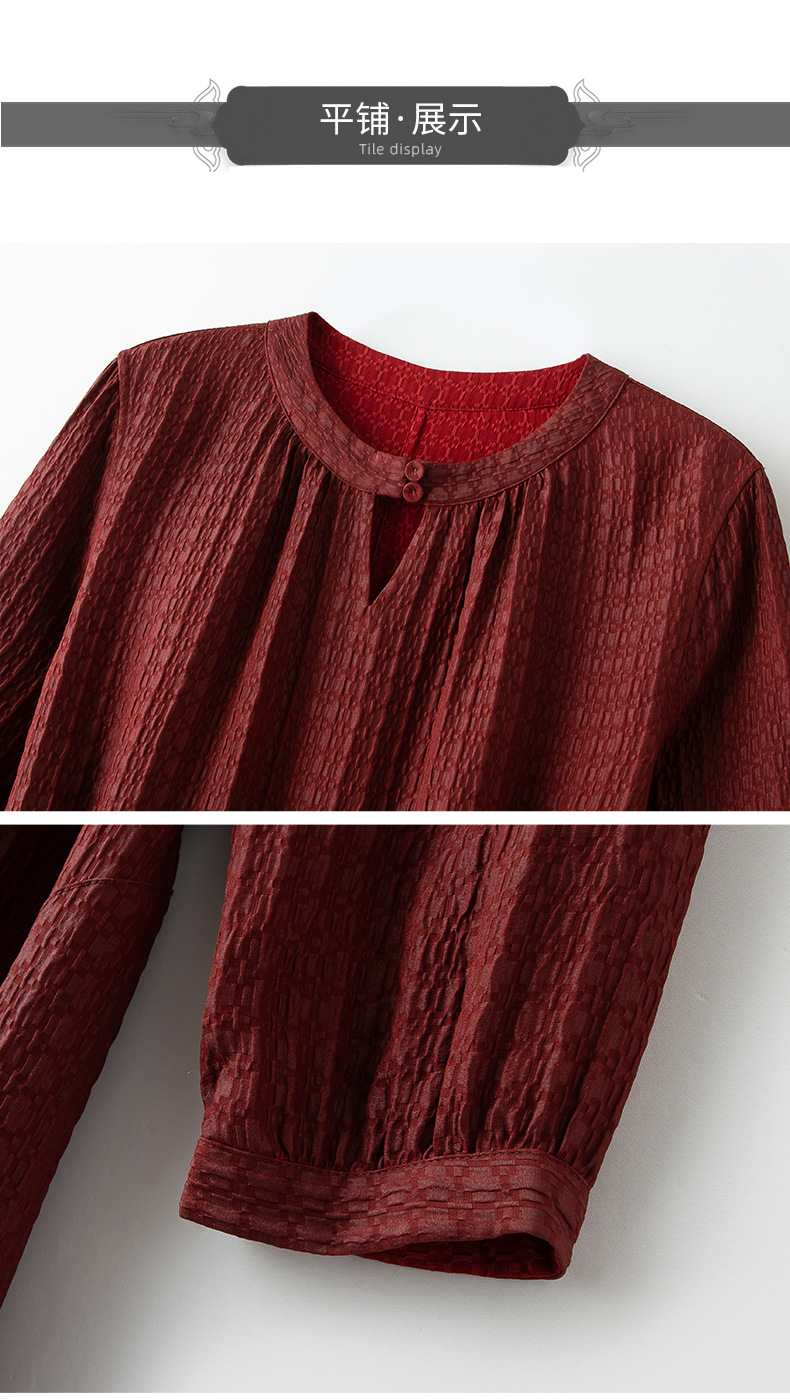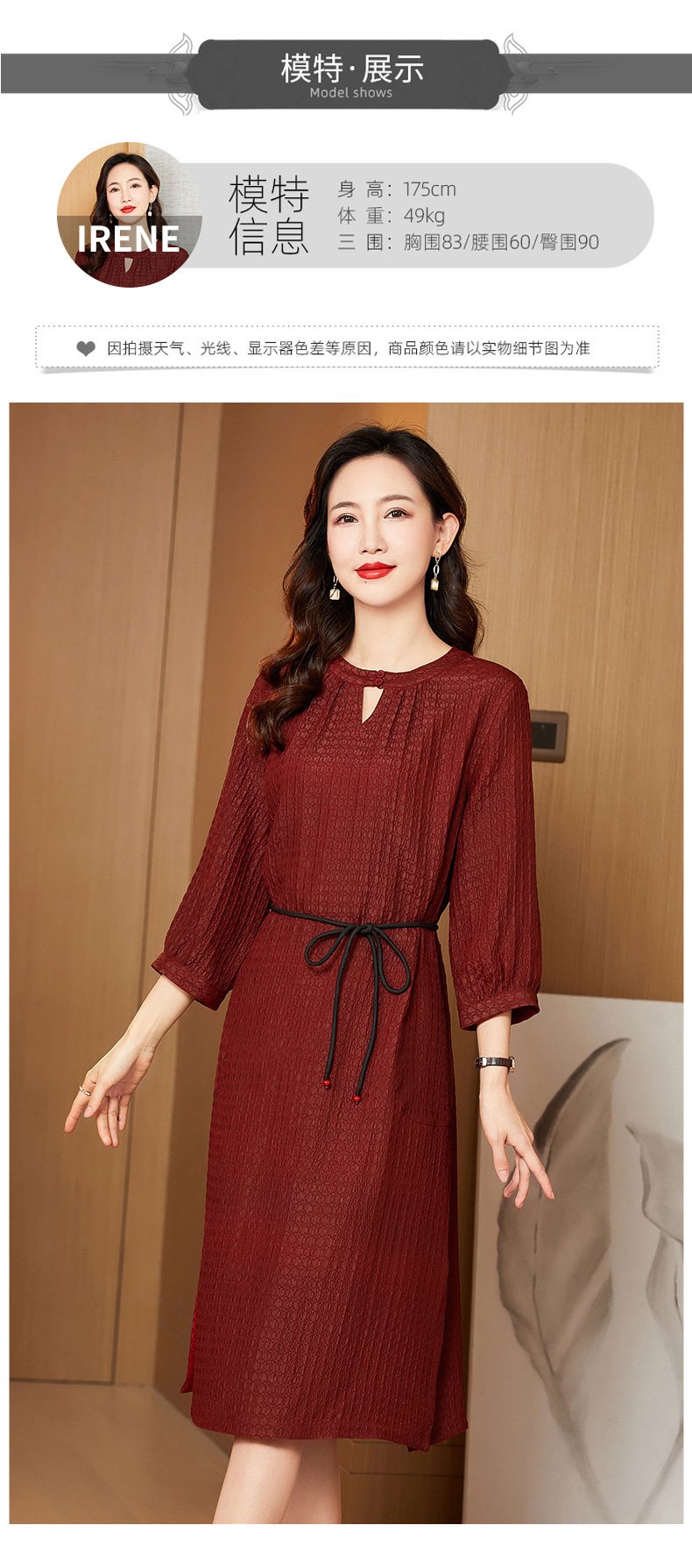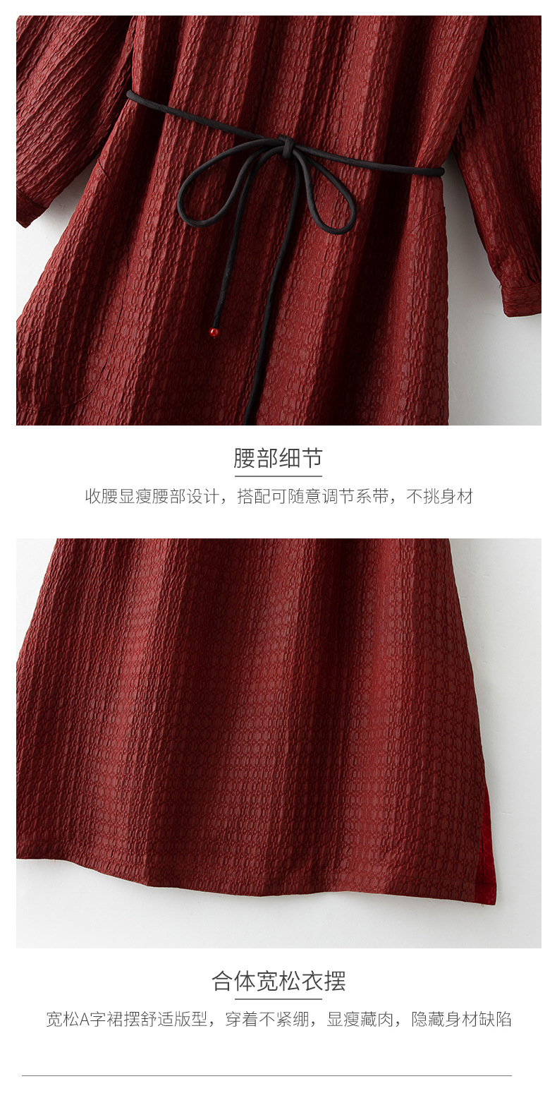 KQ-221305花罗香云纱真丝连衣裙女士新款品牌大码桑蚕丝红云纱裙子