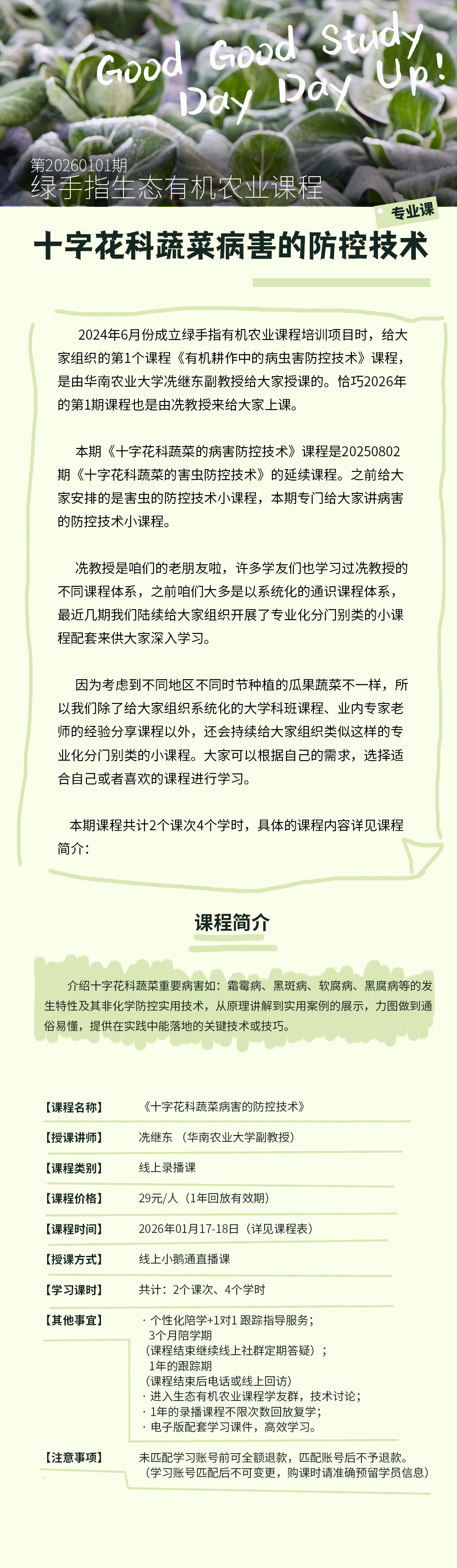 十字花科蔬菜病害的防控技术【线上】课程