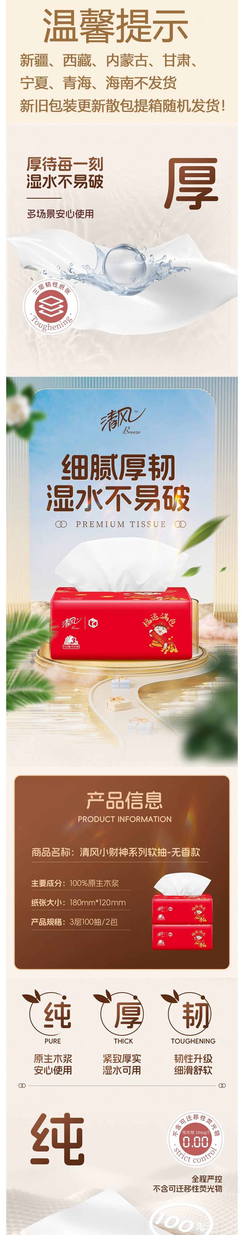 清风 小财神系列抽纸3层100抽2包 6922266485855-1