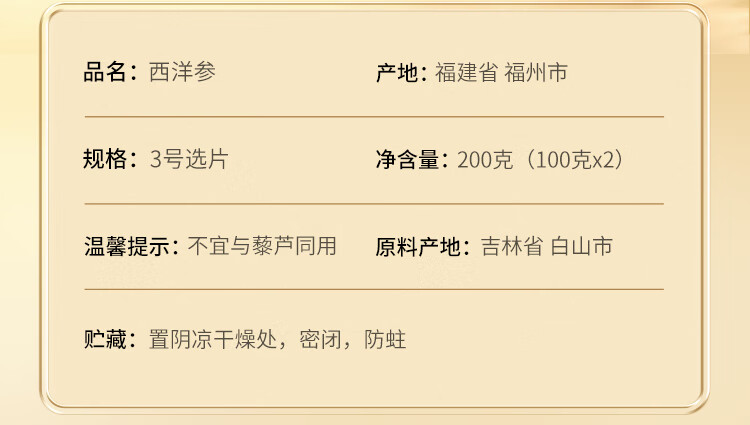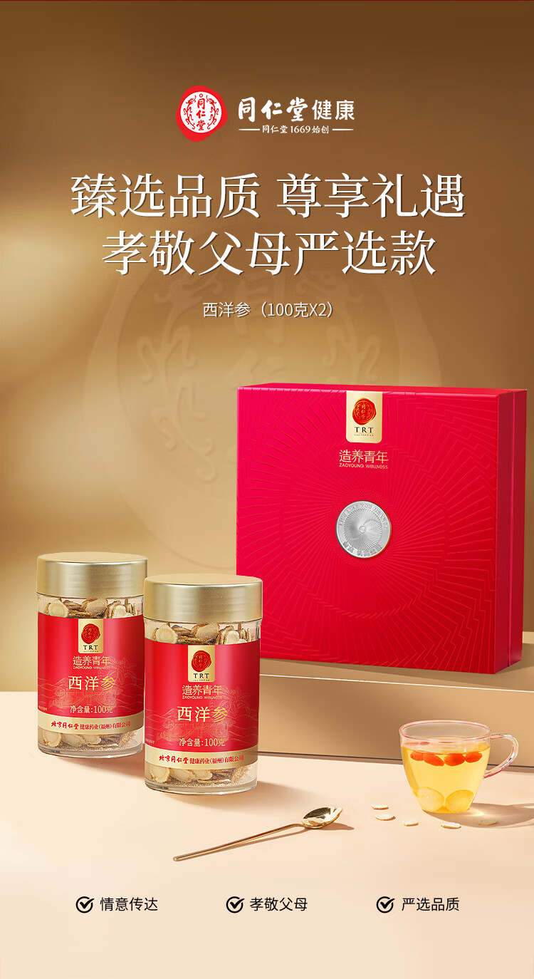 【正宗同仁堂品牌】北京同仁堂 国产西洋参(银标款) 参片直径约1-1.2cm 200克 礼盒装SY