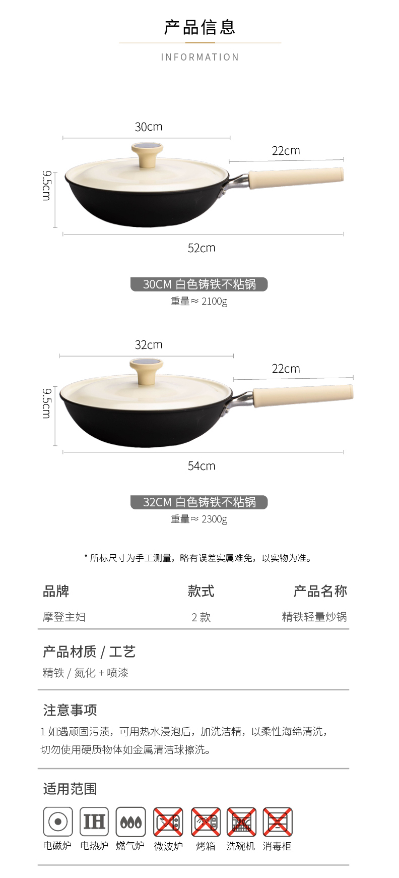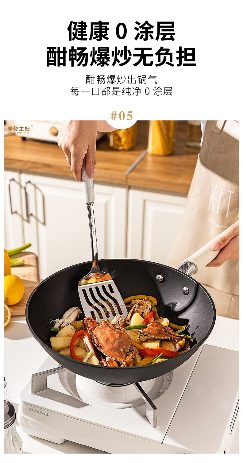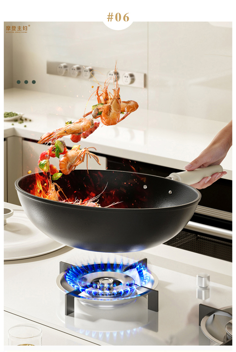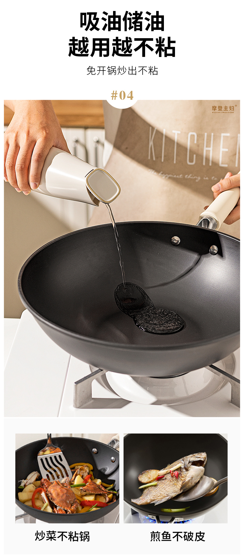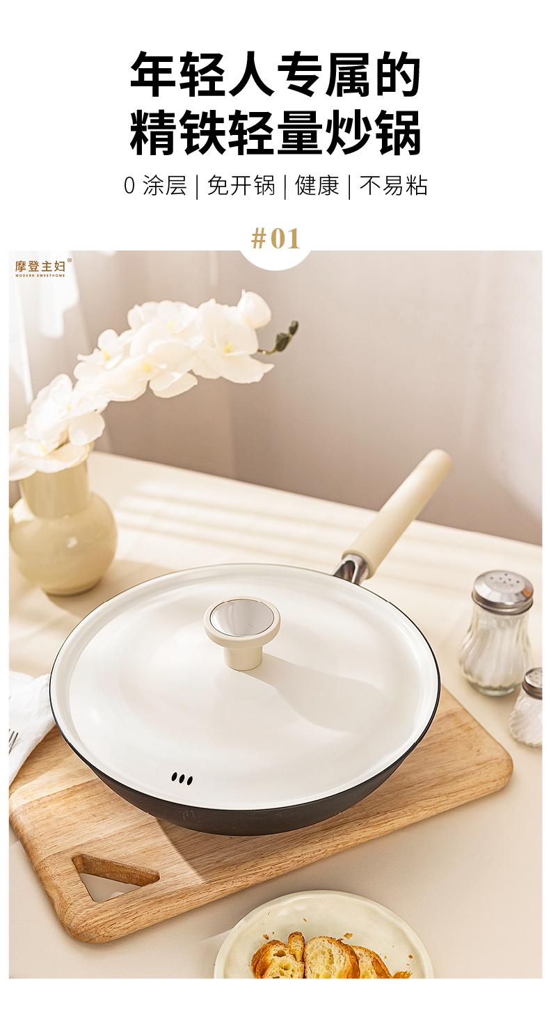 摩登主妇女士轻量铁锅炒菜锅家用电磁炉煤气灶专用无涂层不粘炒锅