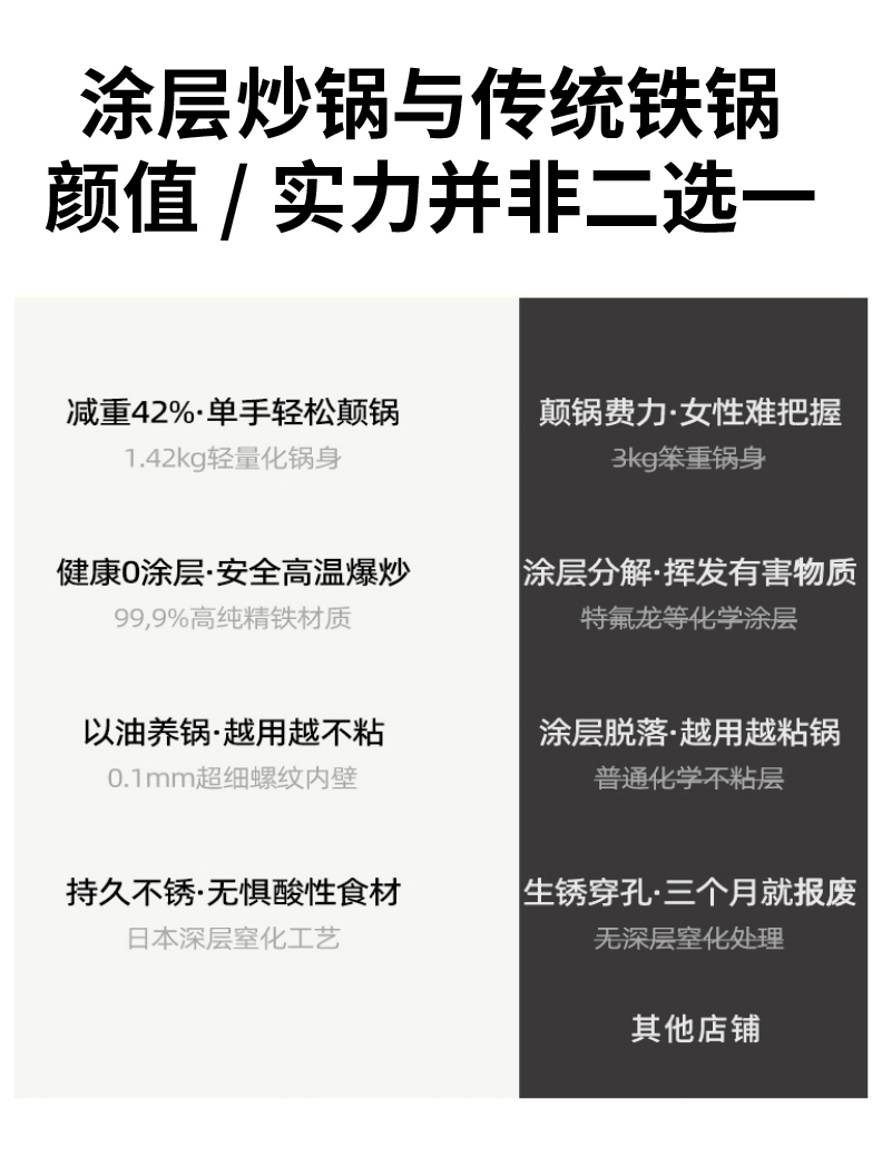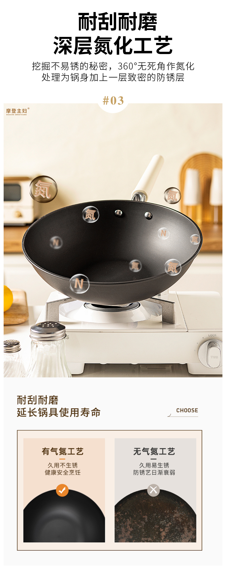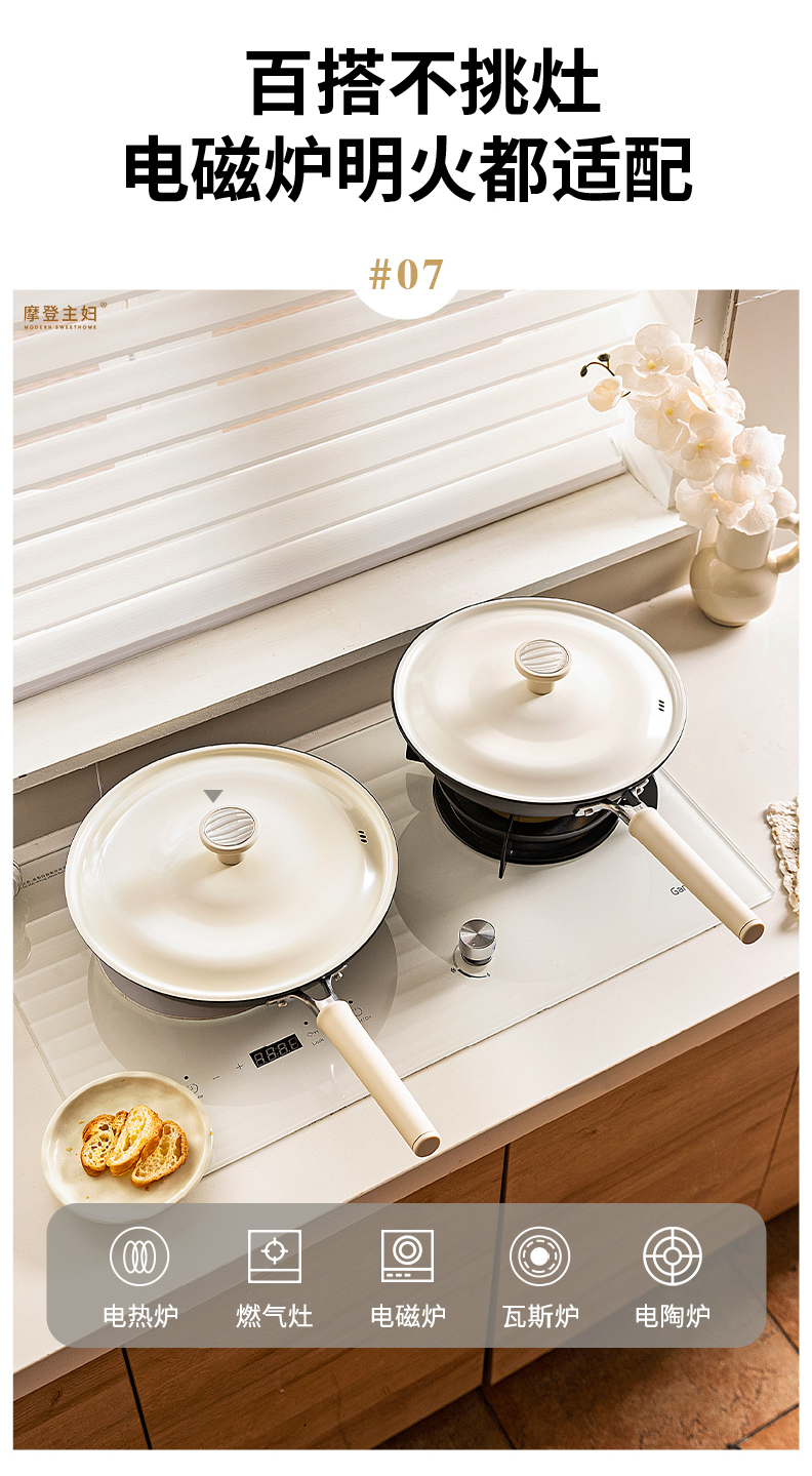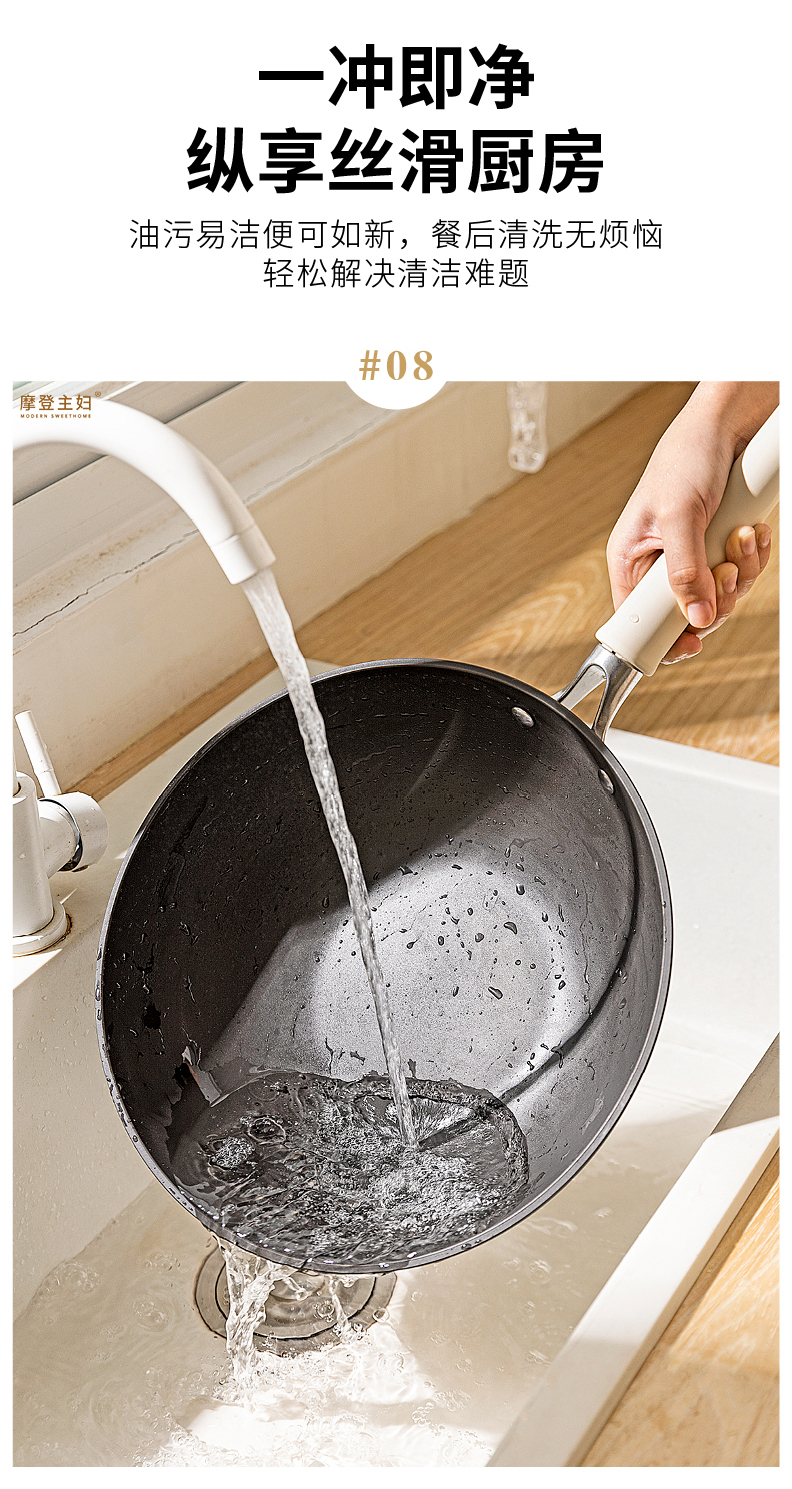 摩登主妇女士轻量铁锅炒菜锅家用电磁炉煤气灶专用无涂层不粘炒锅