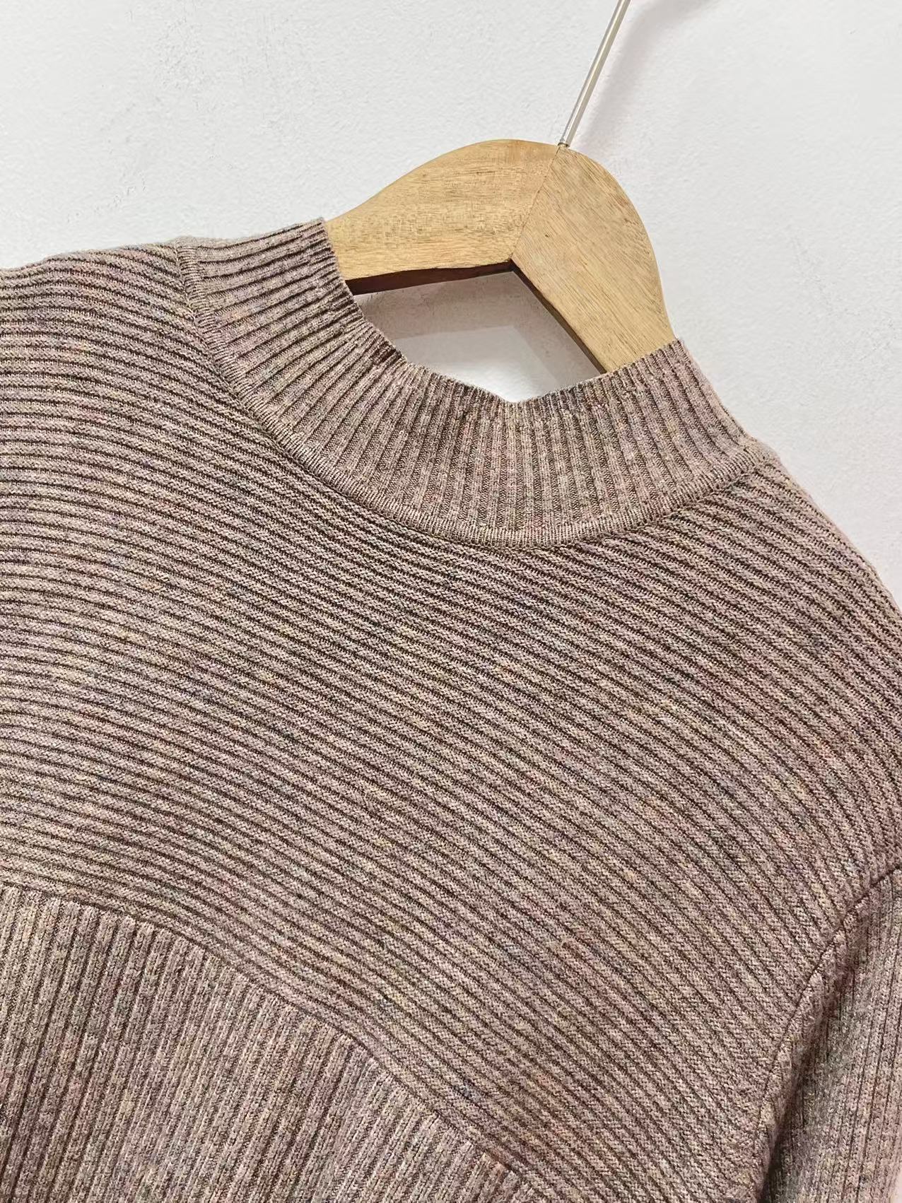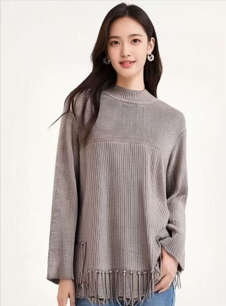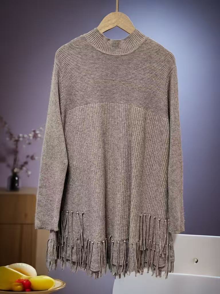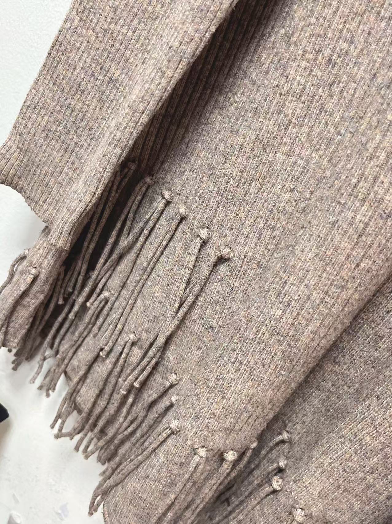 【孤品捡漏】(样衣)G88流苏半高领花纱咖色中长毛衫-喜出