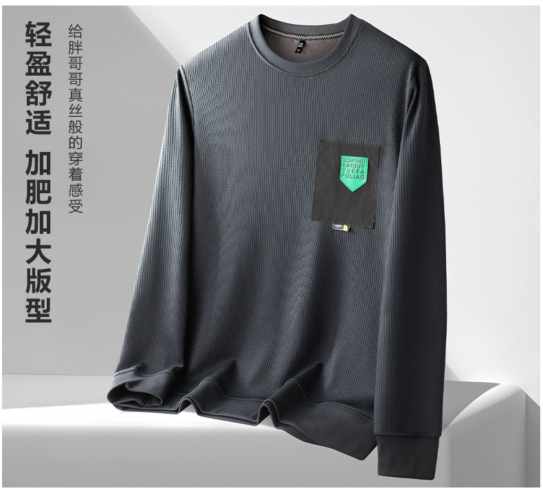 【新款DDP】大依优型大码卫衣贴布印花长袖加肥加大胖子上衣男士T恤肥佬打底男装