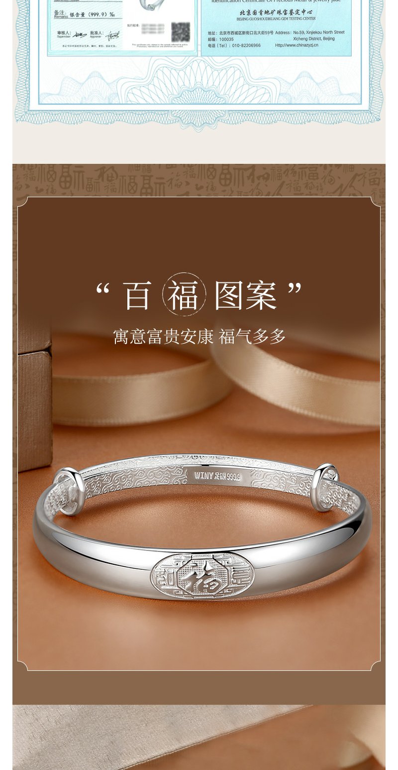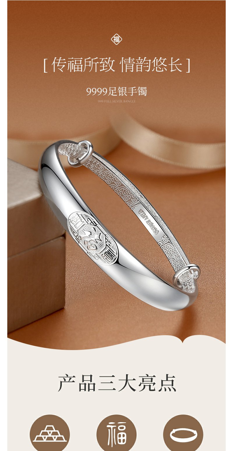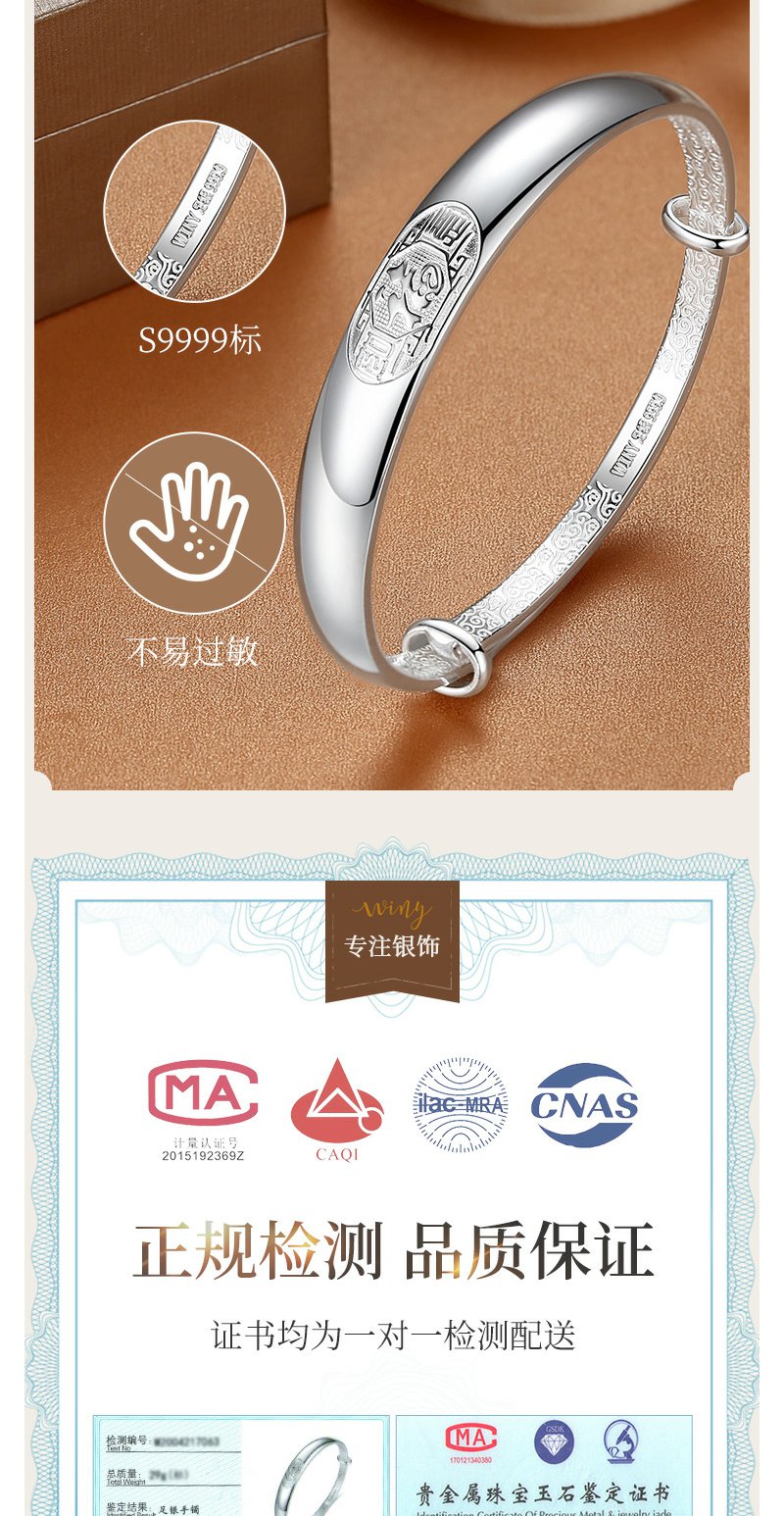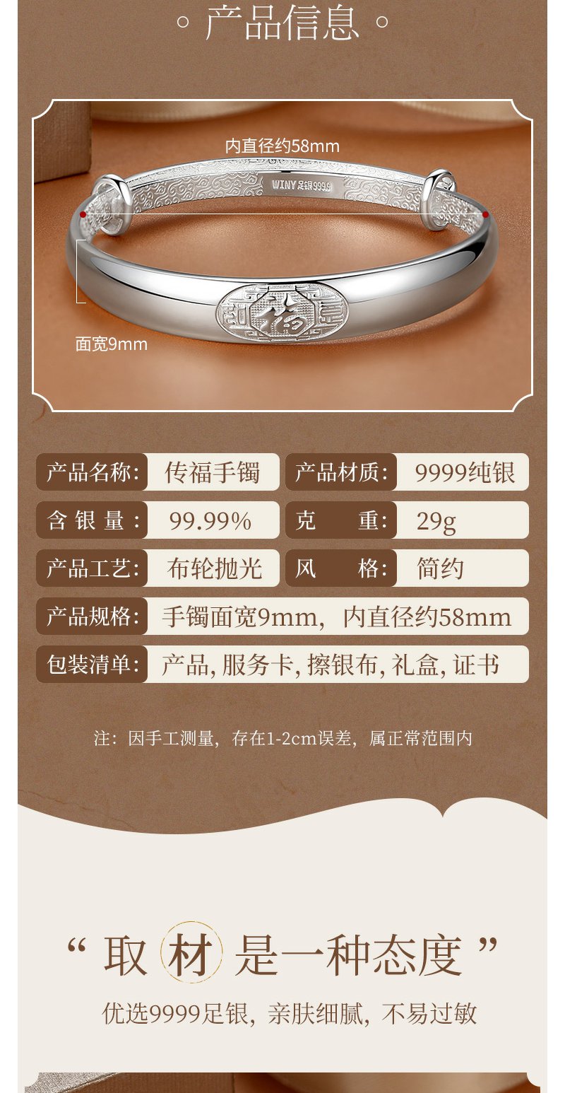 Winy9999足银传福手镯送女友闺蜜节日生日礼物