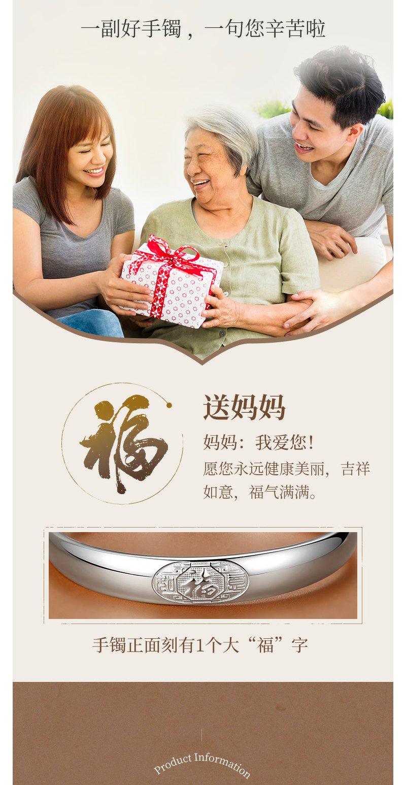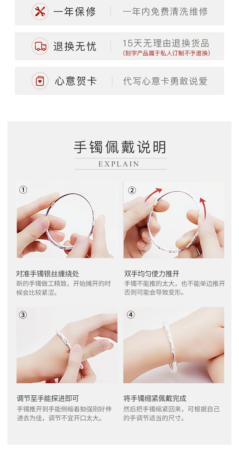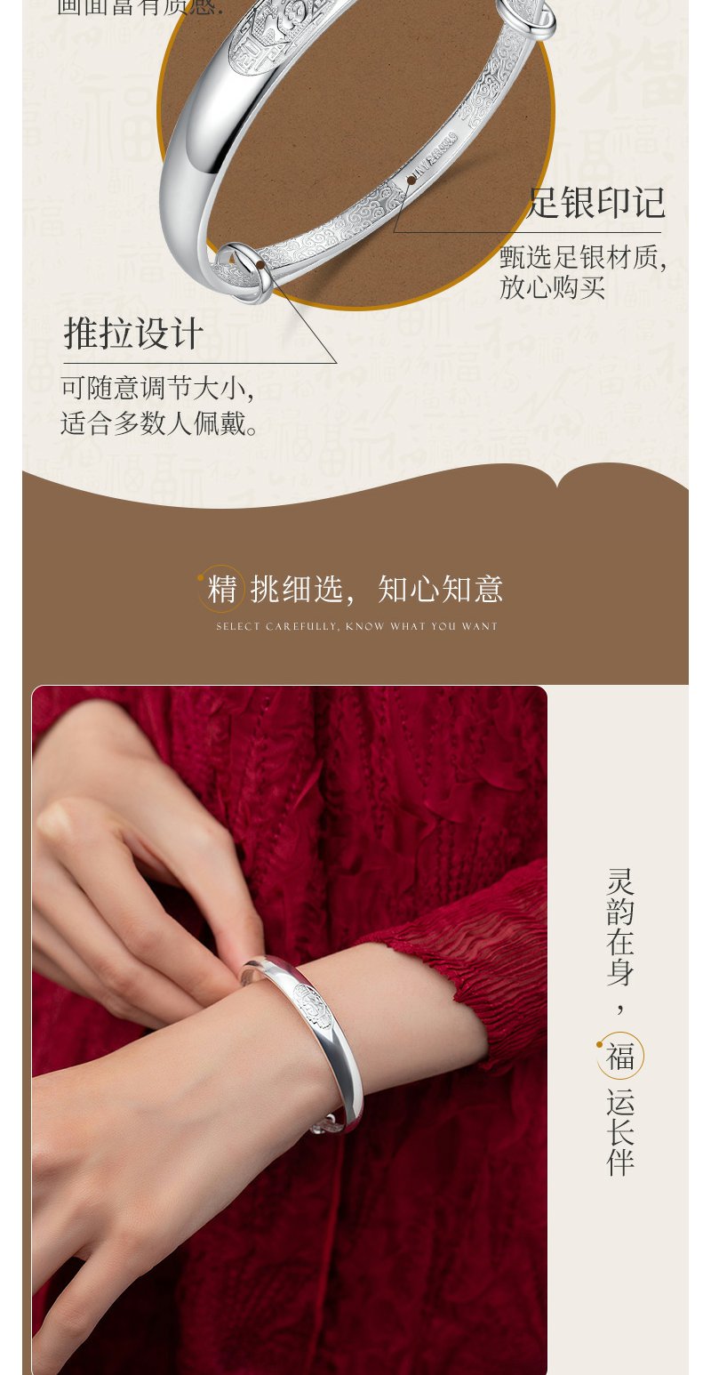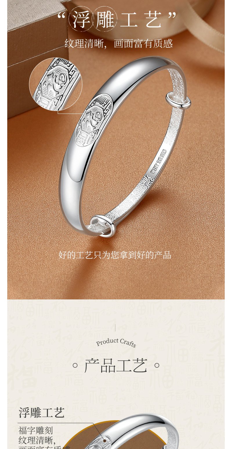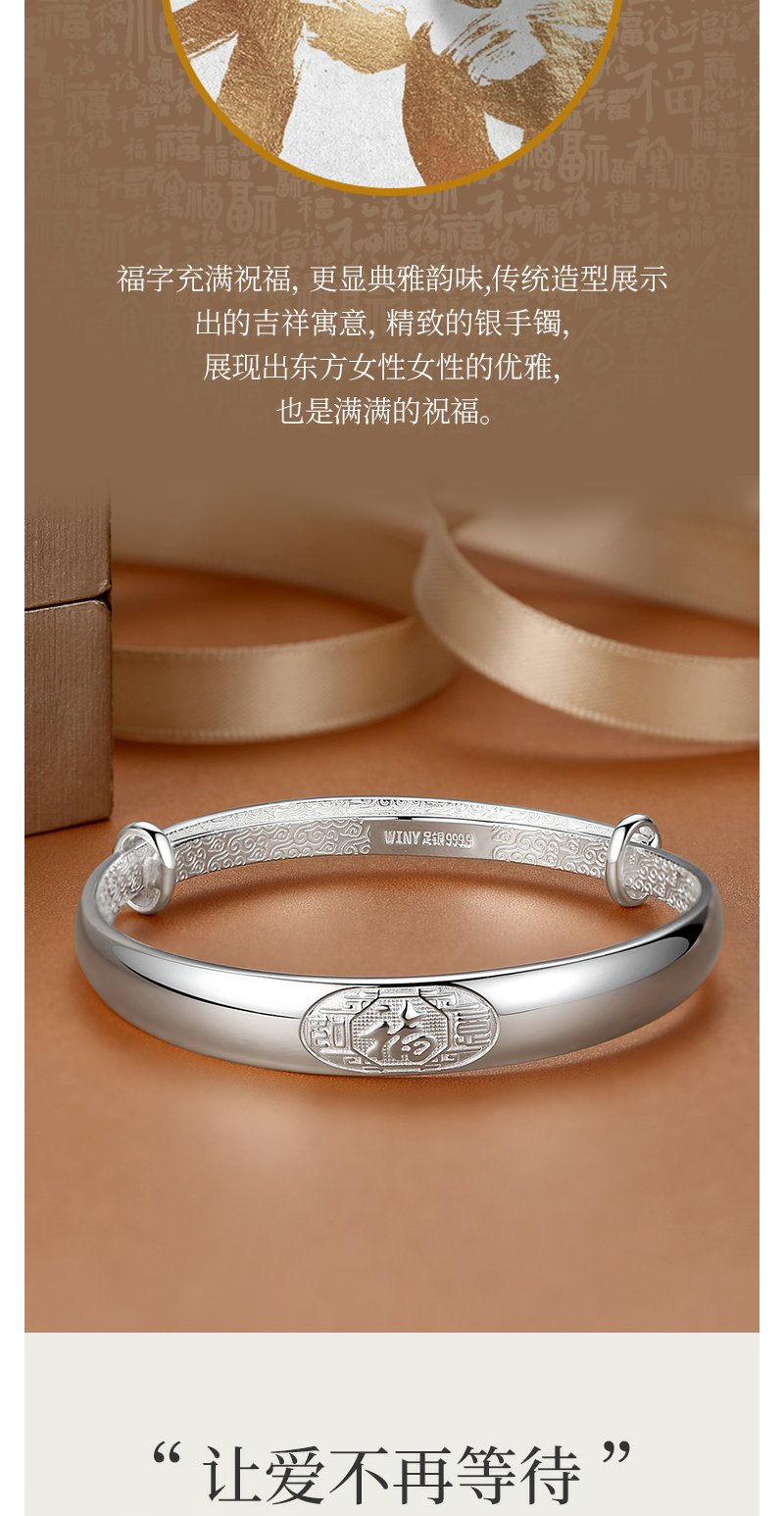Winy9999足银传福手镯送女友闺蜜节日生日礼物