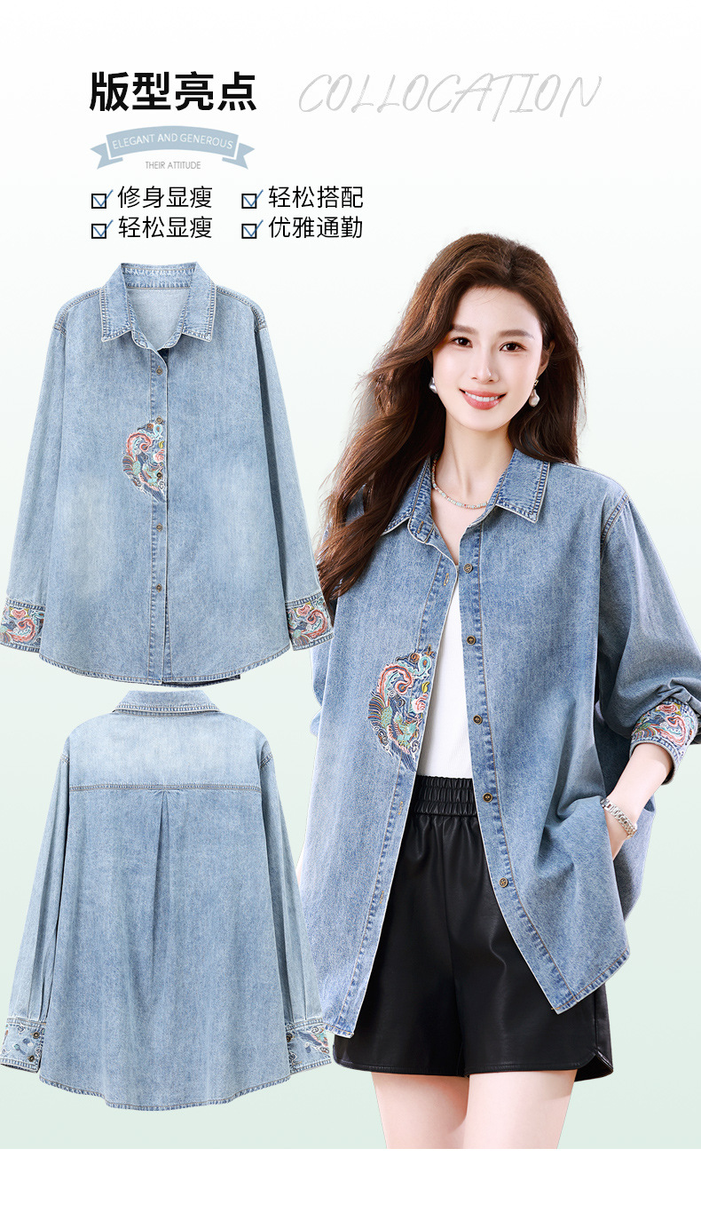 雀说牛仔衬衫外套新款大码宽松时尚衬衣薄款国风刺绣上衣潮AL1622 商品图1