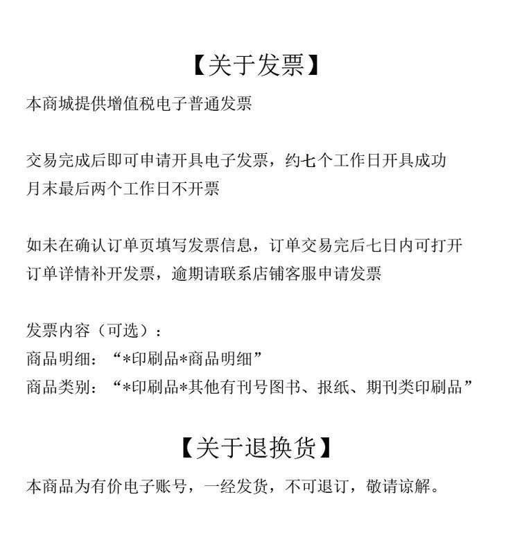 2、本产品为虚拟内容服务,售出不退,请理解。