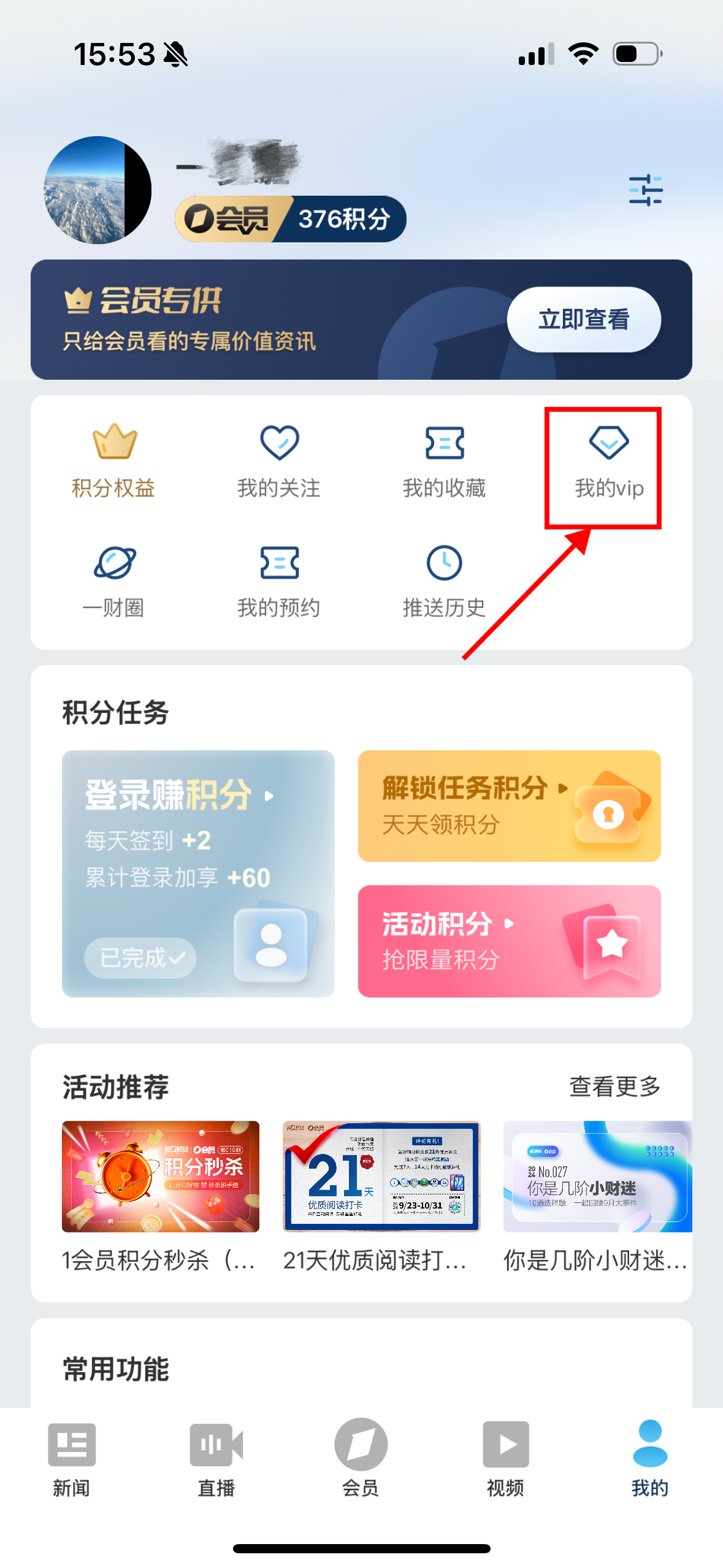 2、点击"我的vip"