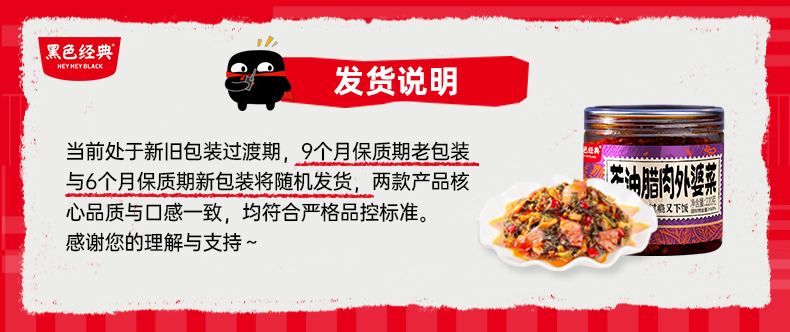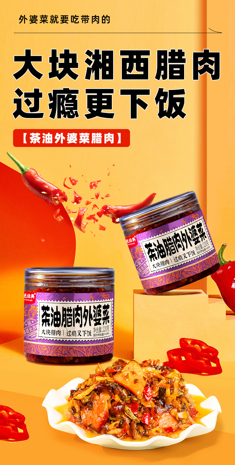 【酱菜经典】黑色经典茶油腊肉外婆菜220g/瓶 下饭好搭子