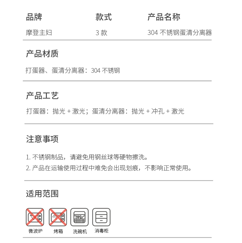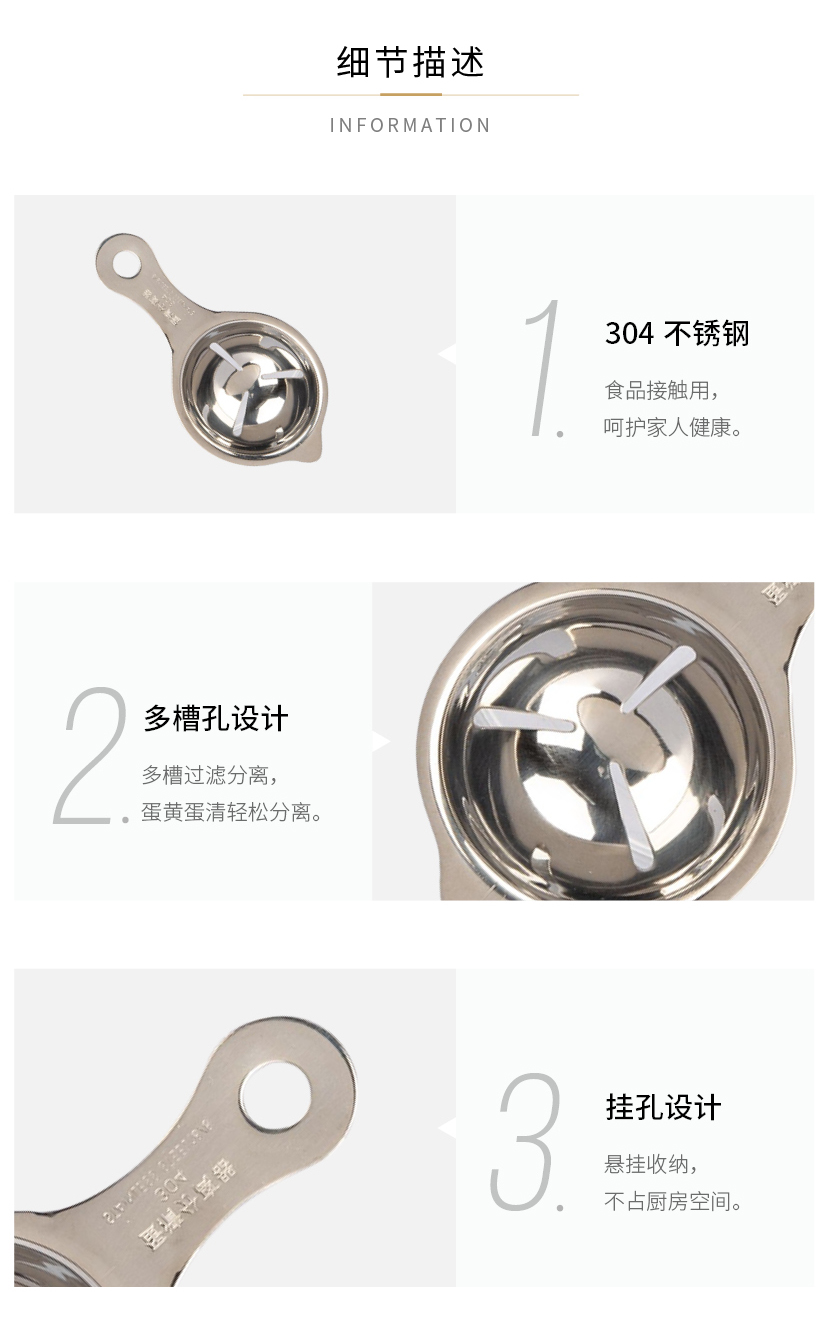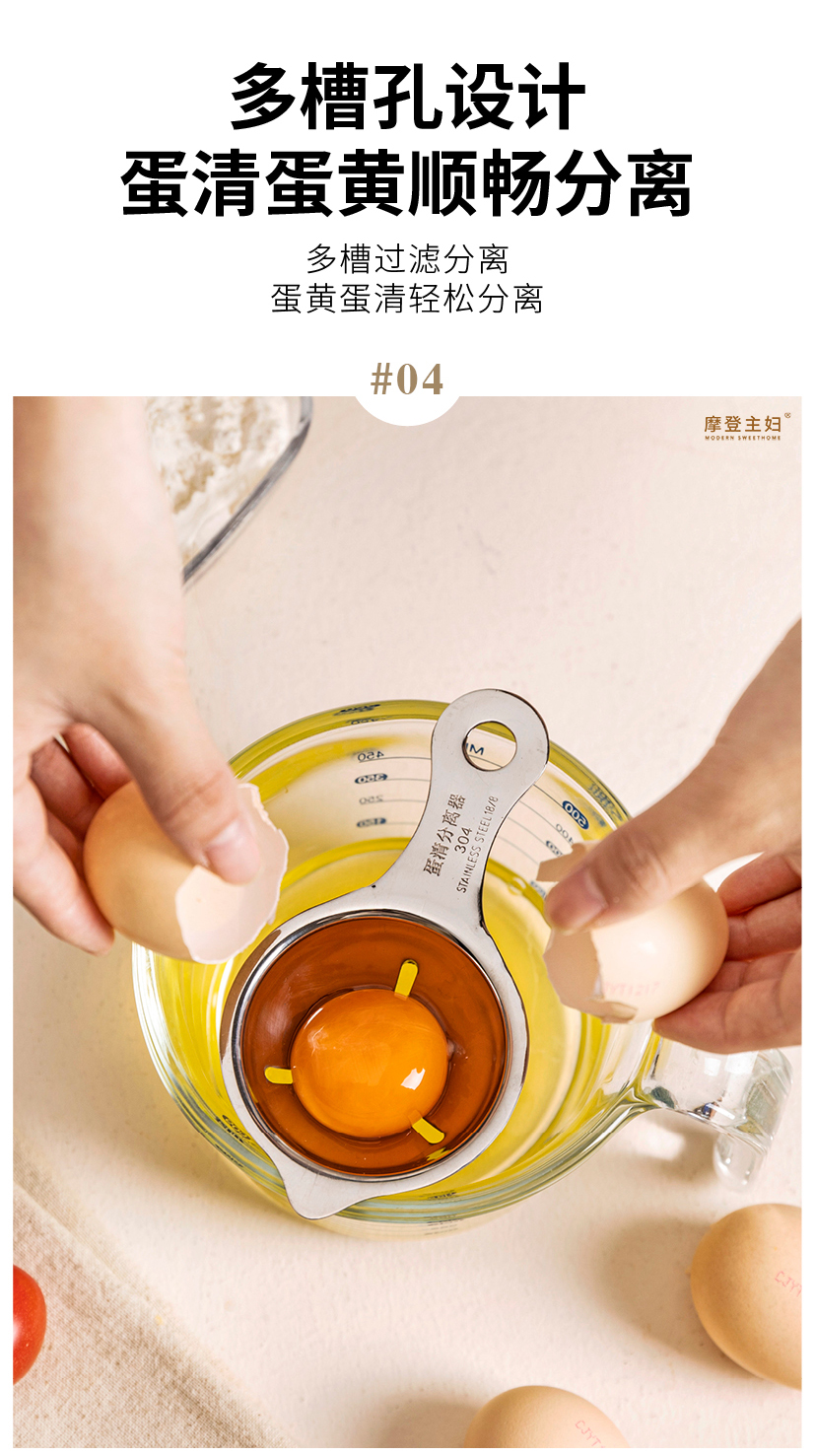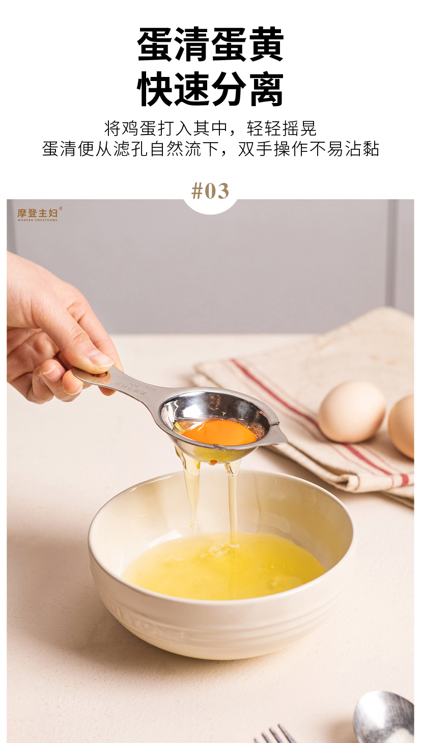 摩登主妇蛋清分离器304不锈钢蛋黄蛋液鸡蛋过滤器辅食工具分蛋器