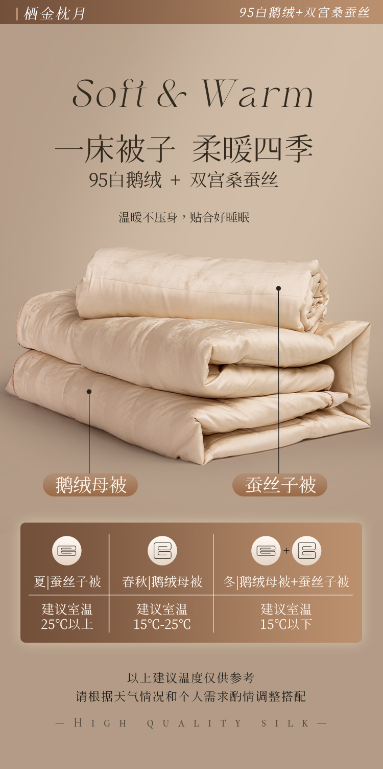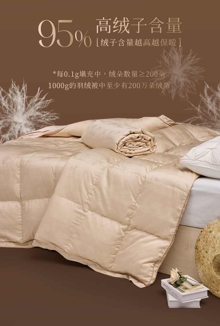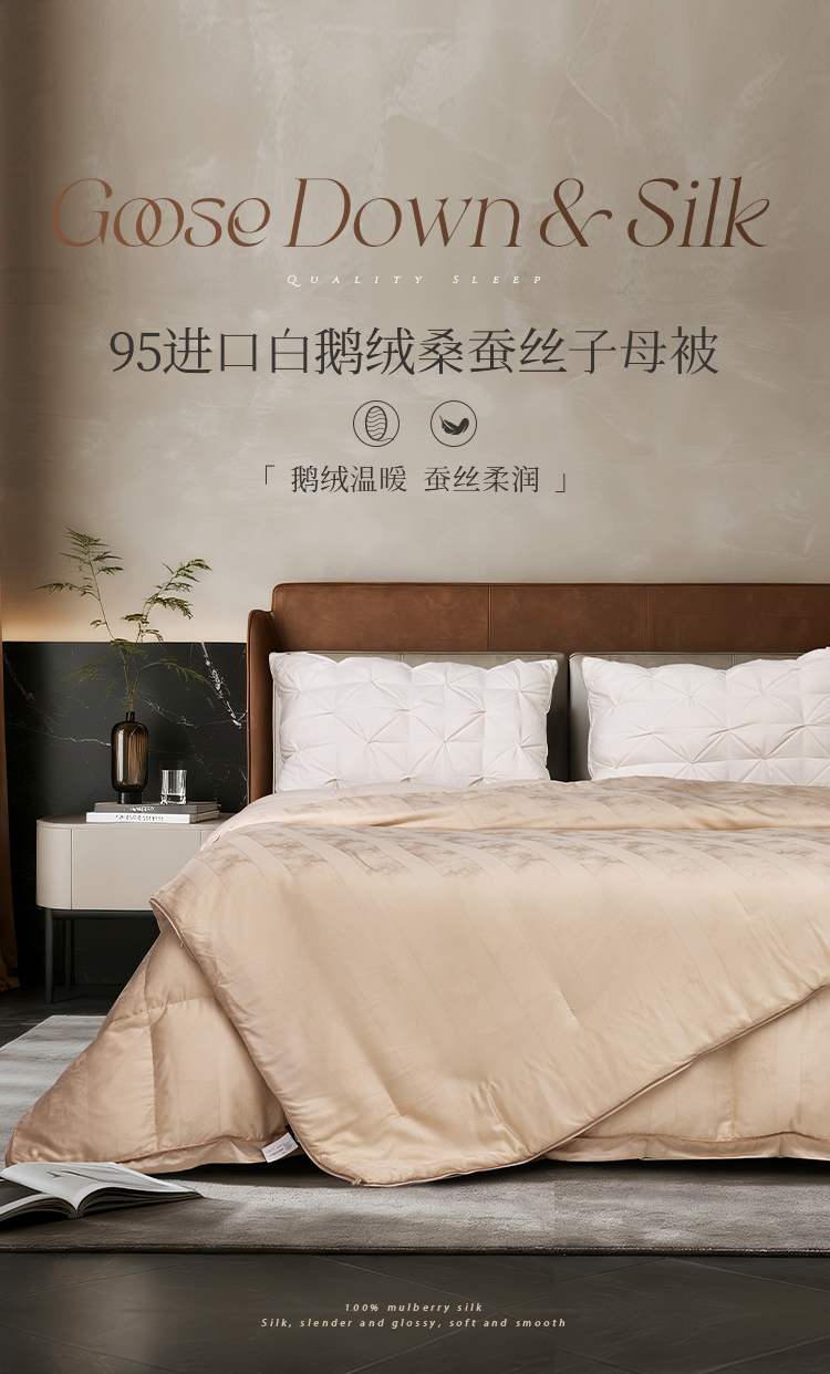 多喜爱 金羽朵95进口白鹅绒桑蚕丝子母被 栖金枕月【鹅绒母被+蚕丝子被】【95%绒子含量】【100%双宫茧桑蚕丝】【1000+清洁度】【波兰进口】3D航空舱 20CM开口