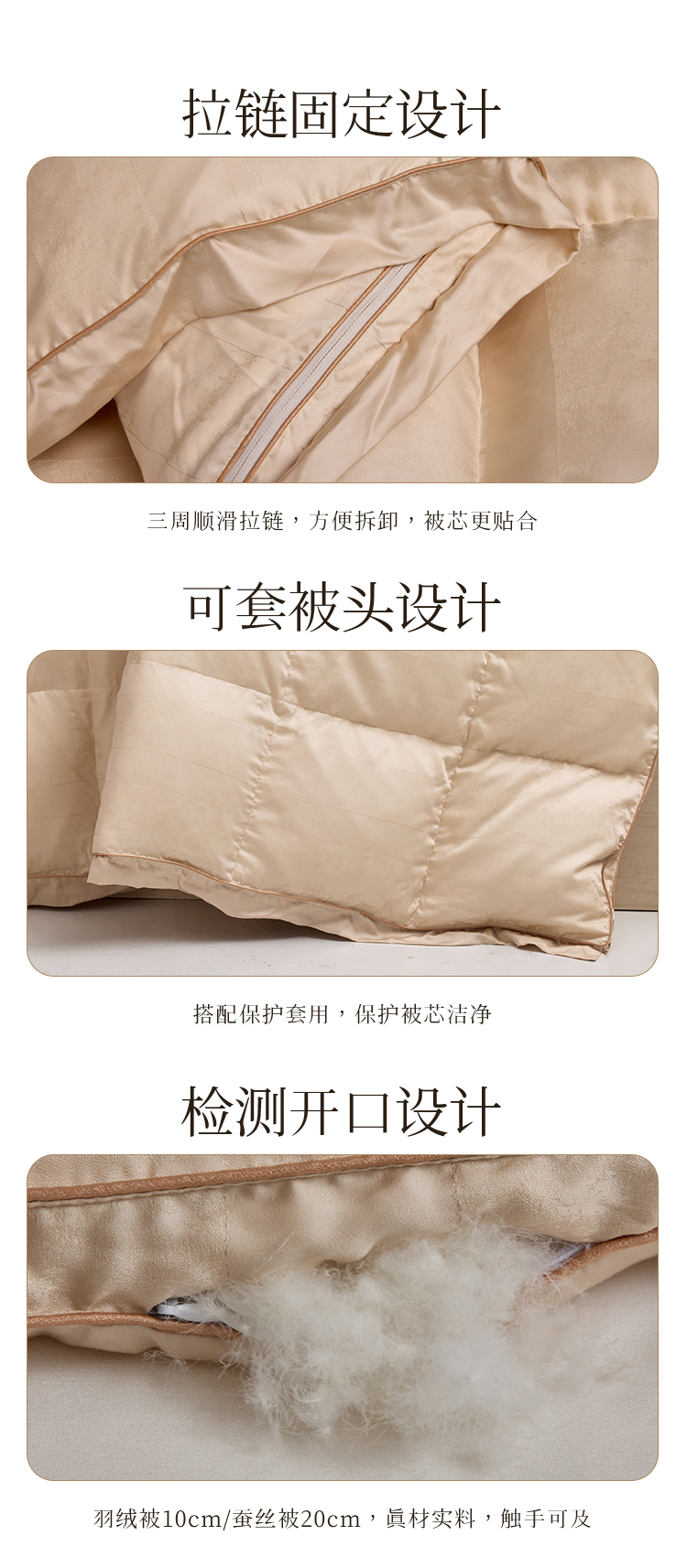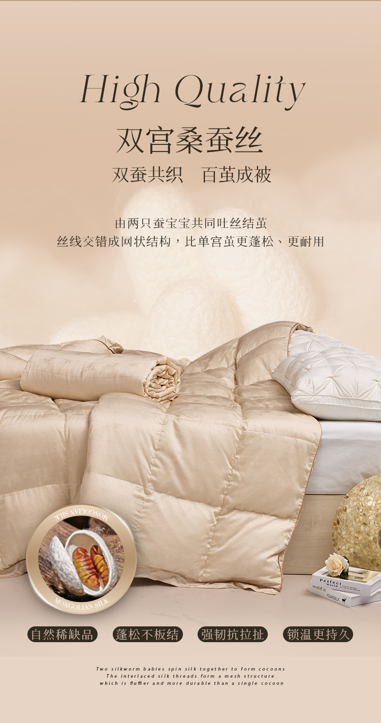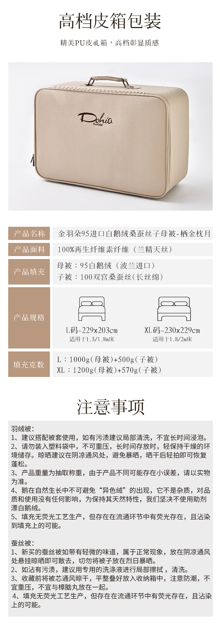 多喜爱 金羽朵95进口白鹅绒桑蚕丝子母被 栖金枕月【鹅绒母被+蚕丝子被】【95%绒子含量】【100%双宫茧桑蚕丝】【1000+清洁度】【波兰进口】3D航空舱 20CM开口
