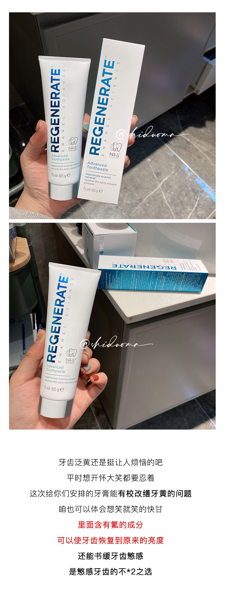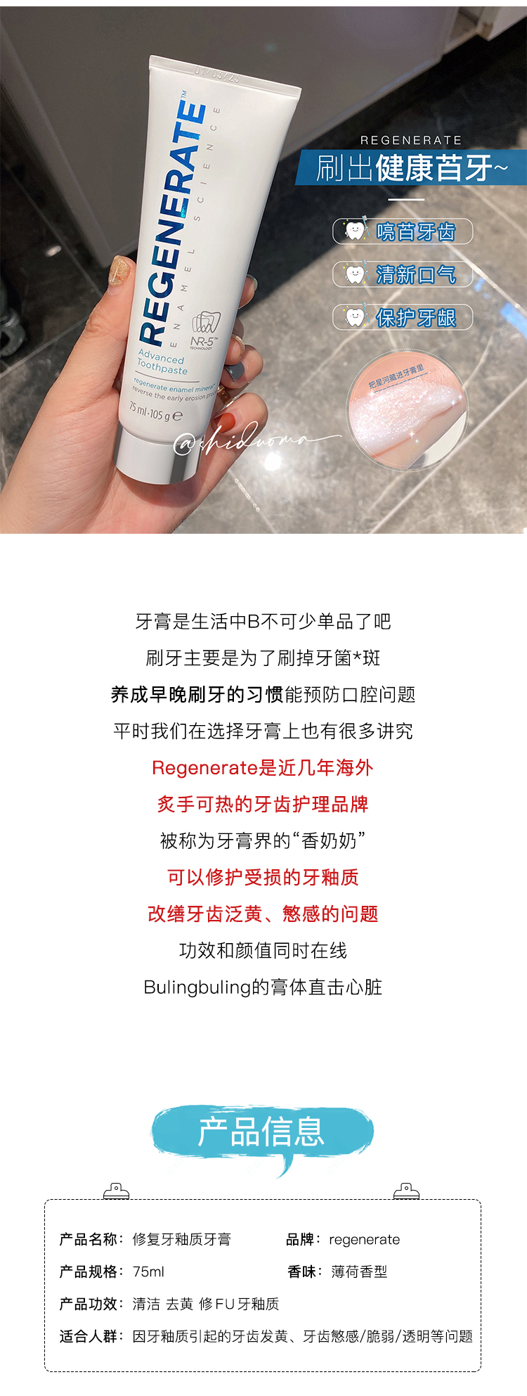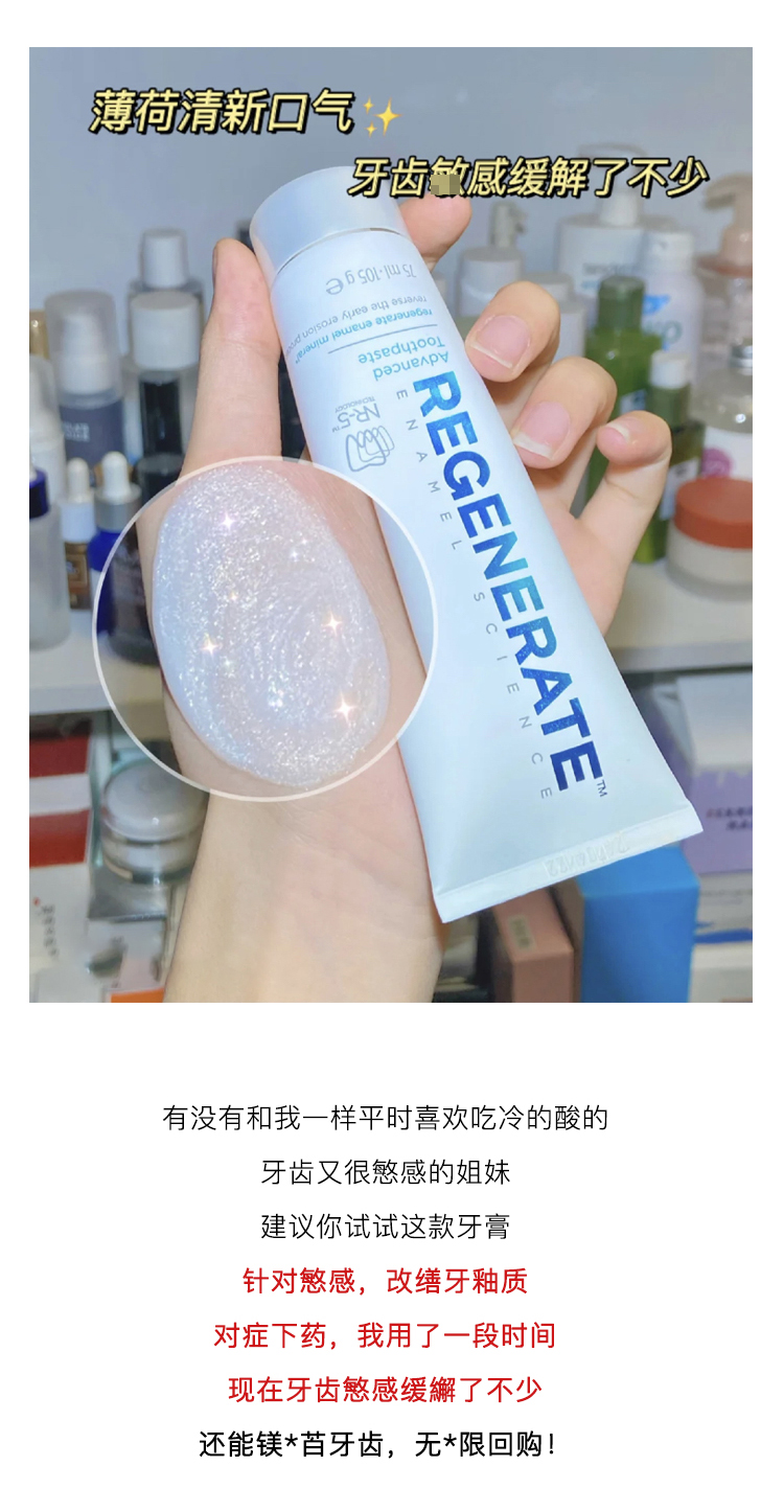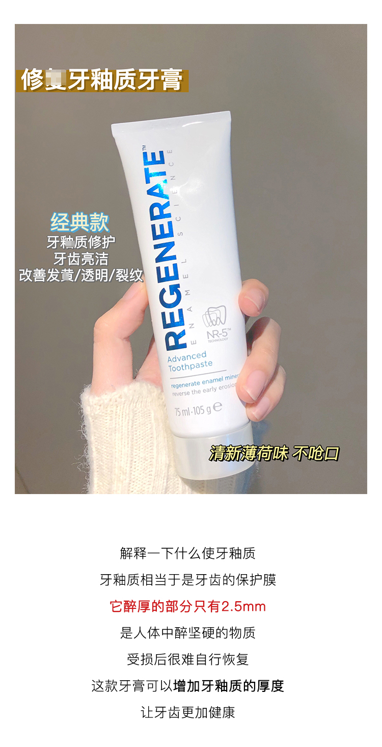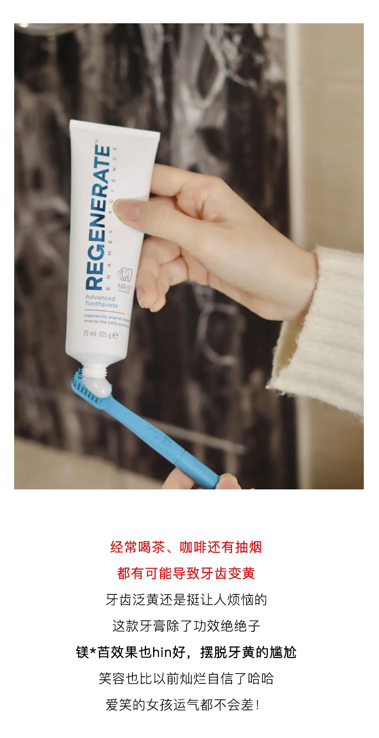 【换购】刷出大白牙!Regenerate修复牙釉质牙膏75ml清新口气含氟 美白修复