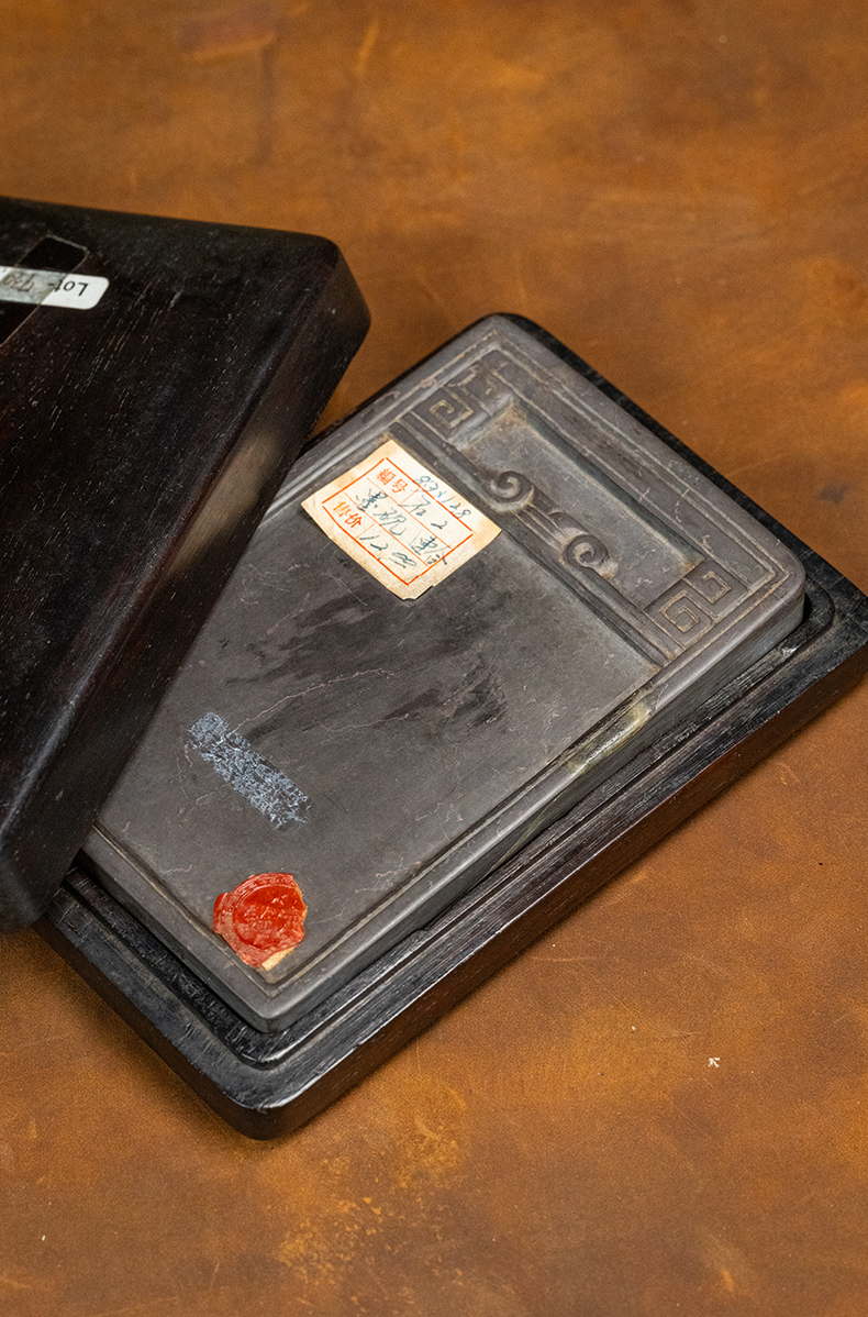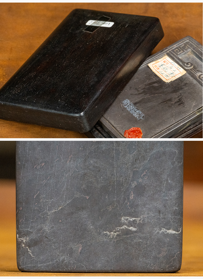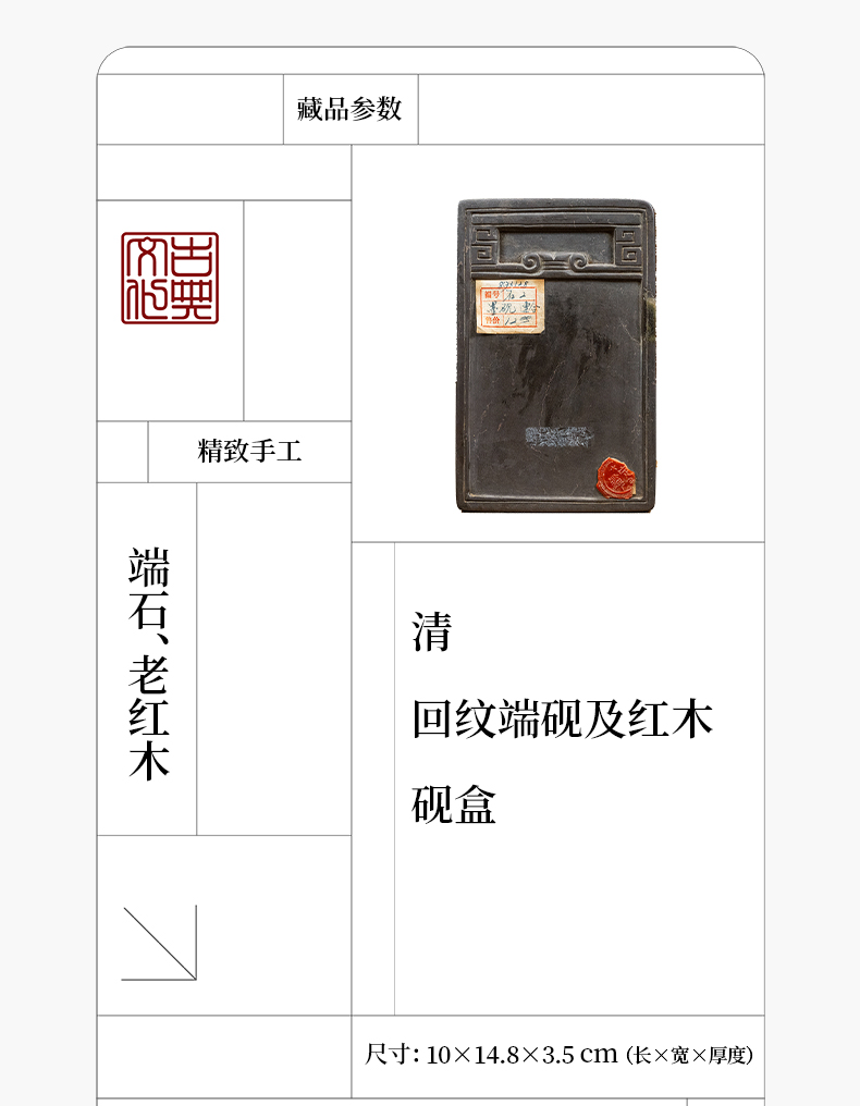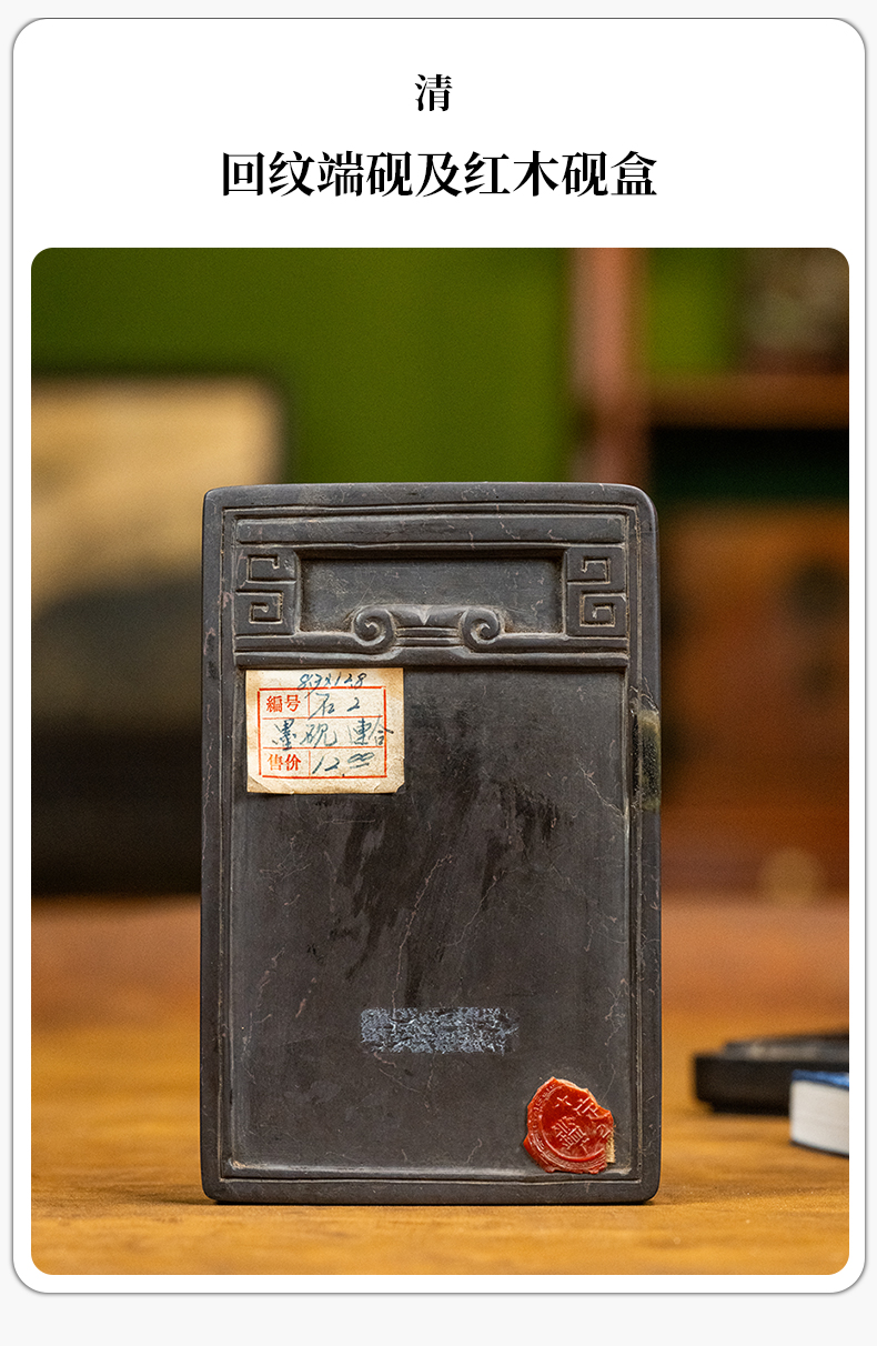 清 回纹端砚及红木砚盒