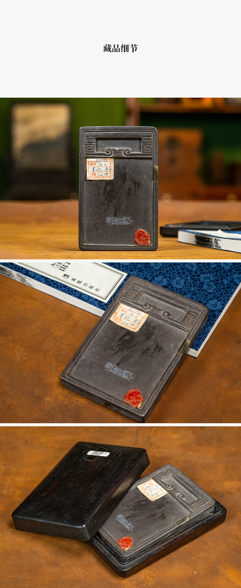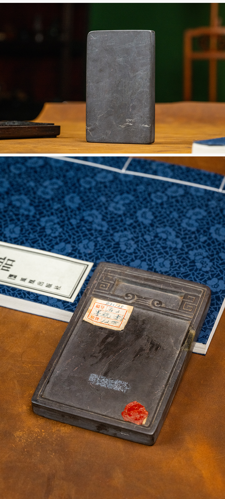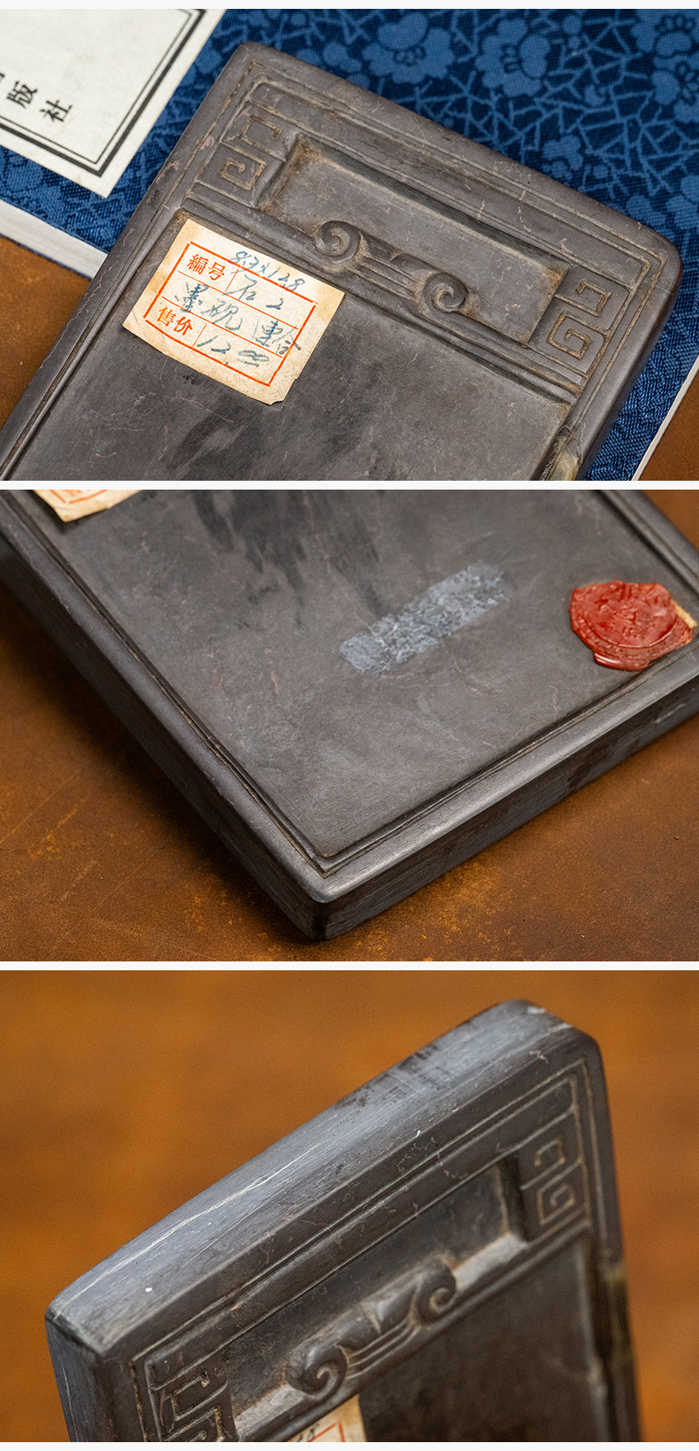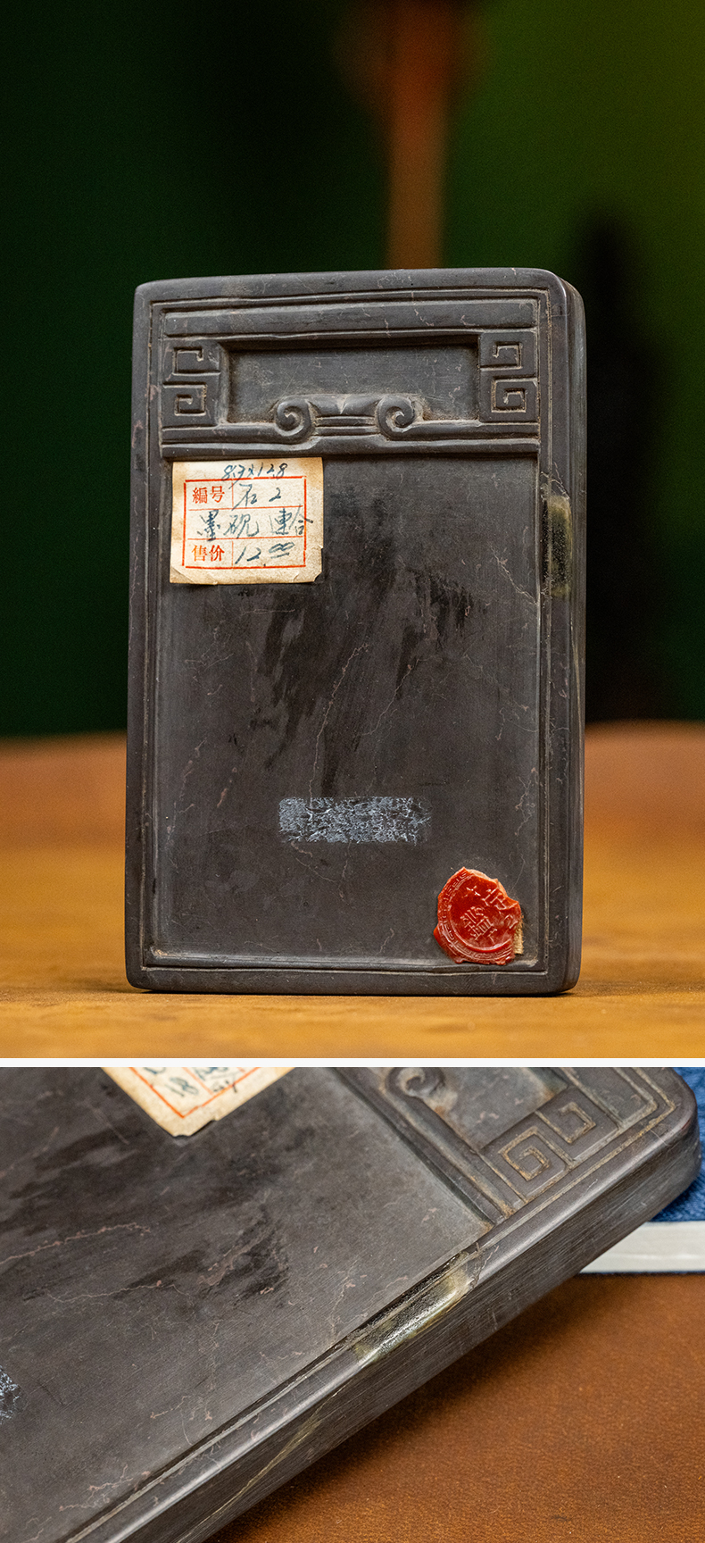 清 回纹端砚及红木砚盒