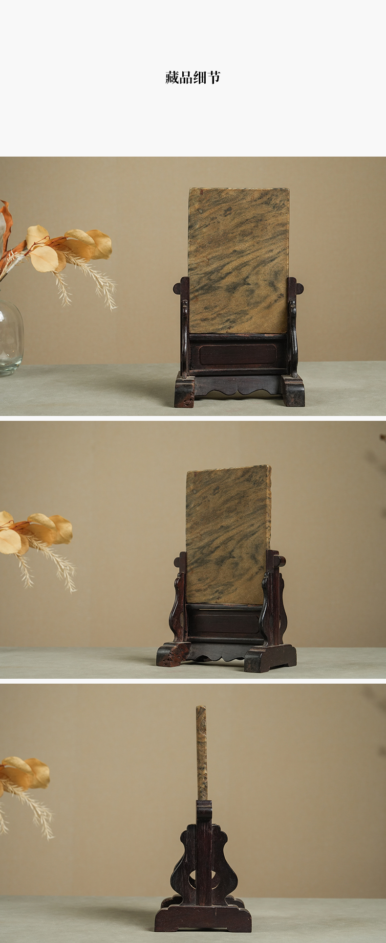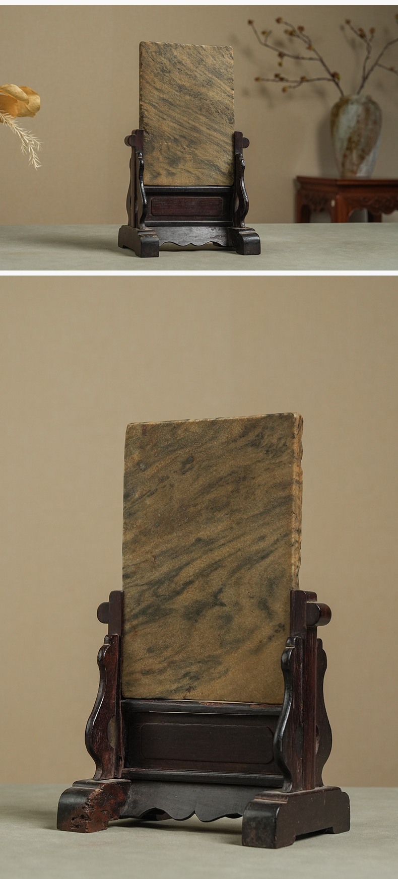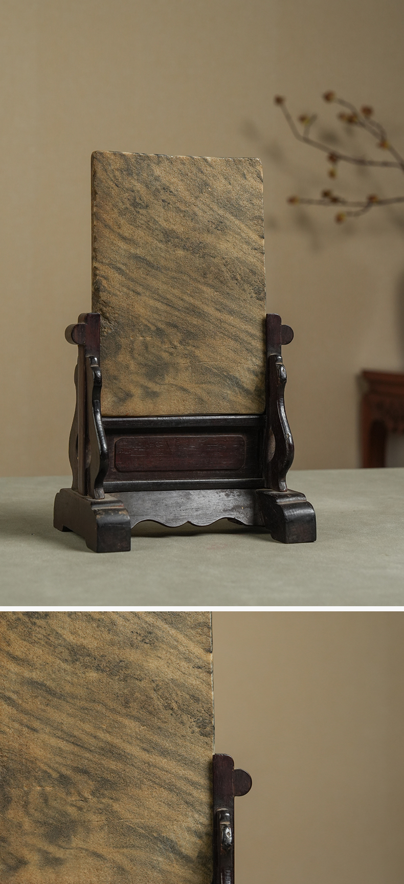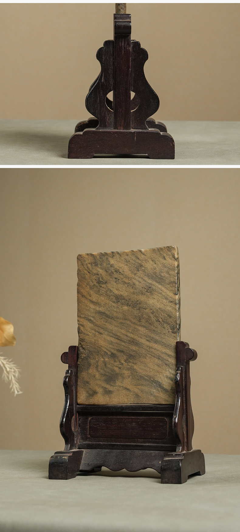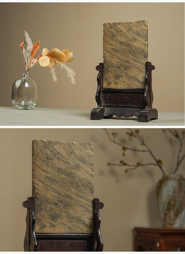 清 红木座云石砚屏