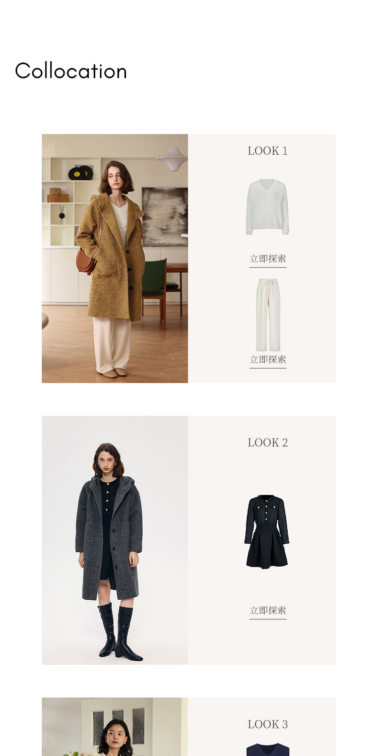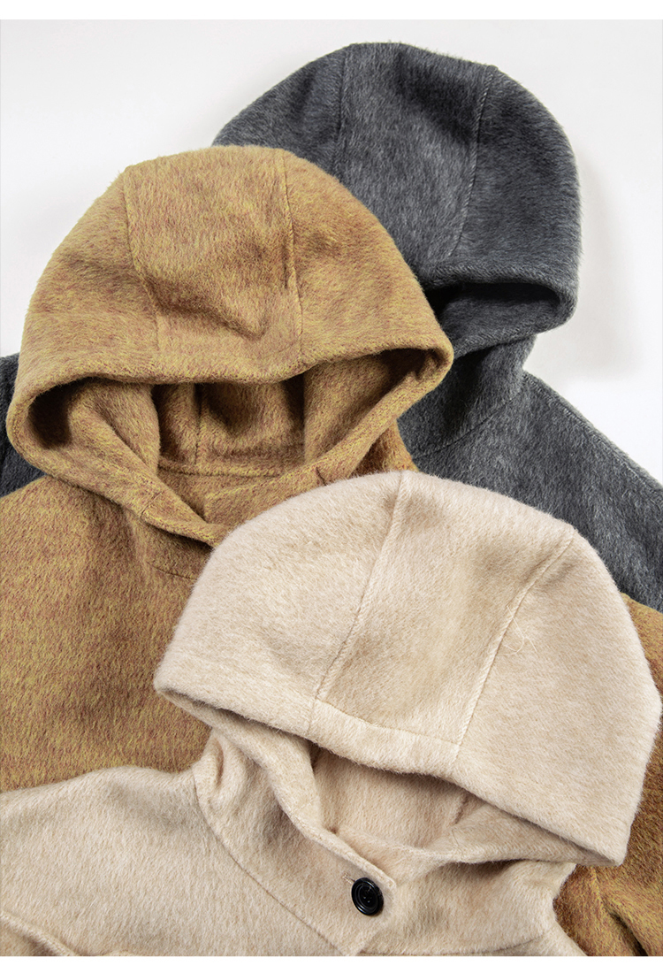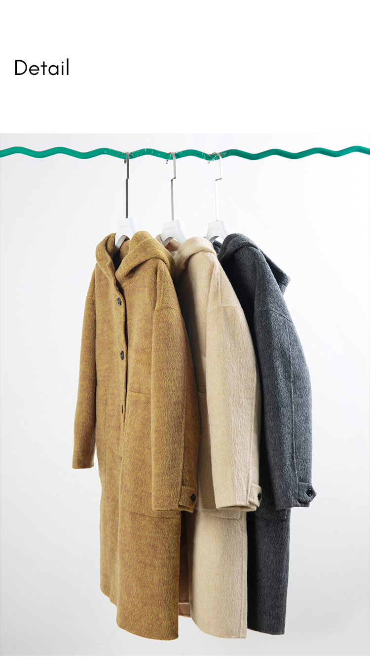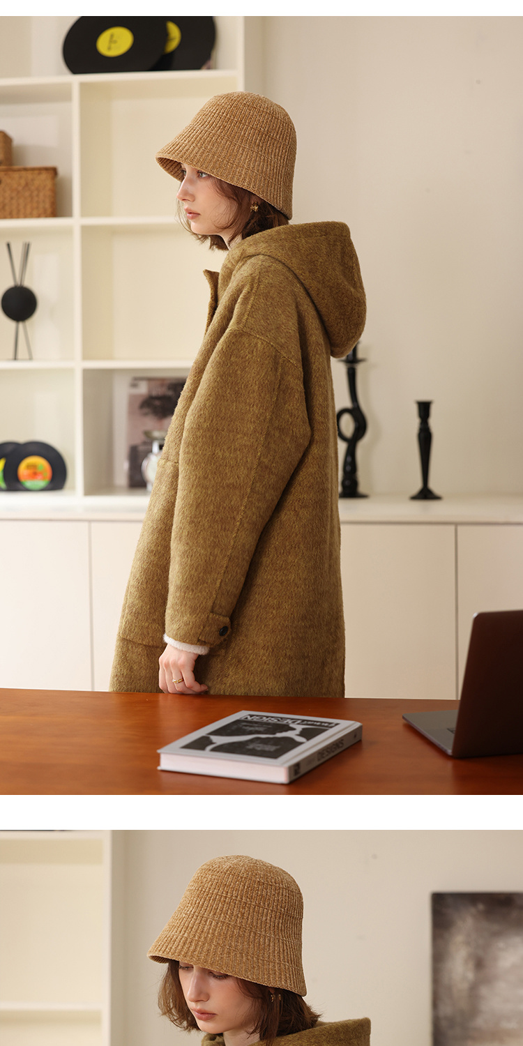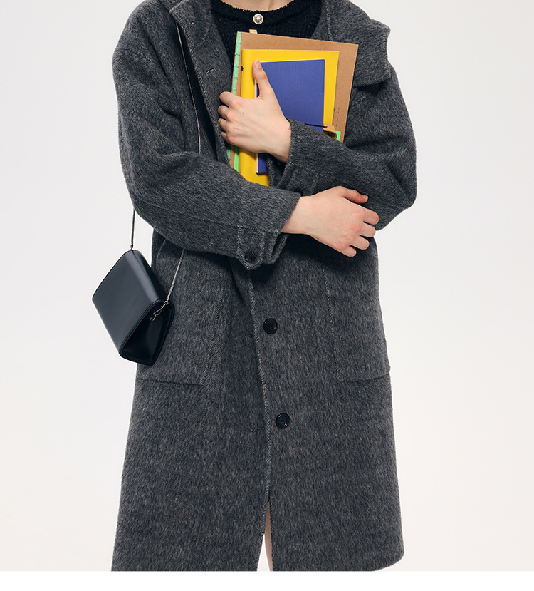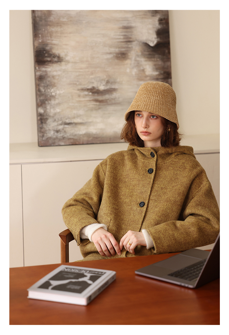 HeyDress连帽毛呢外套女秋冬宽松休闲羊毛长大衣骆驼绒气质双面呢