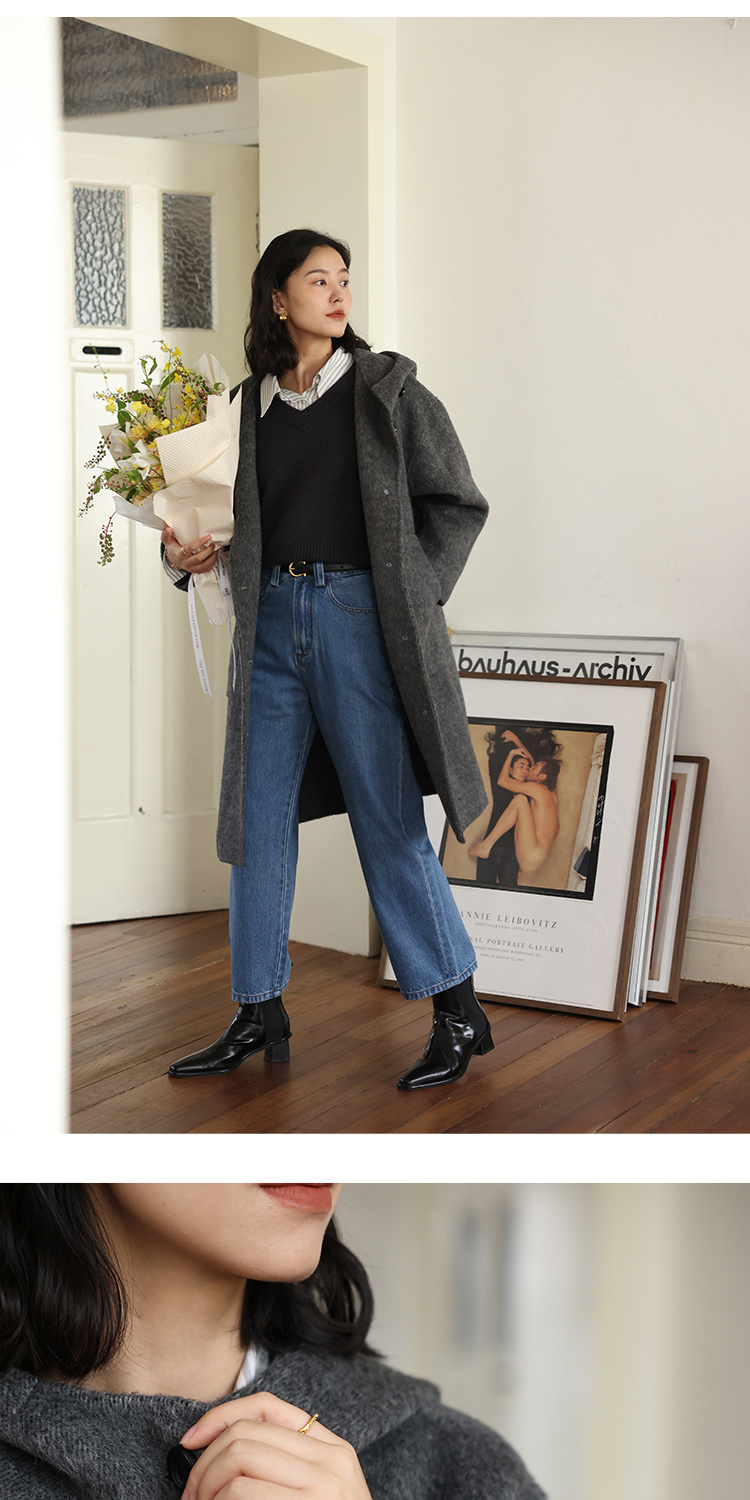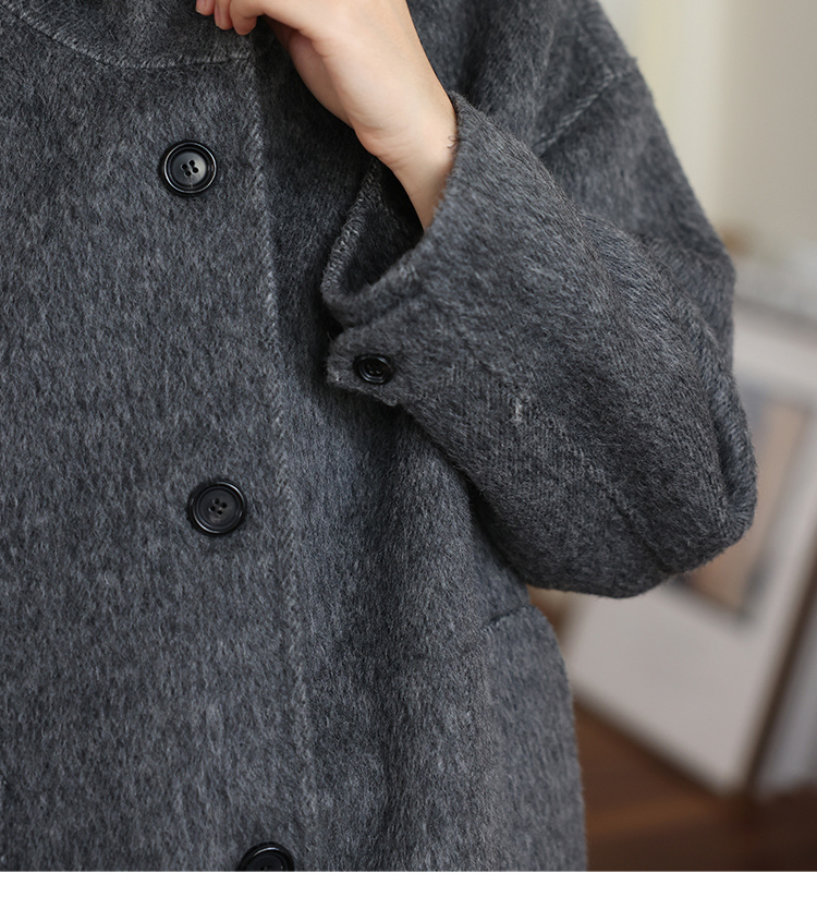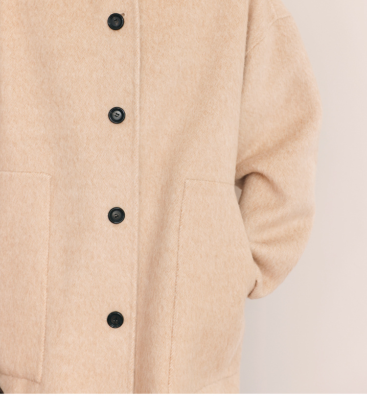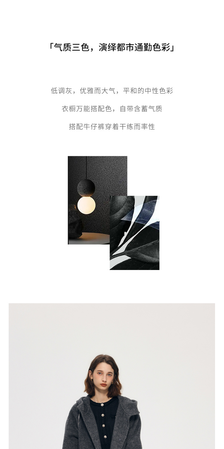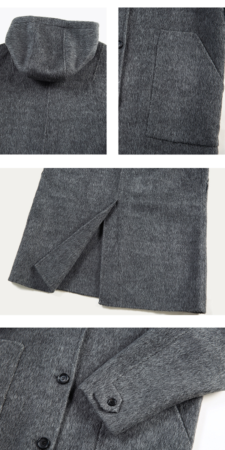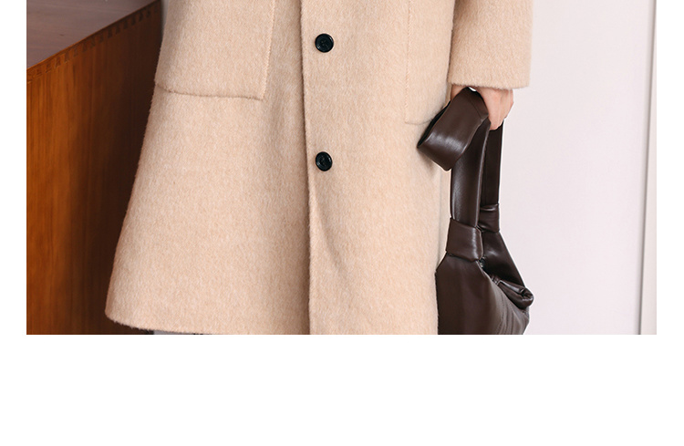 HeyDress连帽毛呢外套女秋冬宽松休闲羊毛长大衣骆驼绒气质双面呢