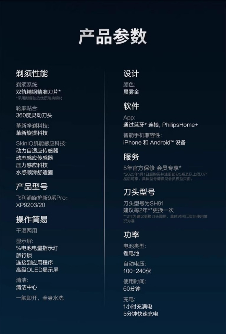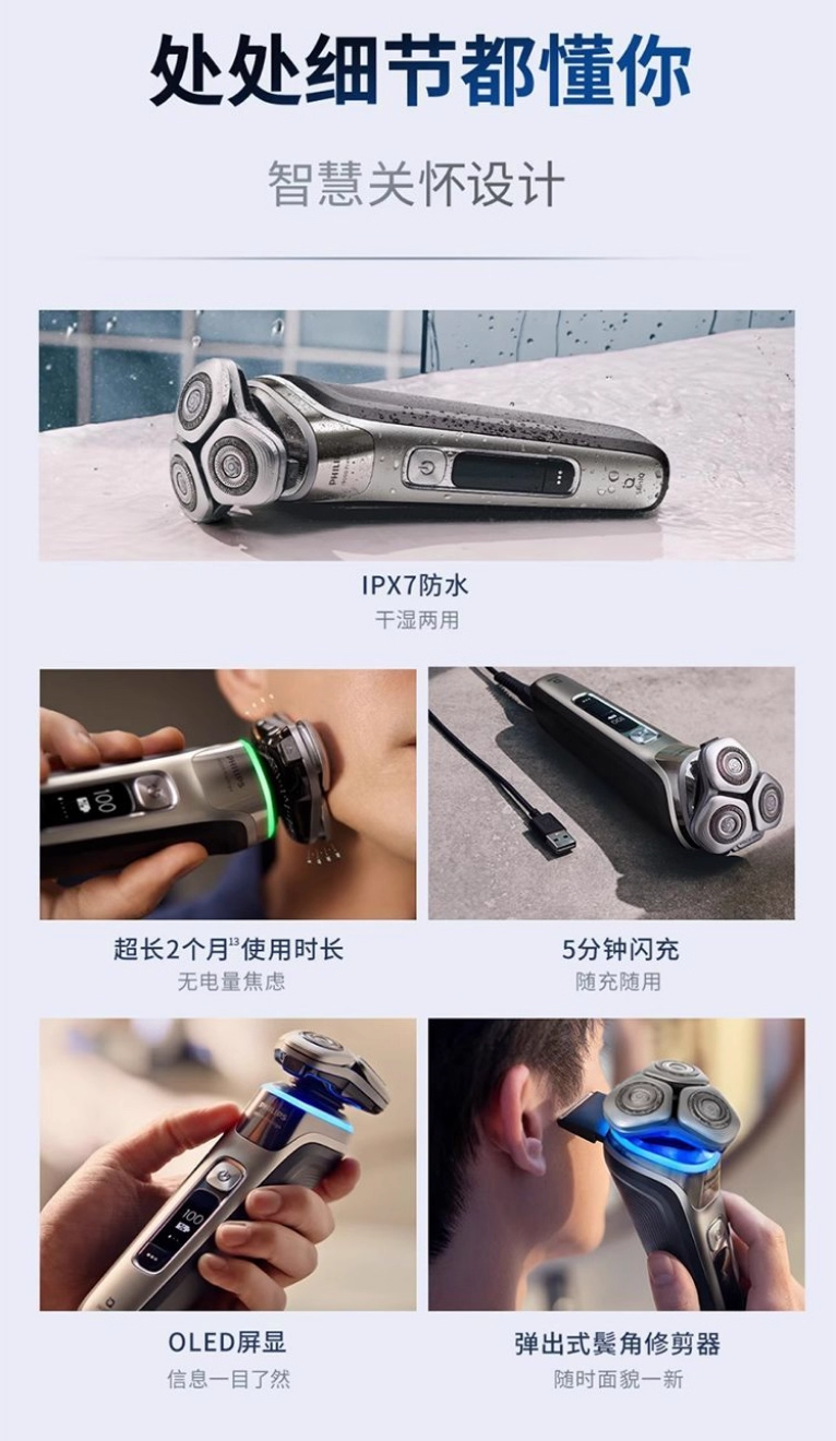 【飞利浦】飞利浦剃须刀XP9203旋护Por新9系男士电动刮胡刀净护一体