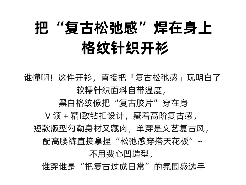 丁摩 高级感格纹单排扣针织开衫女秋季新款气质百搭休闲上衣5ZF-11454 商品图3